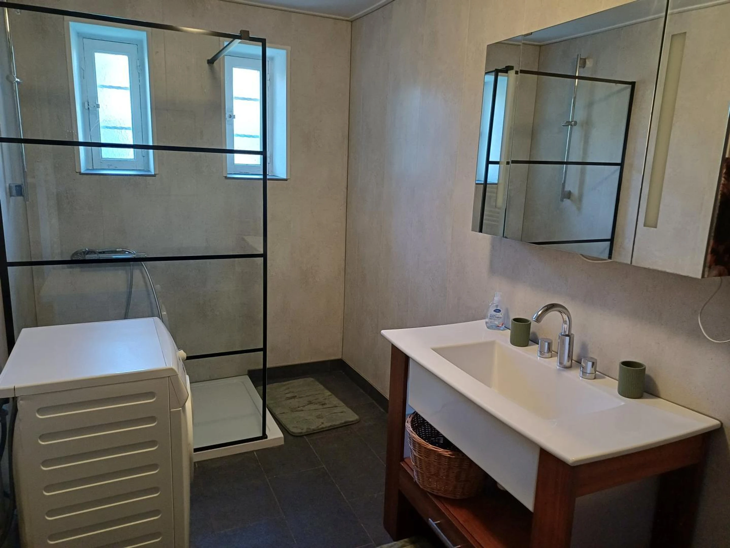 Planta baja: Con tres cómodas habitaciones dobles, un acogedor salón con estufa de leña, una cocina totalmente equipada, un baño con ducha y un aseo independiente, es el lugar ideal para una estancia revitalizante. La Ferme tiene todo lo necesario para unas vacaciones sin preocupaciones. Con total privacidad, dispone de una entrada independiente y una zona exterior privada, todo ello separado del resto del camping. A su disposición: dos piscinas compartidas, una piscina grande (9 x 5 m, 1,50 m de profundidad, climatizada del 1 de junio al 30 de septiembre) y una piscina pequeña (5 x 4 m, 0,45 m de profundidad), un parque infantil y zonas comunes para que todos encuentren algo que disfrutar, ya sea para relajarse o para pasar tiempo en familia. Servicios de la casa rural: sábanas y camas hechas a la llegada, paños de cocina, leña para la estufa, electricidad y calefacción incluidas.