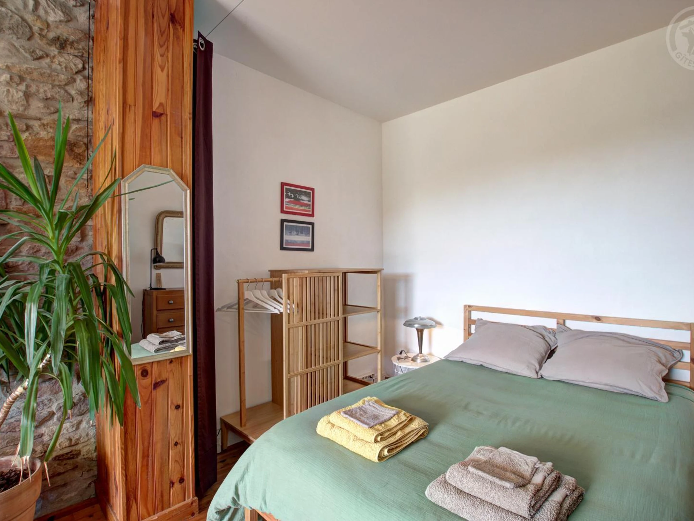 Apartamento de 45m² situado en la planta baja de esta casa adosada, con acceso independiente desde la calle. El alojamiento amueblado consta de una encantadora cocina amueblada y equipada que da a una alcoba convertida en dormitorio con una cama de 140 cm (cortina opaca que se puede correr), un amplio dormitorio con una cama de 140 cm, una zona de estar con acceso a la terraza de 10m² y un baño completo con ducha y WC. Aparcamiento gratuito: en la calle o en un parking en las inmediaciones. Ven a disfrutar de este apartamento completamente renovado en una antigua pasamanería que data de 1850, que alberga el cómodo alojamiento amueblado y la casa de los propietarios. Ubicado en un entorno tranquilo, con vistas panorámicas al campo circundante, estará a un paso de las gargantas del Loira, pero también de la ciudad de Saint-Étienne: sus atracciones, sus servicios y sus numerosas instalaciones culturales y de ocio. Con una exposición total al sur y hermosas aberturas, el apartamento es luminoso y tiene un carácter cálido. Durante sus comidas y momentos de relajación, podrá disfrutar de la bonita terraza con vistas al campo de Saint-Etienne. ¡Los propietarios estarán encantados de darle la bienvenida y guiarle en sus actividades y viajes! Para que su estancia sea aún más agradable, los servicios y la calefacción están incluidos, las camas están hechas a la llegada y se proporciona ropa de baño.