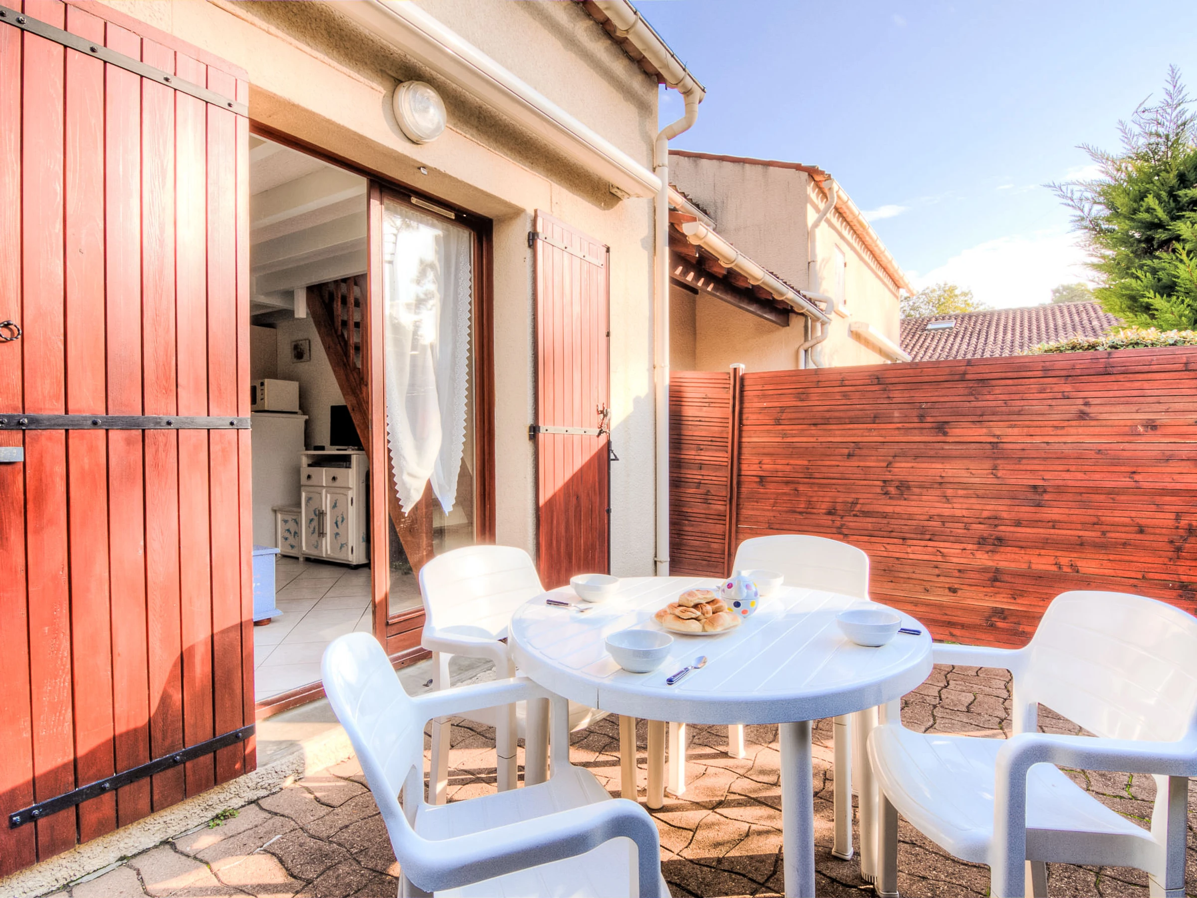Conjunto de pequeñas casas adosadas. residencia "Jardins de l'Océan". En las afueras de la localidad, a 1.5 km del centro de Saint Georges de Didonne, a 150 m del mar, a 150 m de la playa. Aparcamiento. Tienda 1.5 km, tienda de comestibles 1.5 km, supermercado 2 km, restaurante 1.5 km, panadería 1.5 km, café 1.5 km, parada autobús "Créa" 1.5 km, estación de tren "Royan" 5 km, playa de arena "Saint Georges de Didonne" 150 m, parque "Luna Park (Juillet-Août)" 27 km, piscina cubierta 5 km, piscina termal "Thalassothérapie Thalzur Royan" 8 km, lago D'Enlias - St Georges de didonne 3 km. Puerto deportivo 6 km, campo de golf (18 hoyos) 16 km, escuela de vela 1.6 km, tenis 2 km, minigolf 1 km, centro ecuestre 17 km, caminos para bicicletas 150 m. Atracciones en los alrededores: Parc de l'Estuaire 4 km, Zoo de La Palmyre 23 km, Centre aquatique Iléo - Ile d'Oléron 53 km, Fort Boyard - Fouras 62 km, Aéroport La Rochelle - Ile de Ré 85 km, Aéroport Bordeaux - Merignac 126 km. A tener en cuenta: la entrega de llaves se realiza por la agencia en Vaux sur Mer, 8 km. Se pueden reservar alojamientos adicionales. Tienda de alimentación 300 m (julio y agosto).