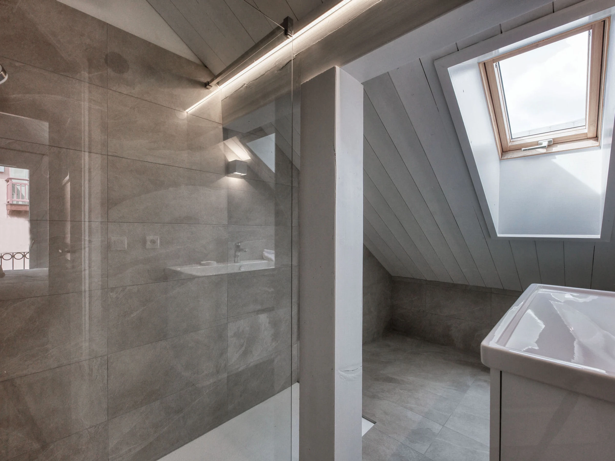 - Un baño con ducha
