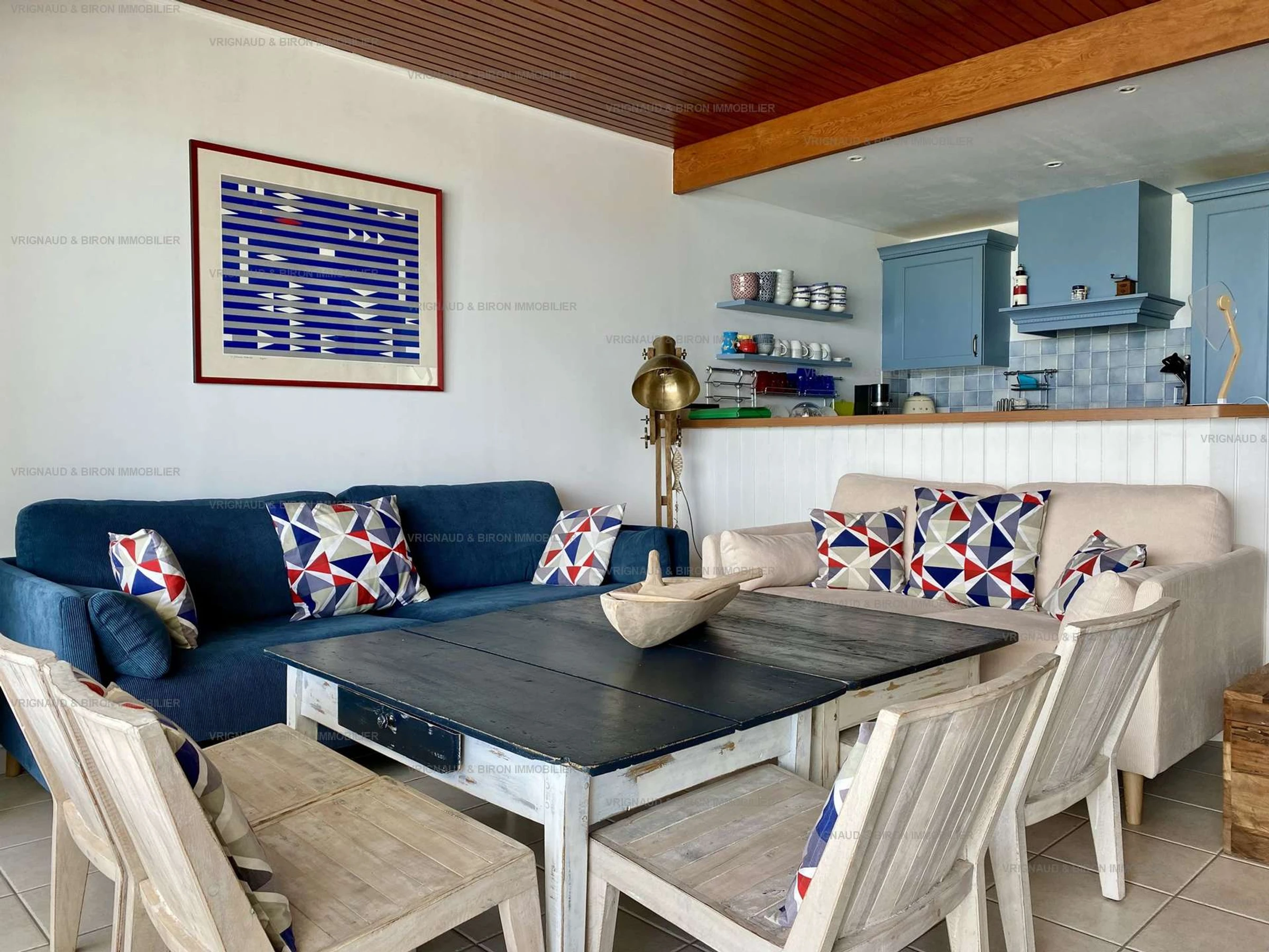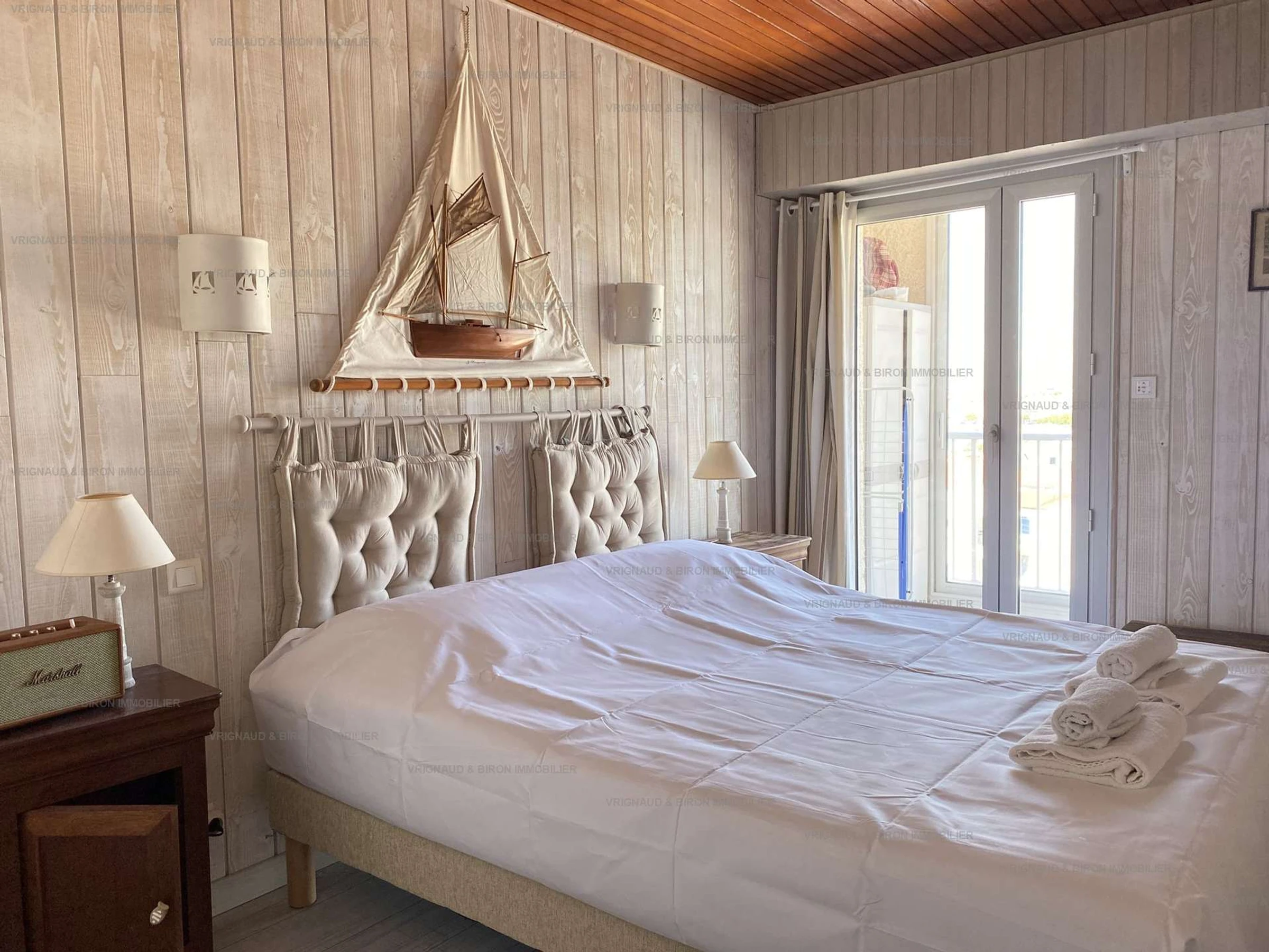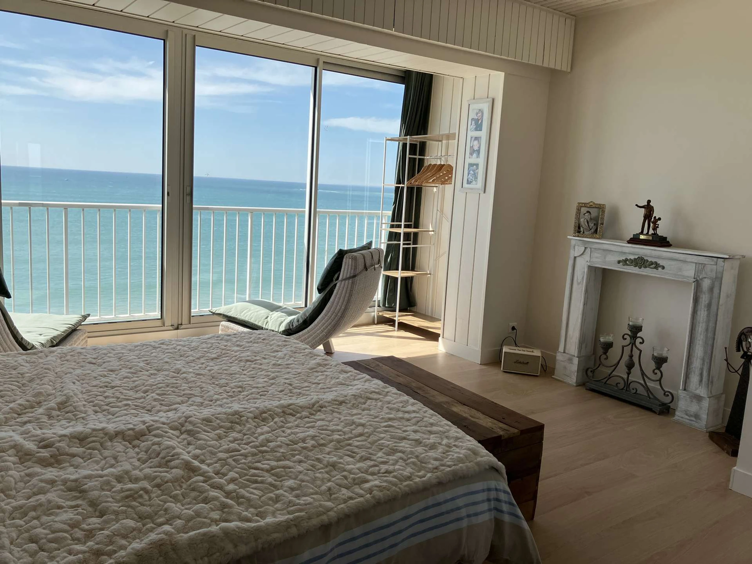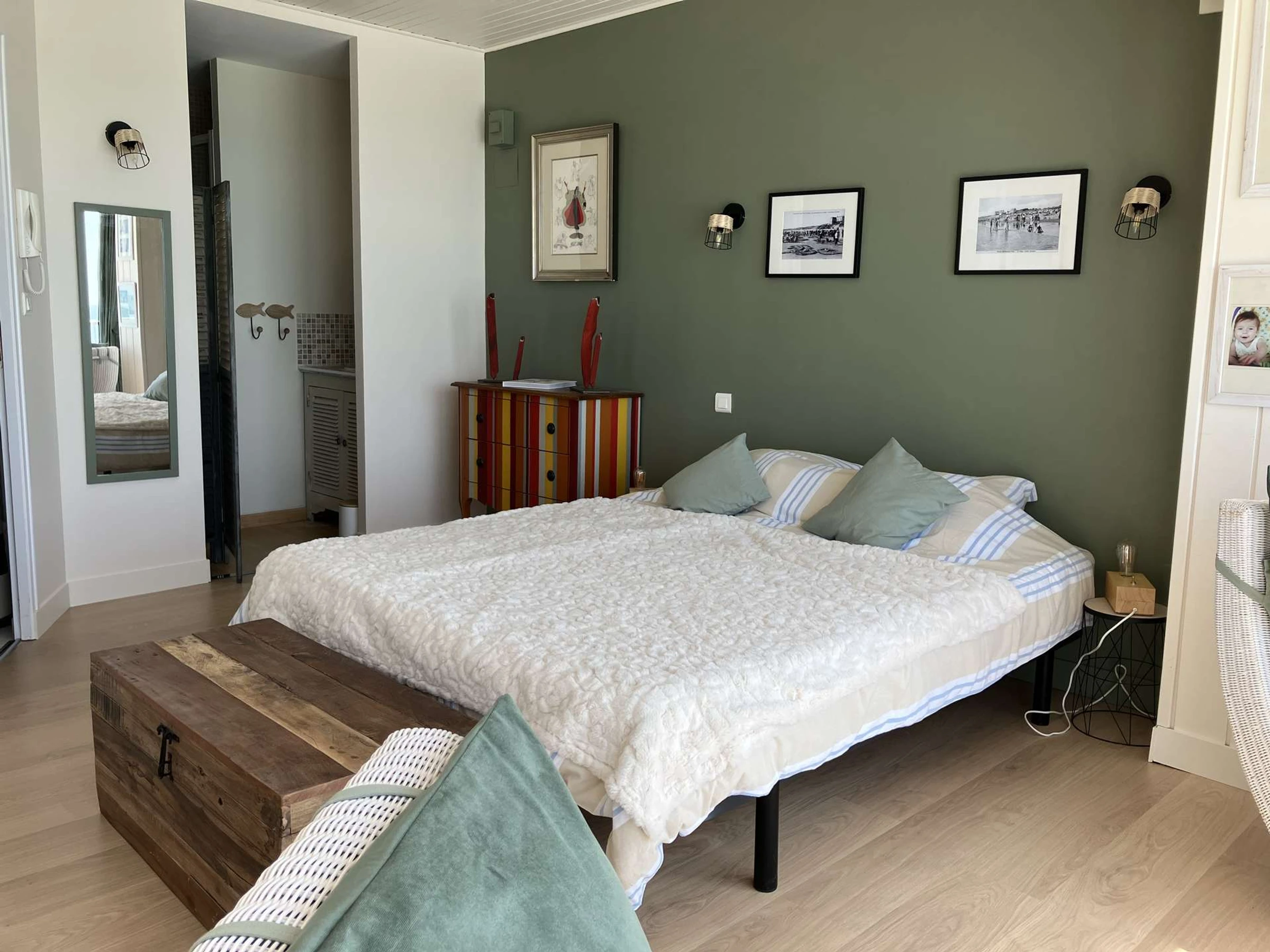 Este apartamento frente al mar se encuentra en la cuarta planta de una residencia segura en la Grande Plage, justo al lado del paseo marítimo. Muy espacioso, tiene capacidad para hasta 6 personas. El salón es luminoso y confortable. La cocina, totalmente equipada y abierta al salón, cuenta con una amplia zona de estar. El dormitorio principal, con cama de matrimonio (160 cm) y baño privado con ducha y aseo, tiene vistas al mar, mientras que los otros dos dormitorios dan a la calle; uno dispone de cama de matrimonio (160 cm) y el otro de dos camas individuales. Comparten un baño con bañera y ducha. El aparcamiento público en la Place Rochebonne es gratuito todo el año. (Ref. Bleu Marine)