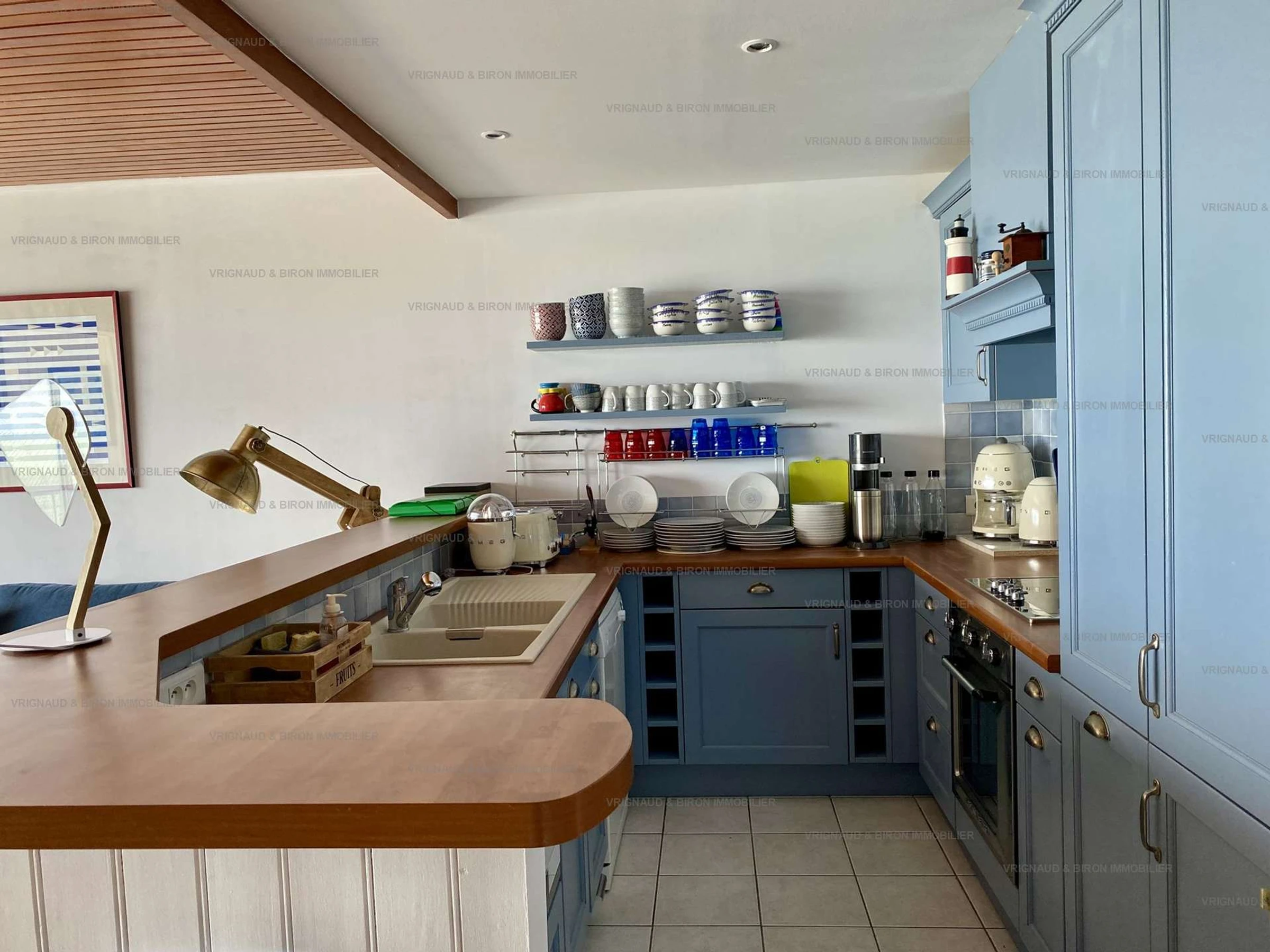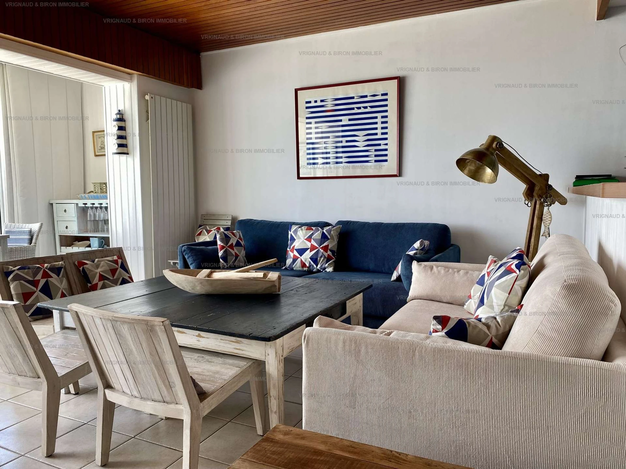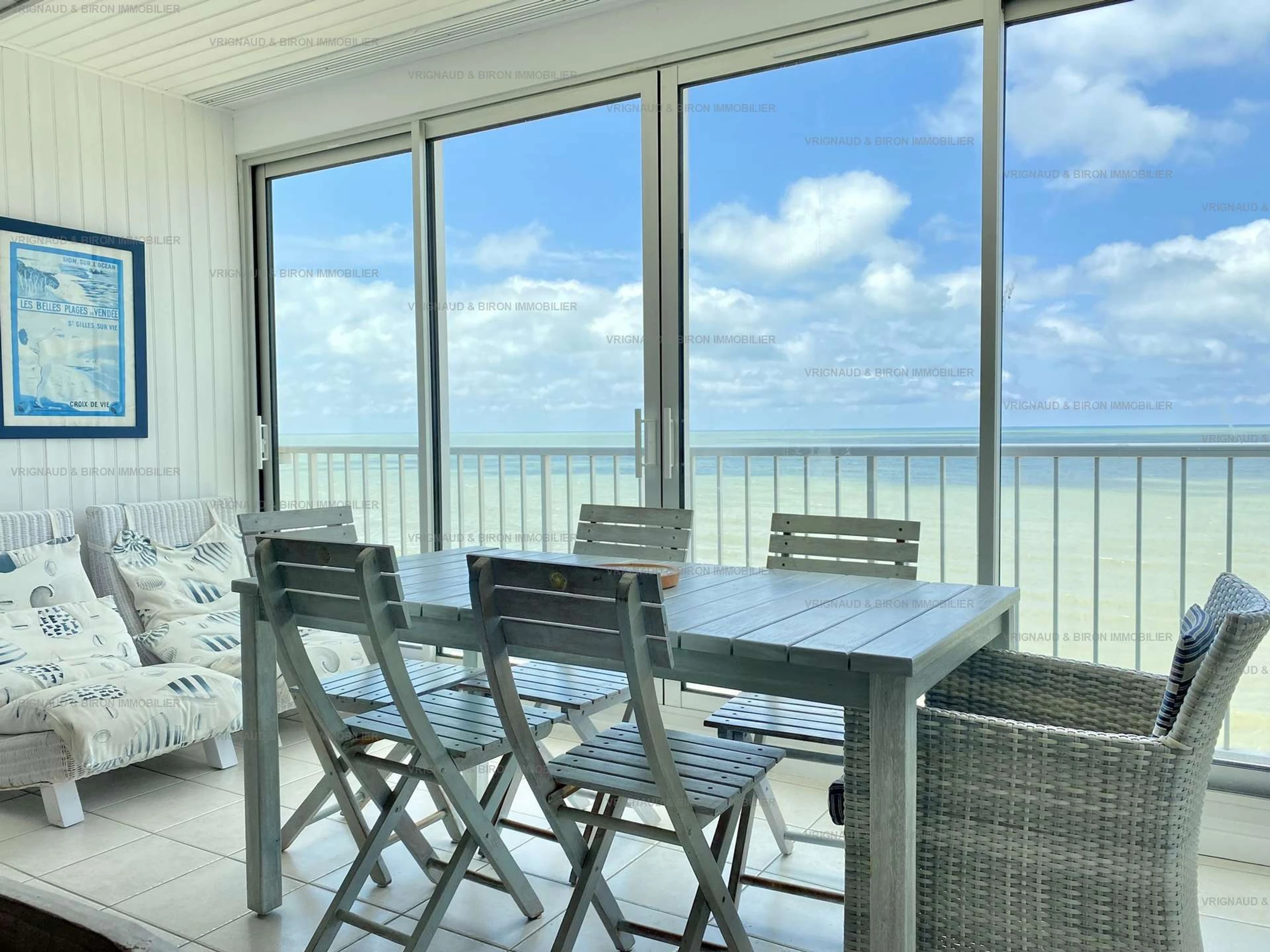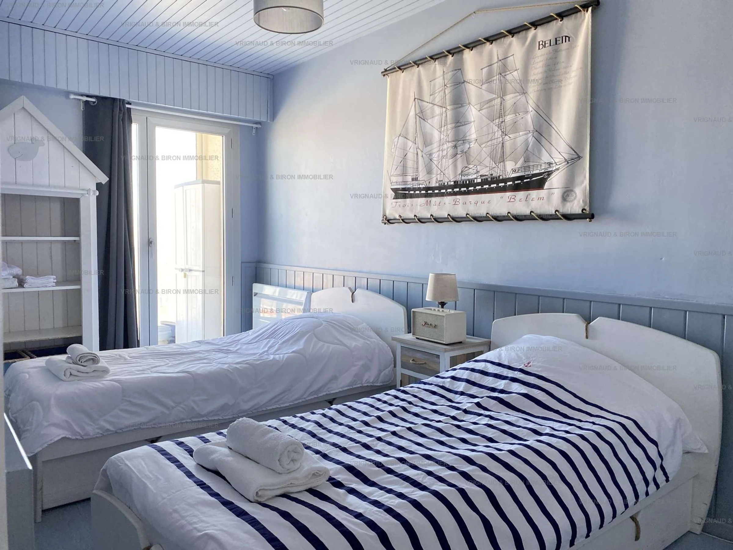 Este apartamento frente al mar se encuentra en la cuarta planta de una residencia segura en la Grande Plage, justo al lado del paseo marítimo. Muy espacioso, tiene capacidad para hasta 6 personas. El salón es luminoso y confortable. La cocina, totalmente equipada y abierta al salón, cuenta con una amplia zona de estar. El dormitorio principal, con cama de matrimonio (160 cm) y baño privado con ducha y aseo, tiene vistas al mar, mientras que los otros dos dormitorios dan a la calle; uno dispone de cama de matrimonio (160 cm) y el otro de dos camas individuales. Comparten un baño con bañera y ducha. El aparcamiento público en la Place Rochebonne es gratuito todo el año. (Ref. Bleu Marine)