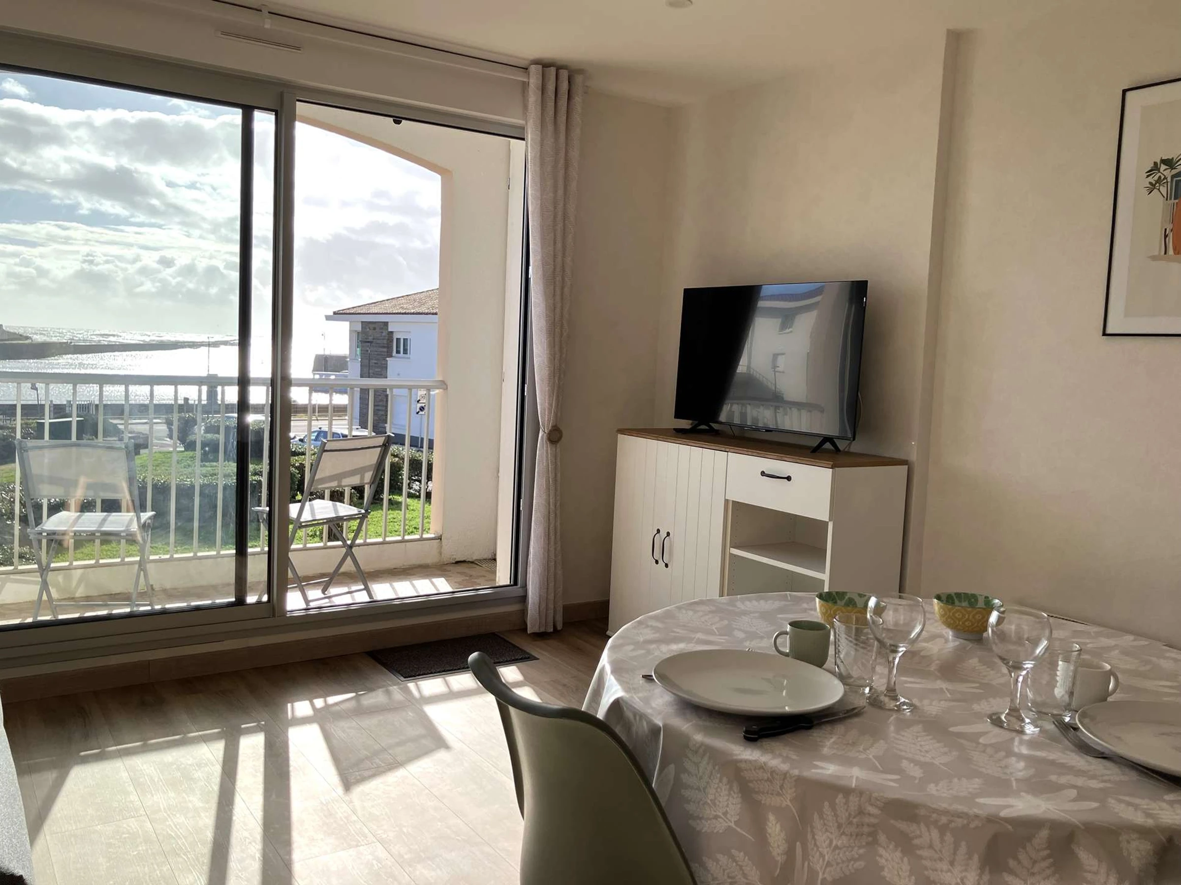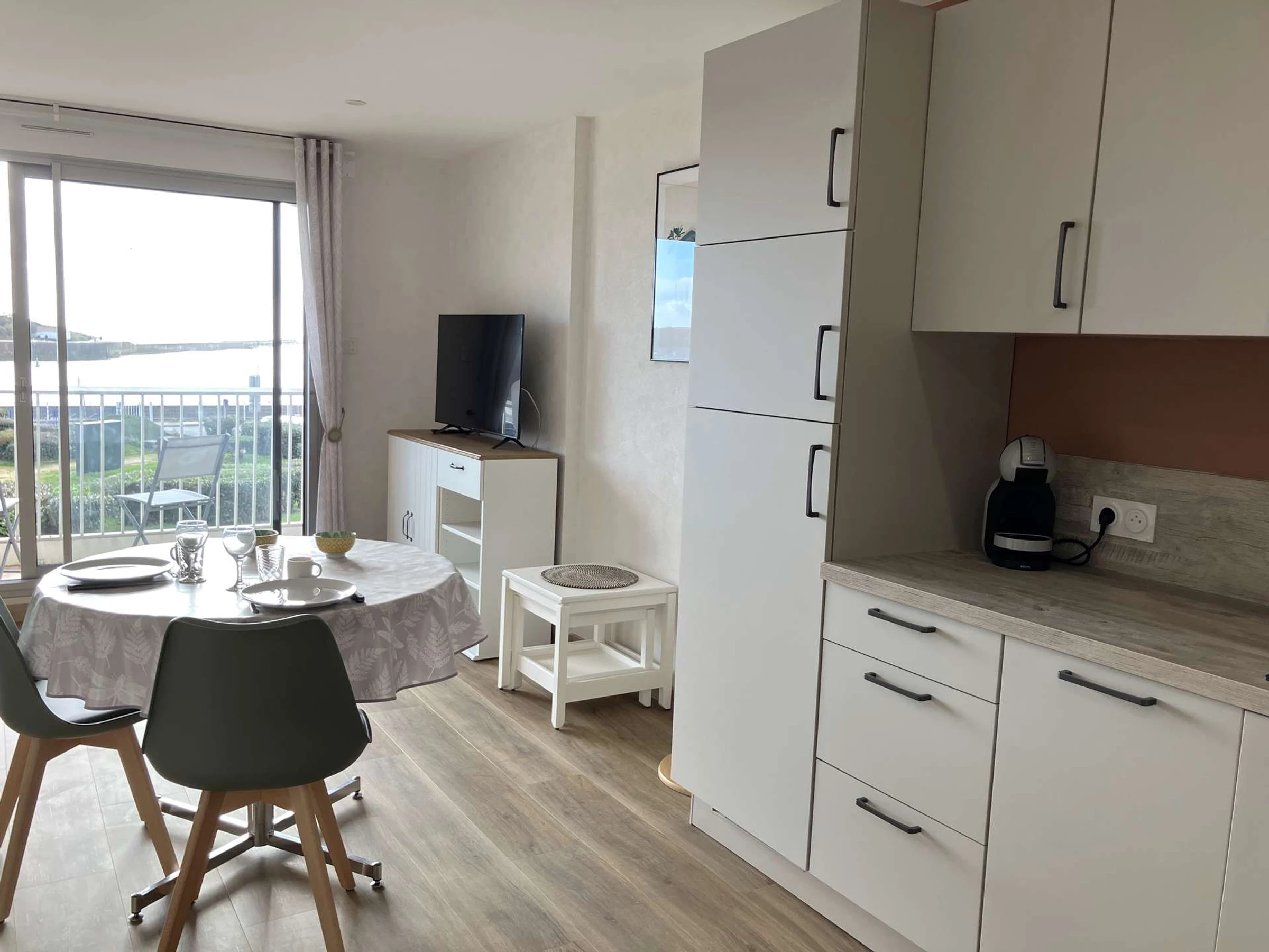 En Croix-de-Vie, este apartamento goza de una ubicación privilegiada frente a la entrada del puerto, a solo 400 metros de la estación de tren y del centro de Croix-de-Vie, y a 300 metros del ferry que lleva a la playa principal. Ubicado en la primera planta de una residencia frente al mar, este estudio recientemente renovado ofrece un espacio cómodo y funcional para dos personas. Consta de una luminosa sala de estar con sofá cama, una cocina americana equipada y un baño con WC. Incluye plaza de aparcamiento privado. Un trastero compartido dentro de la residencia es ideal para guardar bicicletas. ¡Todo está a poca distancia! Ref: Ecume