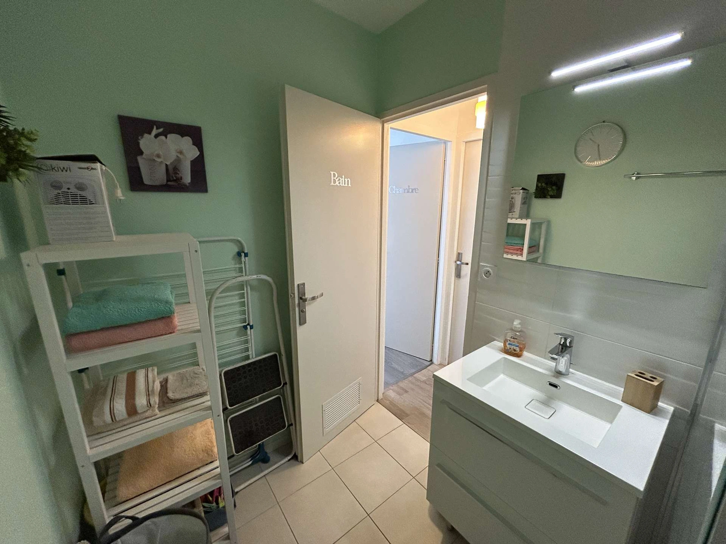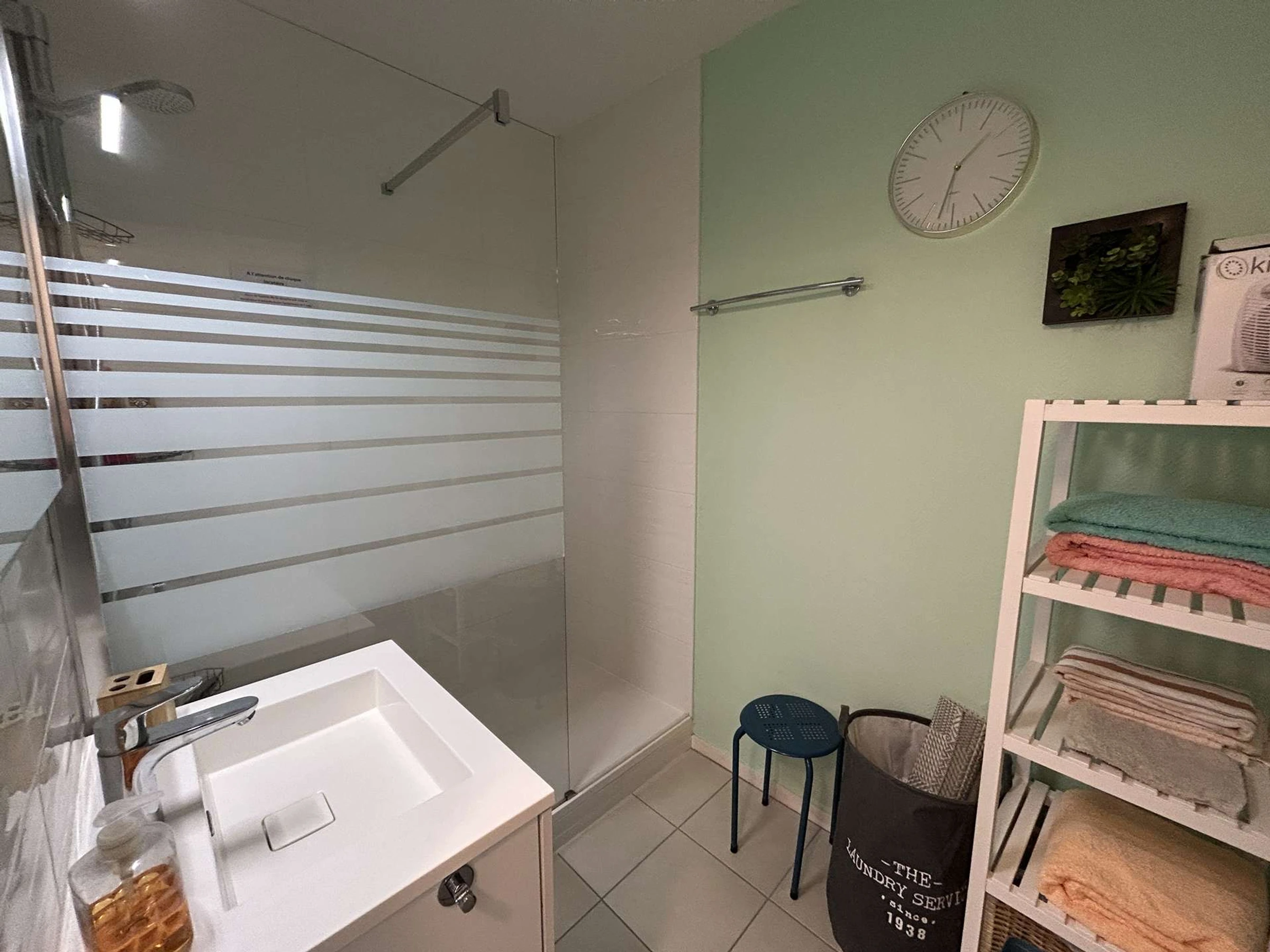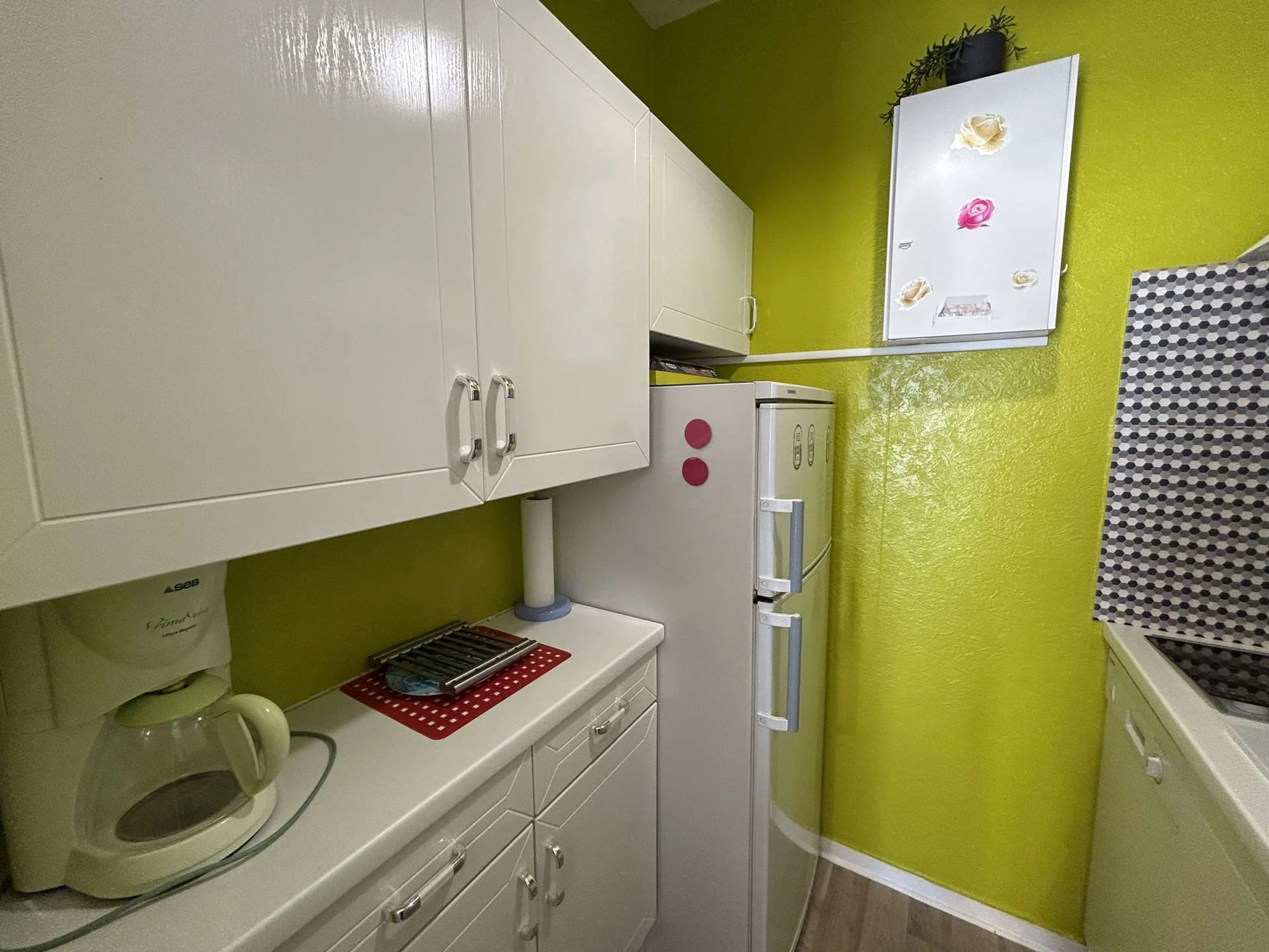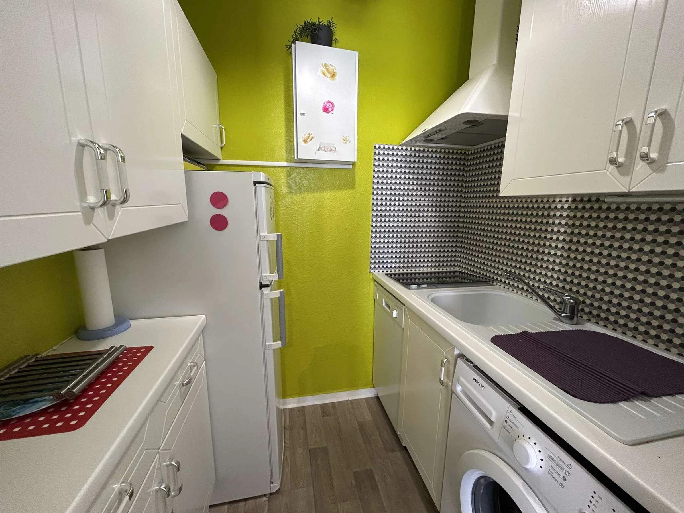 Este apartamento vacacional se encuentra en la primera planta de un pequeño edificio e incluye un salón amueblado, un sofá cama doble (140 cm) y un televisor, una cocina americana totalmente equipada (frigorífico con congelador, minihorno, lavadora y microondas), un dormitorio con una cama doble (140 cm), un baño con ducha a ras de suelo y un aseo independiente.