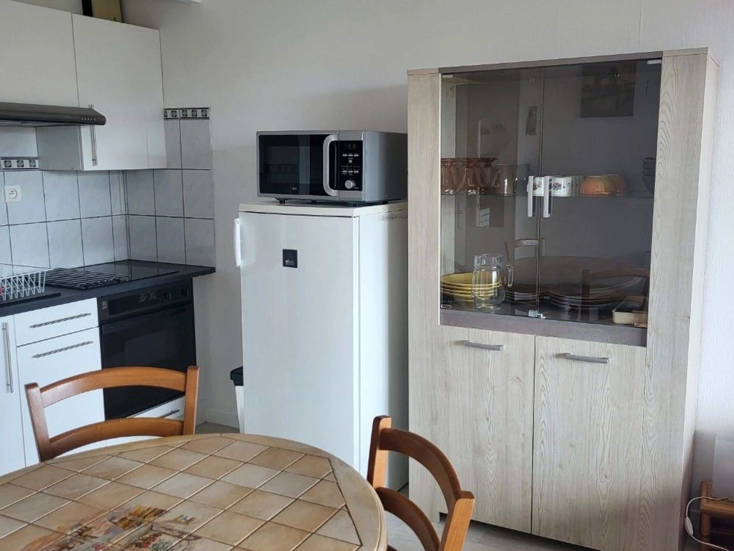 Apartamento ubicado en la 1.ª planta con ascensor de la Residencia Josépha, a 100 metros del mar en Sion-sur-l'Océan. Estudio: entrada/cabina (2 literas individuales), salón/cocina (sofá cama doble), baño con ducha y aseo. Wi-Fi. Balcón de 5 m² con muebles de jardín (vistas al mar). Aparcamiento público frente a la residencia. Bar en la planta baja. Opciones: Limpieza de final de estancia: 80 €/estancia; Alquiler de ropa de cama para 1 o 2 personas: 12 €/estancia; Alquiler de toallas: 10 €/persona/estancia.