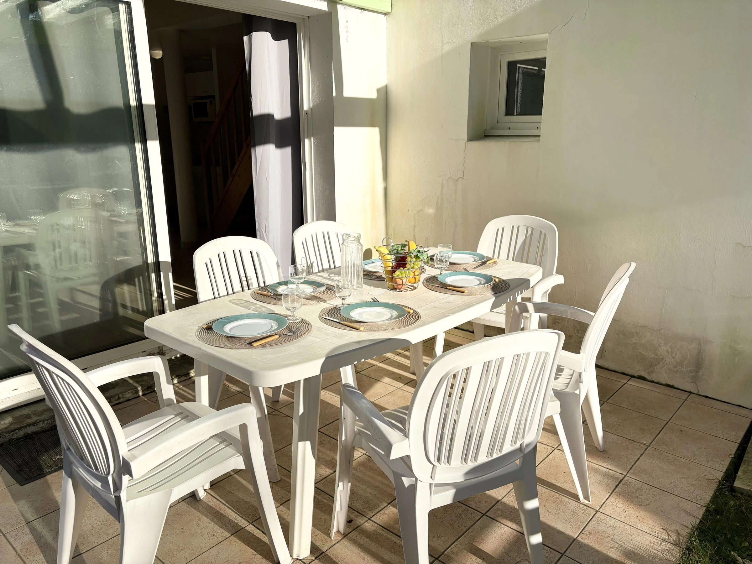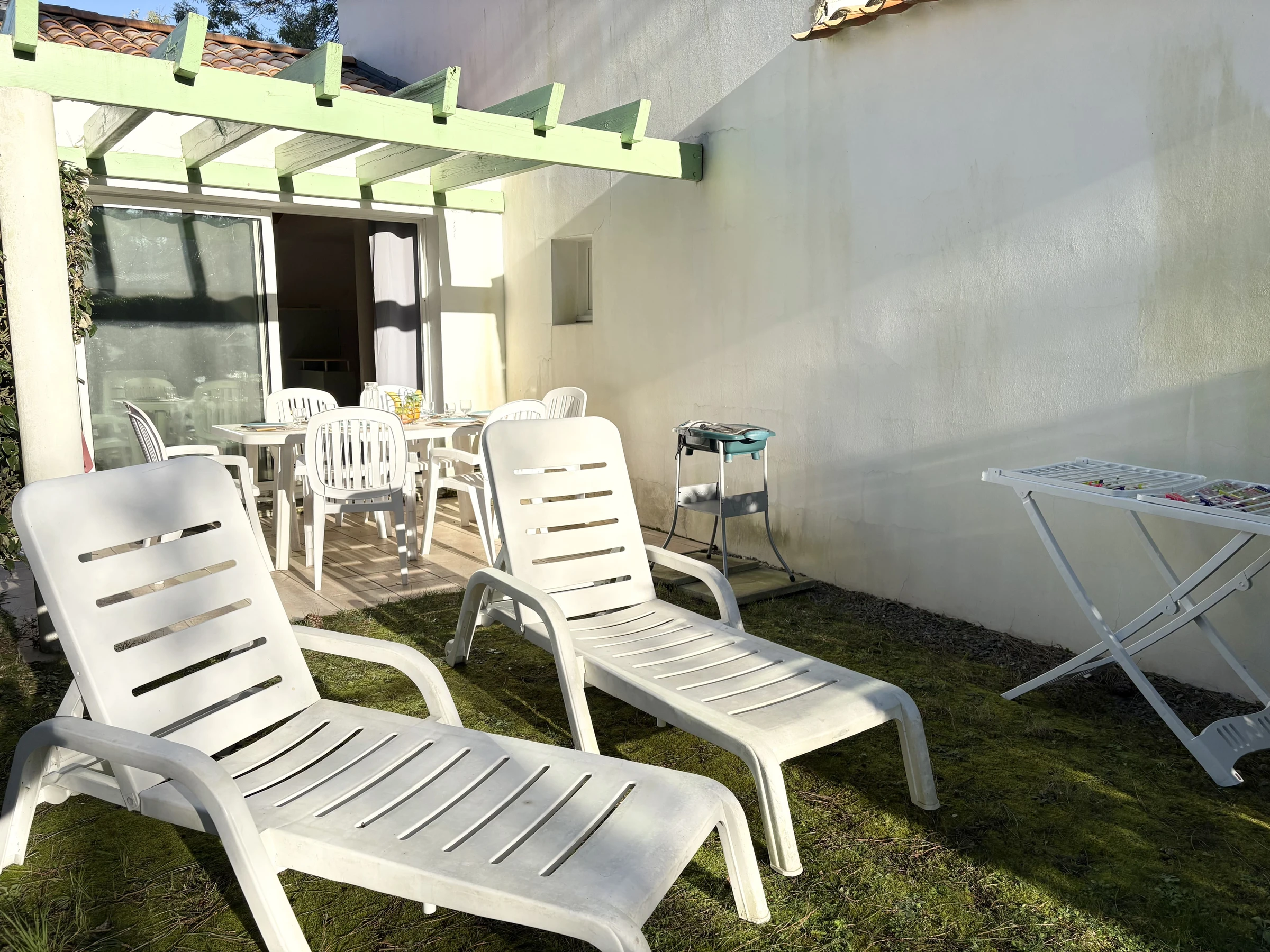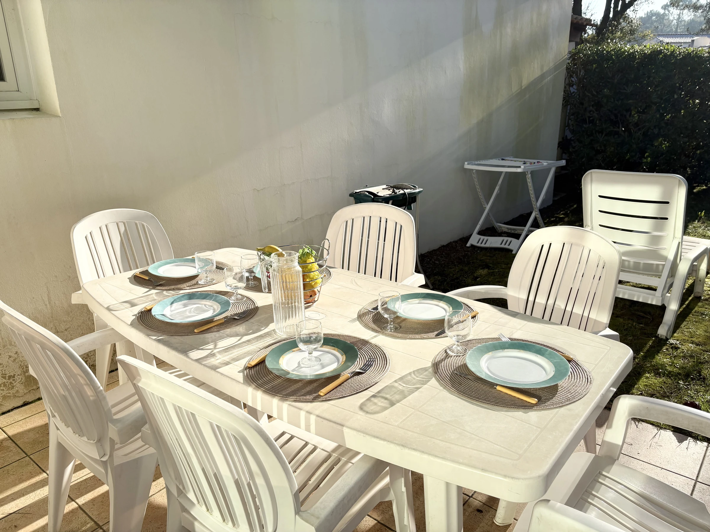 Exterior: Terraza soleada con muebles de jardín y barbacoa