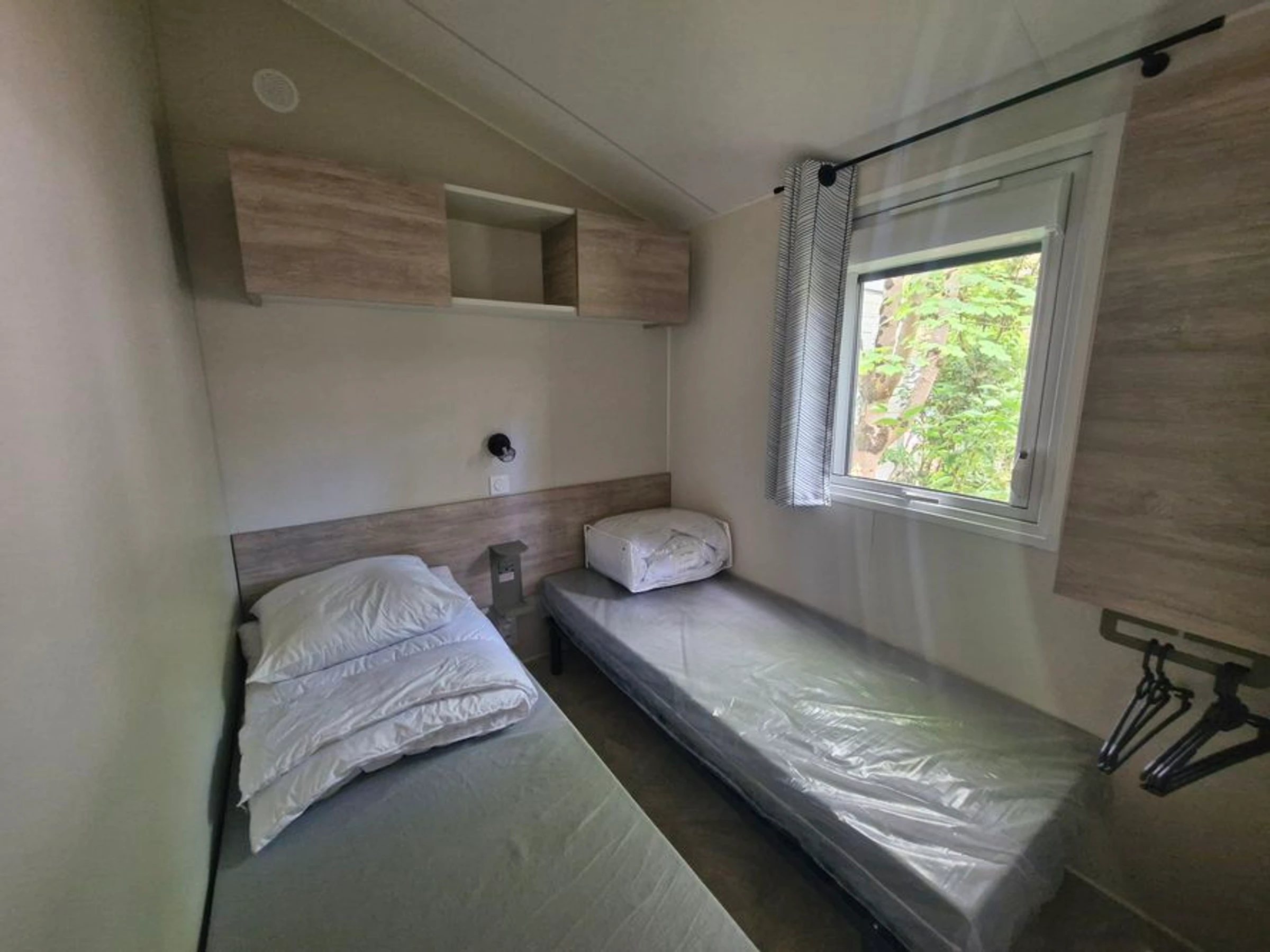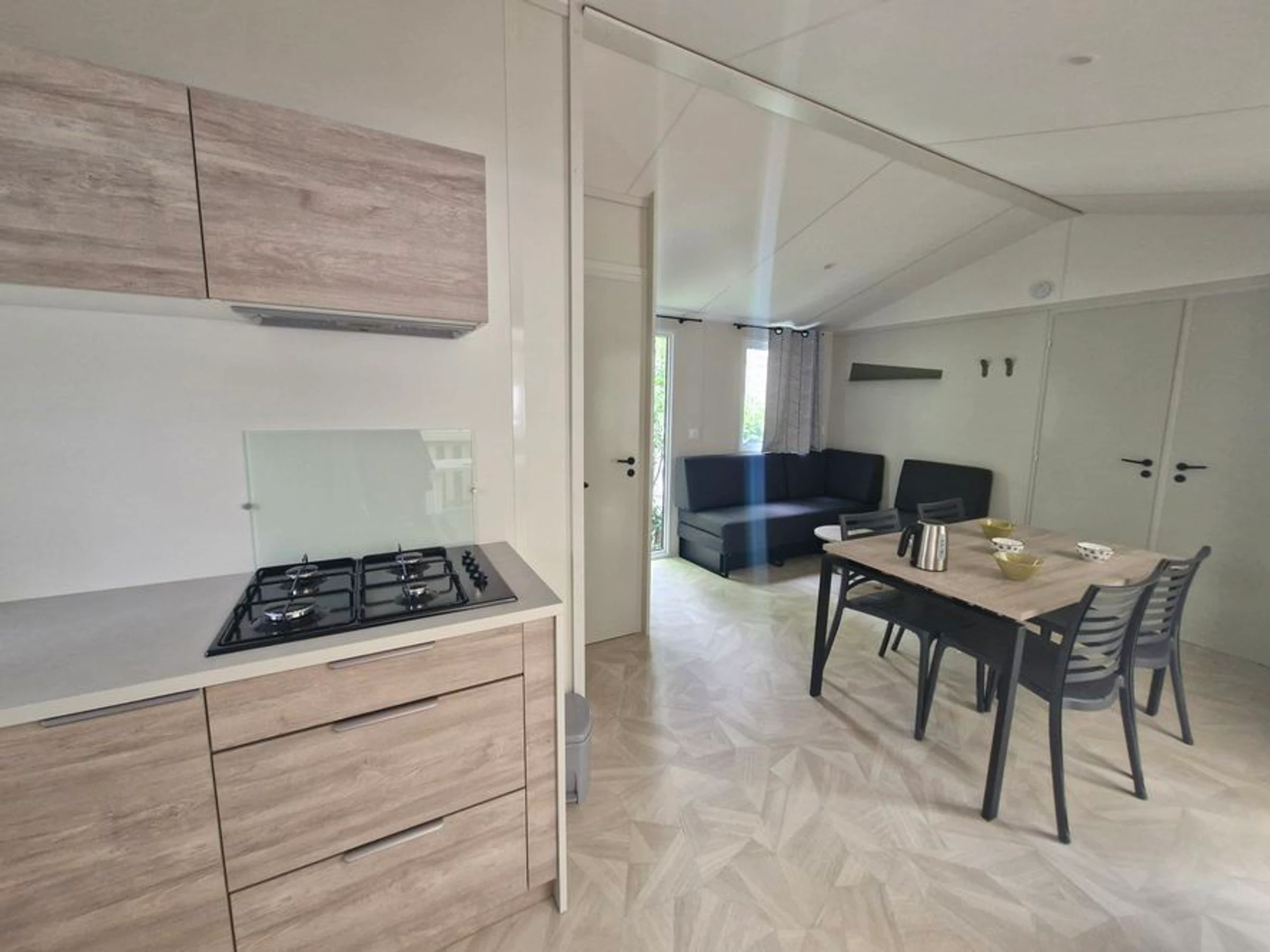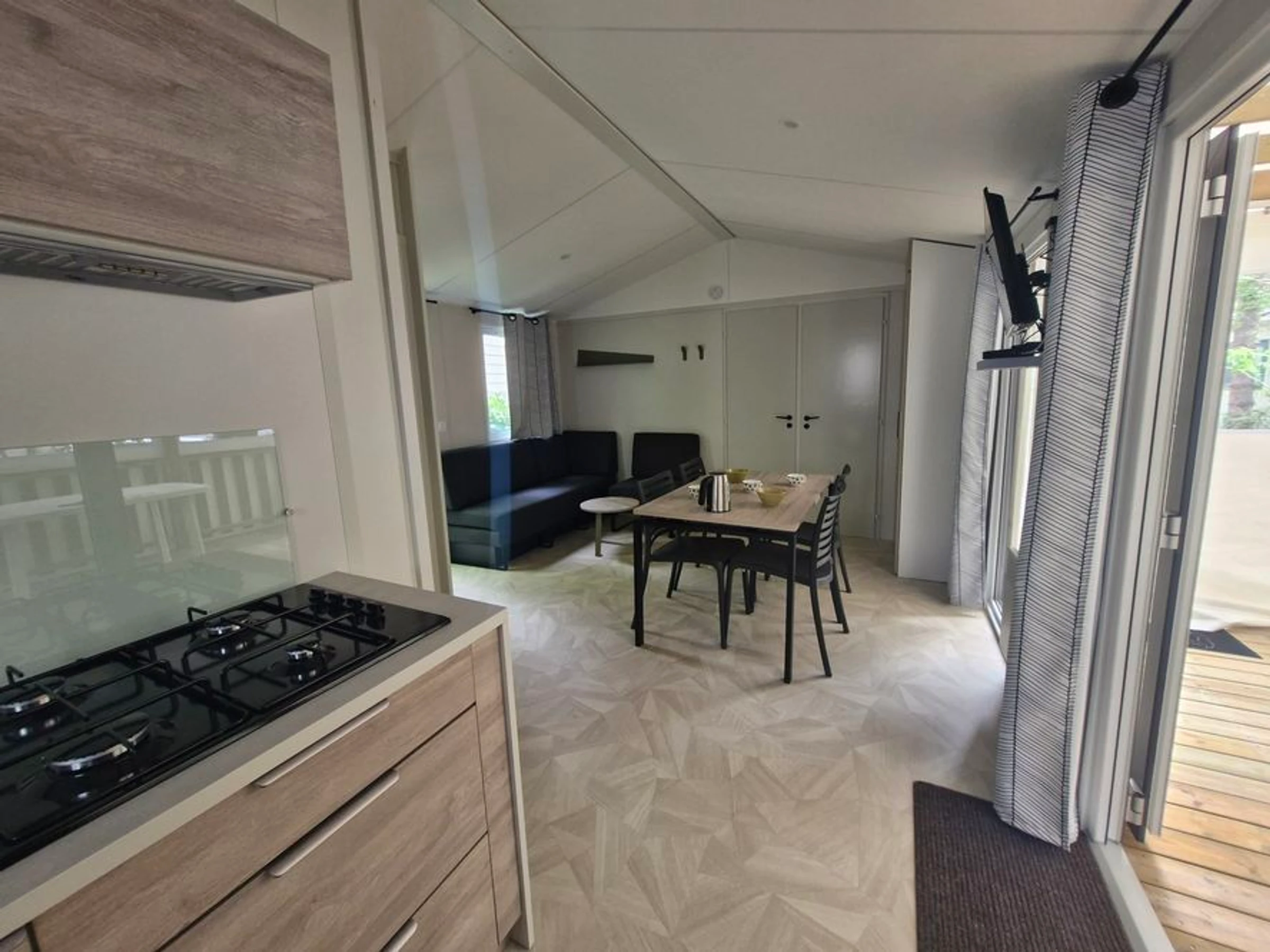 En un camping de 4 estrellas situado a 1800 m de la playa, en las inmediaciones del bosque y las rutas ciclistas. Mobil-home de 2025 para 4 personas con una superficie de 31 m². El camping ofrece supermercado, restaurante, bar, comida para llevar, gimnasio, piscina exterior climatizada (julio/agosto), piscina cubierta climatizada y jacuzzi. Internet, alquiler de bicicletas, sauna, hammam y lavadora (con suplemento).