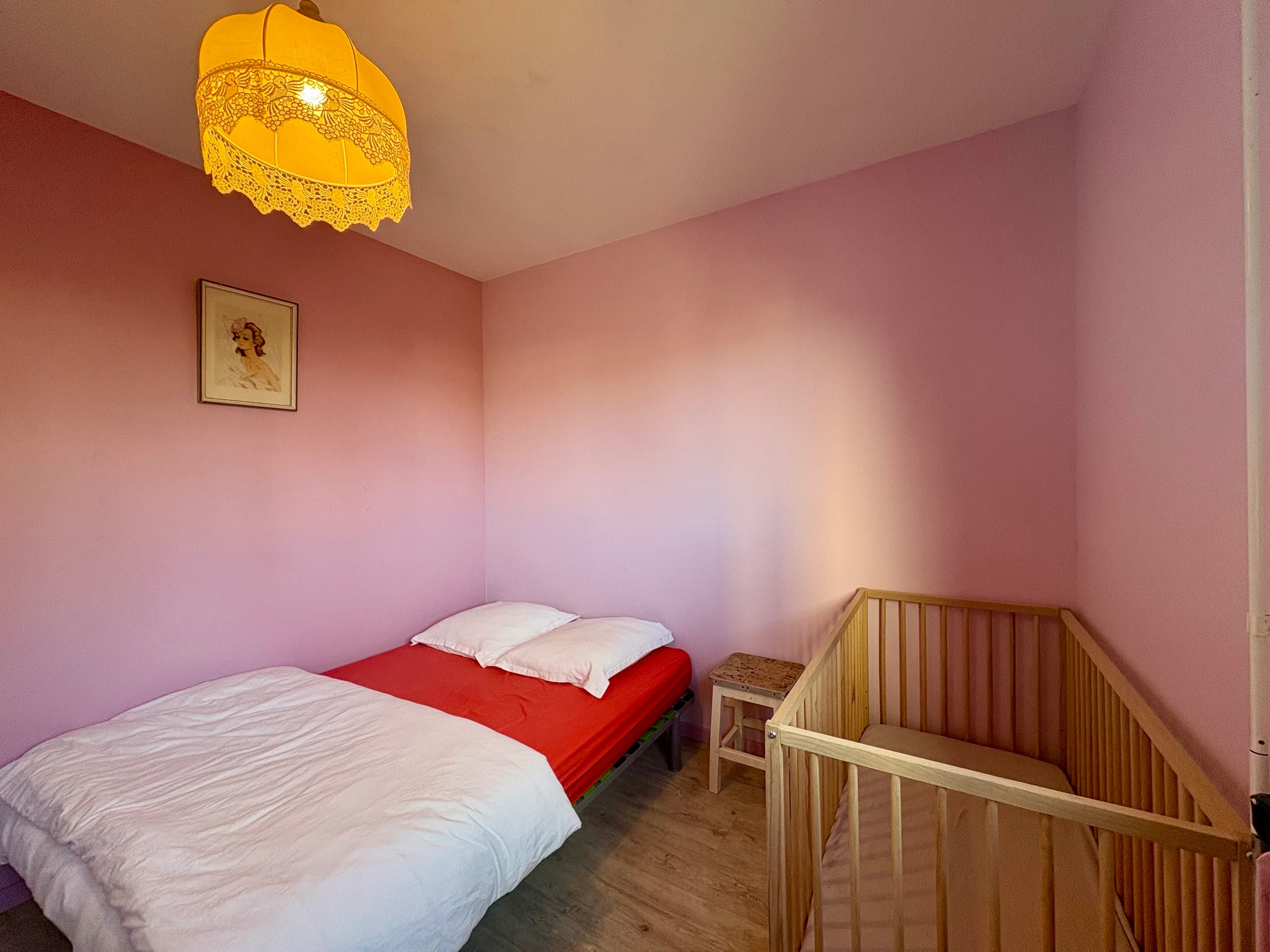 * Un dormitorio con una cama doble (140x190cm) y una cama individual (90x190cm)