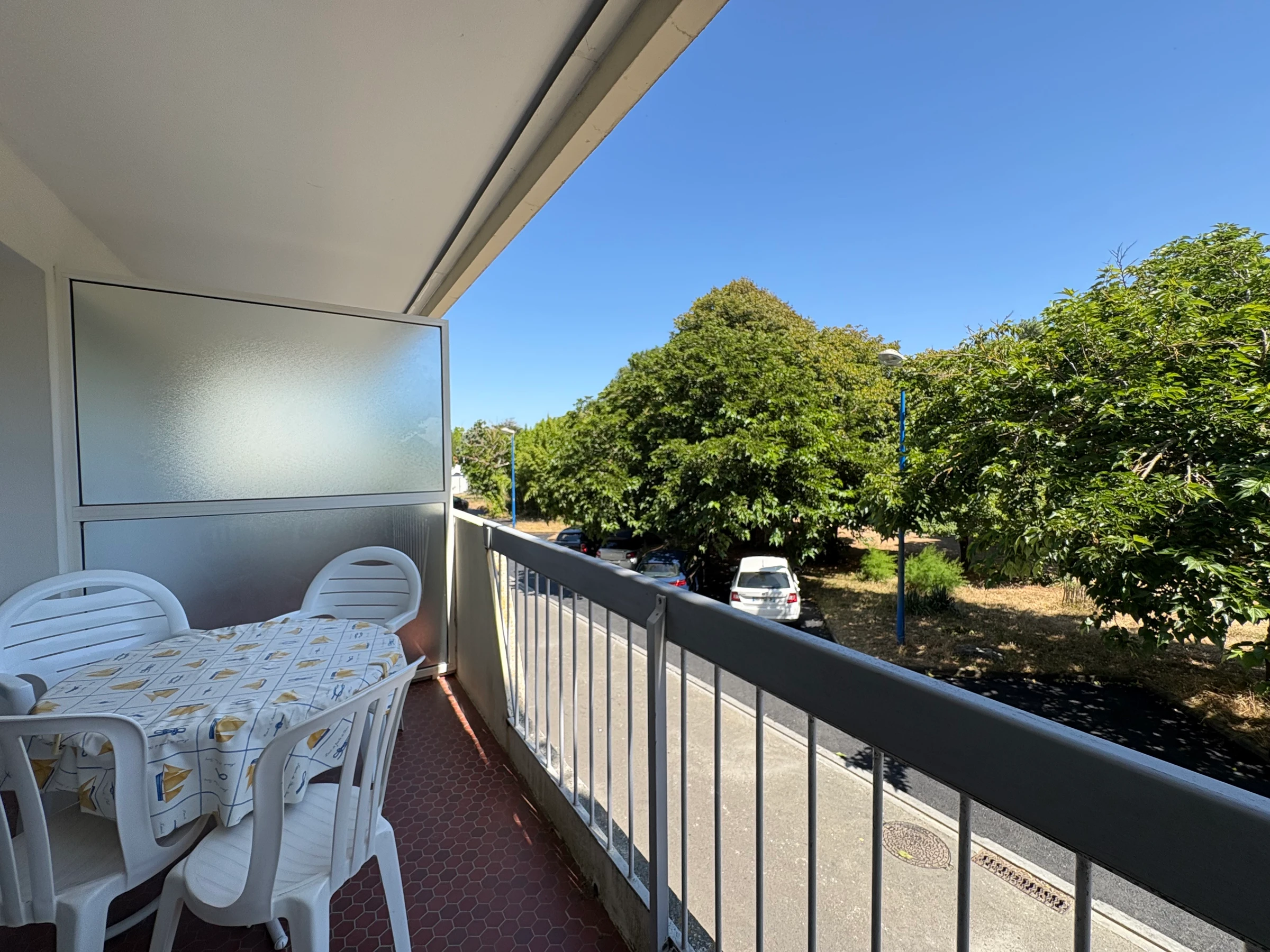 * Un balcón con muebles de jardín, ideal para disfrutar de comidas al aire libre.