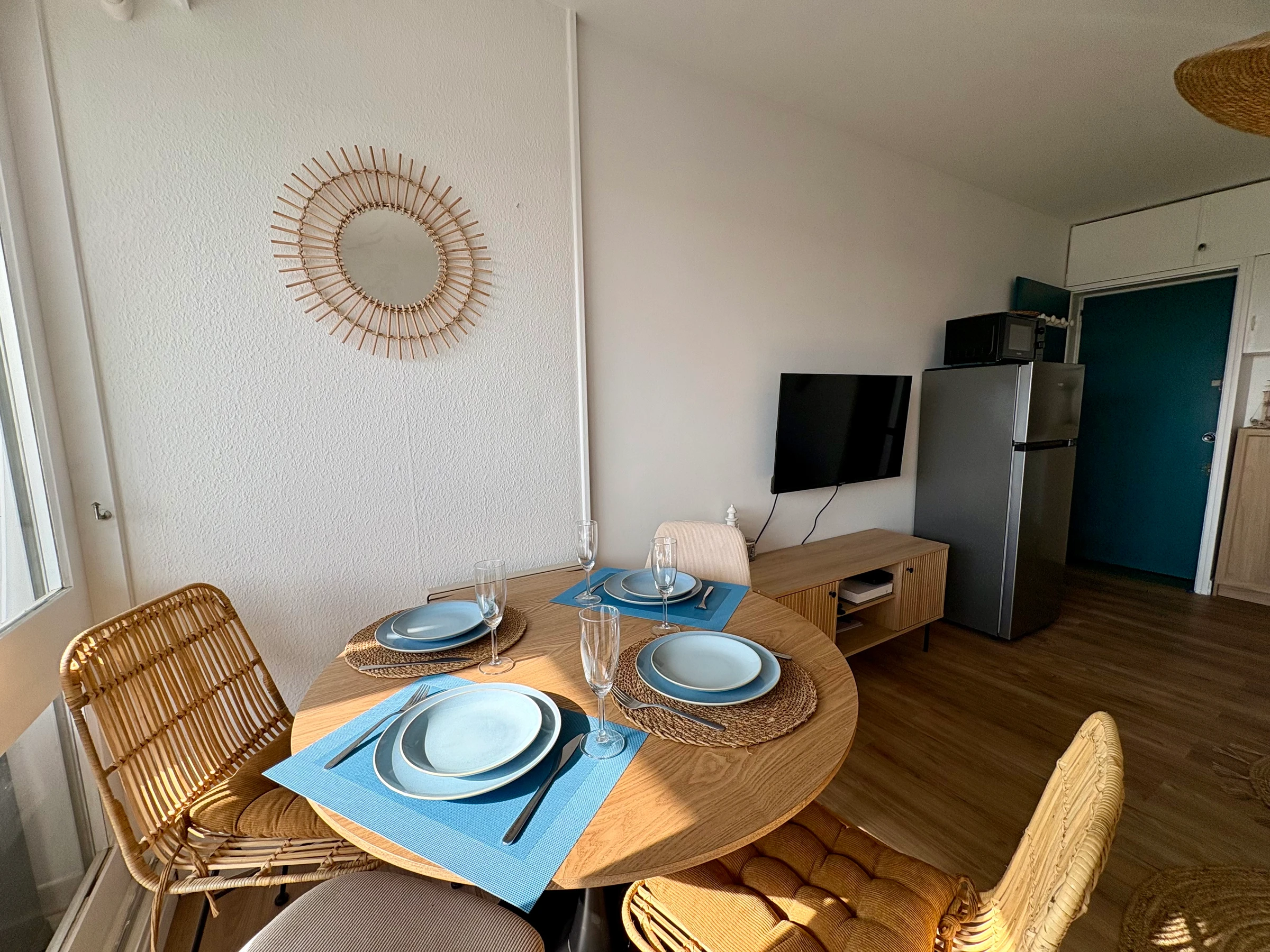 - Una mesa con sillas, un sofá cama para 2 personas - TV de pantalla plana y wifi.