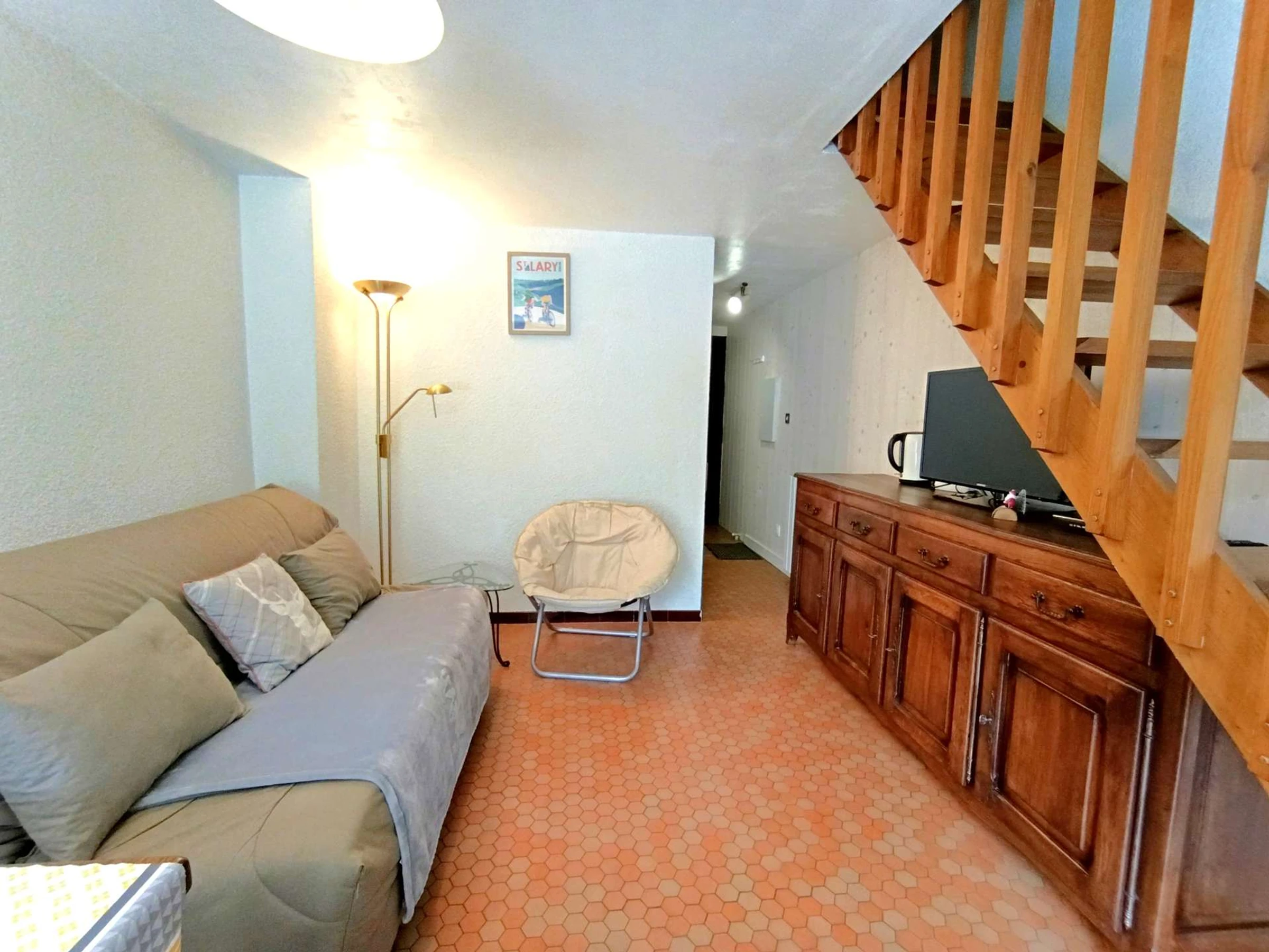 Salón con TV, sofá cama de 160 cm, reproductor de DVD y raclette