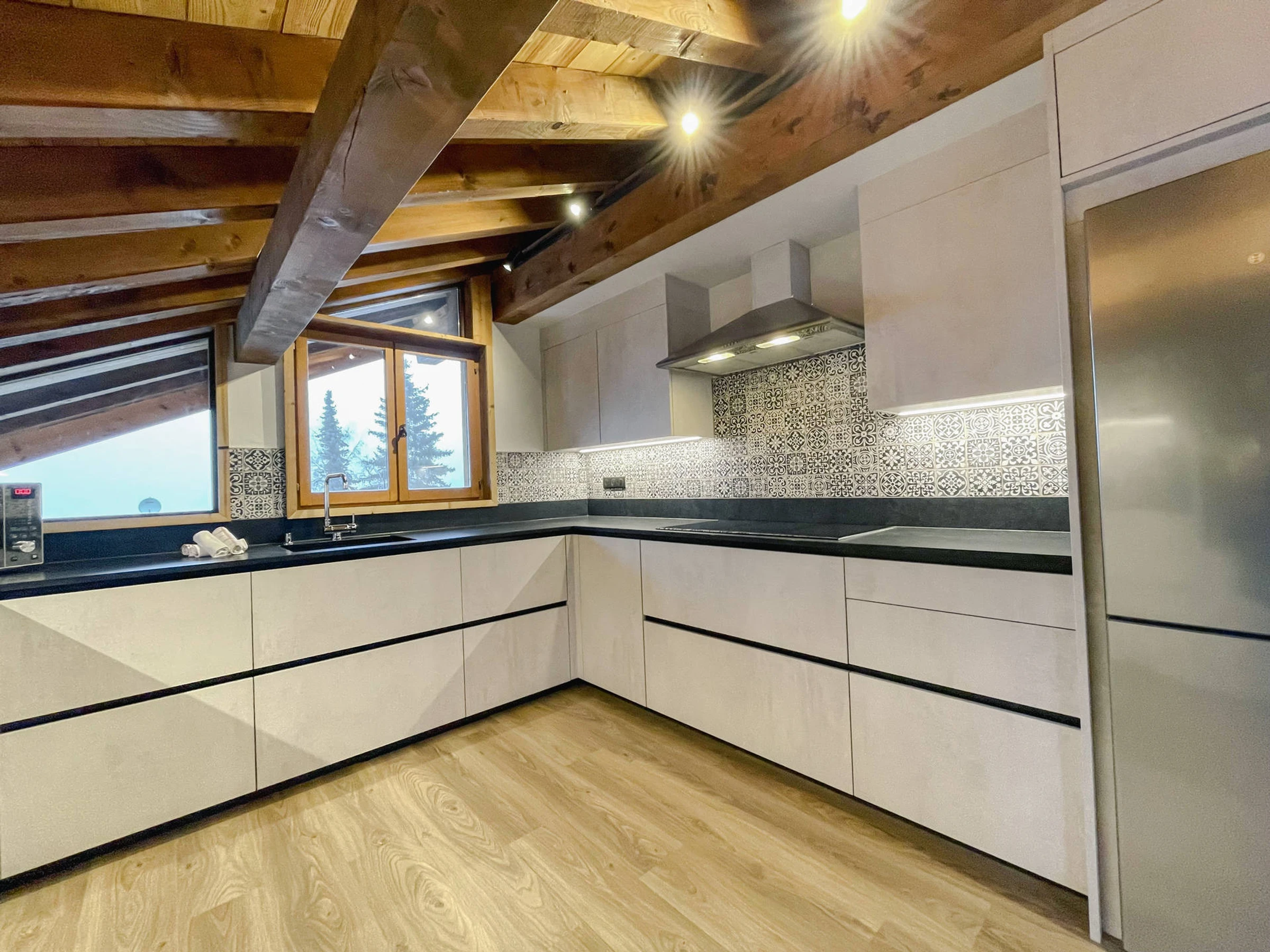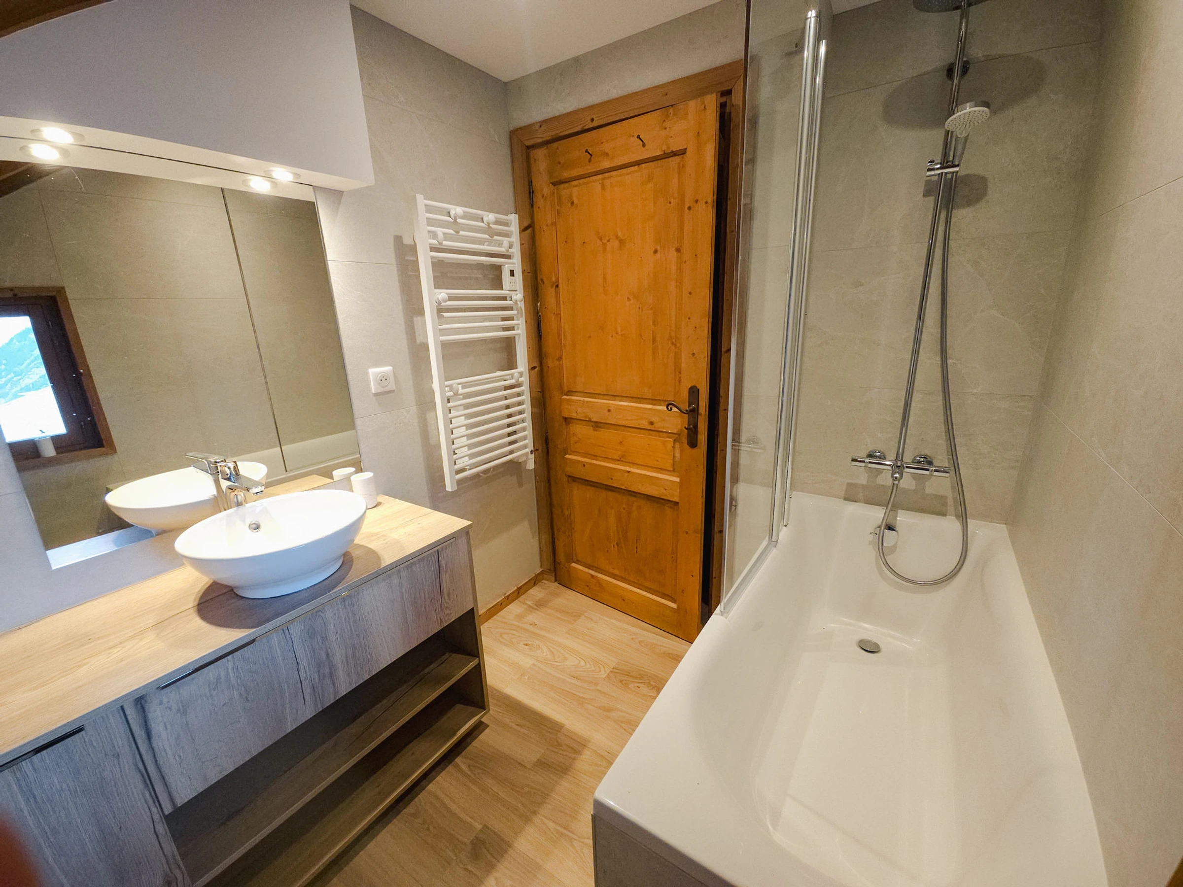 CHALET DES ENCOMBRES n°2, 5 habitaciones, dúplex, 10 personas, 112m²+21,5m² <1,80m, acceso planta baja, 2 balcones (orientación sur y oeste). Acceso a las pistas: remonte en el centro del pueblo a 100 m