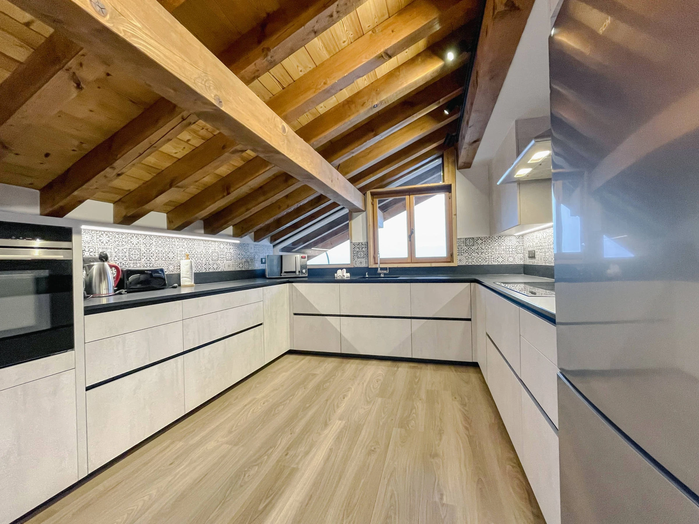 Cocina: vitrocerámica (x4), campana extractora, horno, microondas, frigorífico con congelador, lavavajillas, cafetera, hervidor, tostadora, set de fondue.