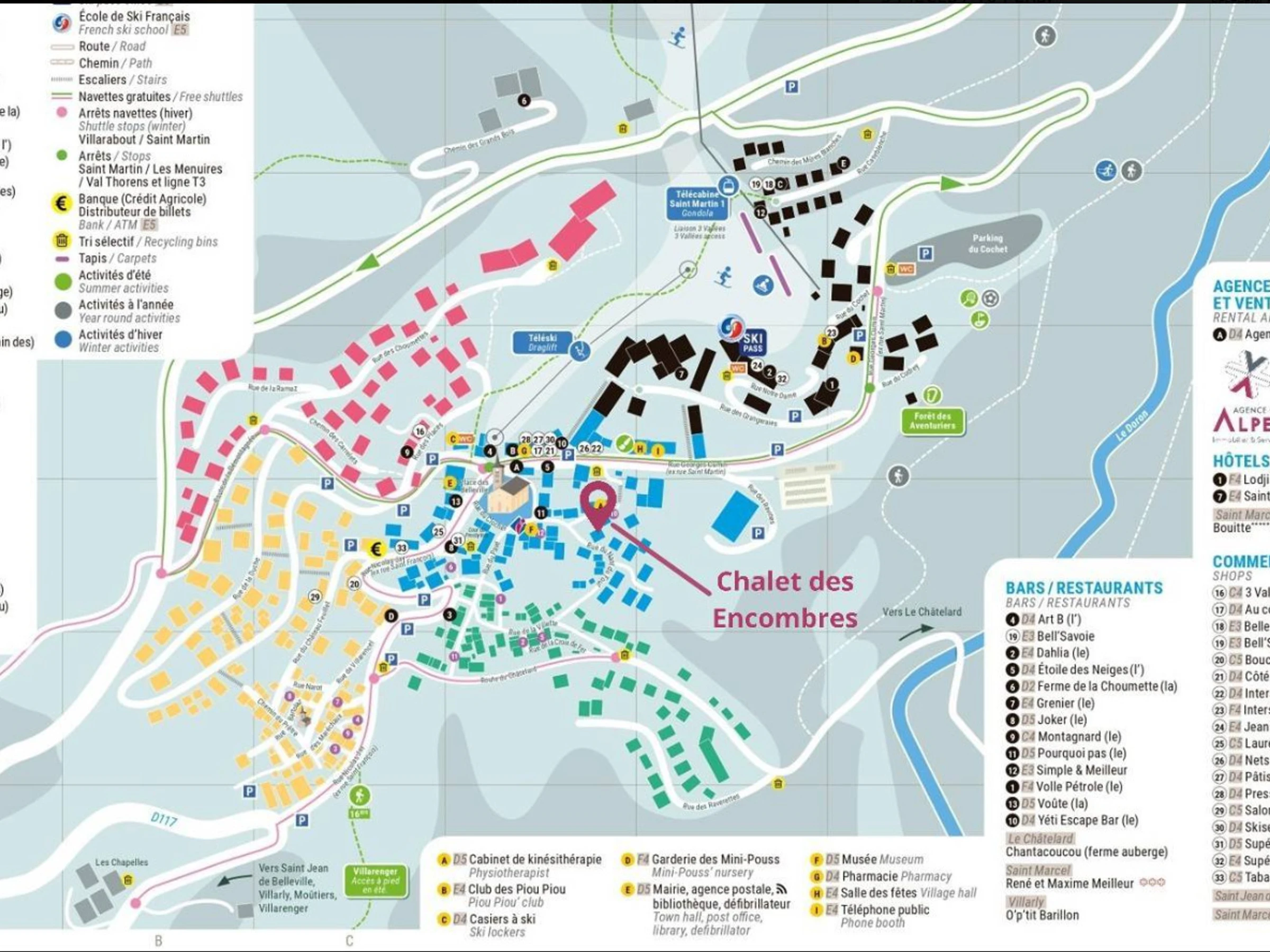 Los Chalets des Encombres forman un pequeño conjunto estilo chalet donde predominan la piedra y la madera. La residencia se encuentra a pocos pasos del centro de la estación del pueblo de St Martin de Belleville y de sus servicios: pistas de esquí, tiendas (alimentación, tiendas de deportes, restaurantes...), servicios (escuela de esquí, guardería, farmacia, Maison du Tourisme ...). El remonte del centro del pueblo está a unos 100 metros.