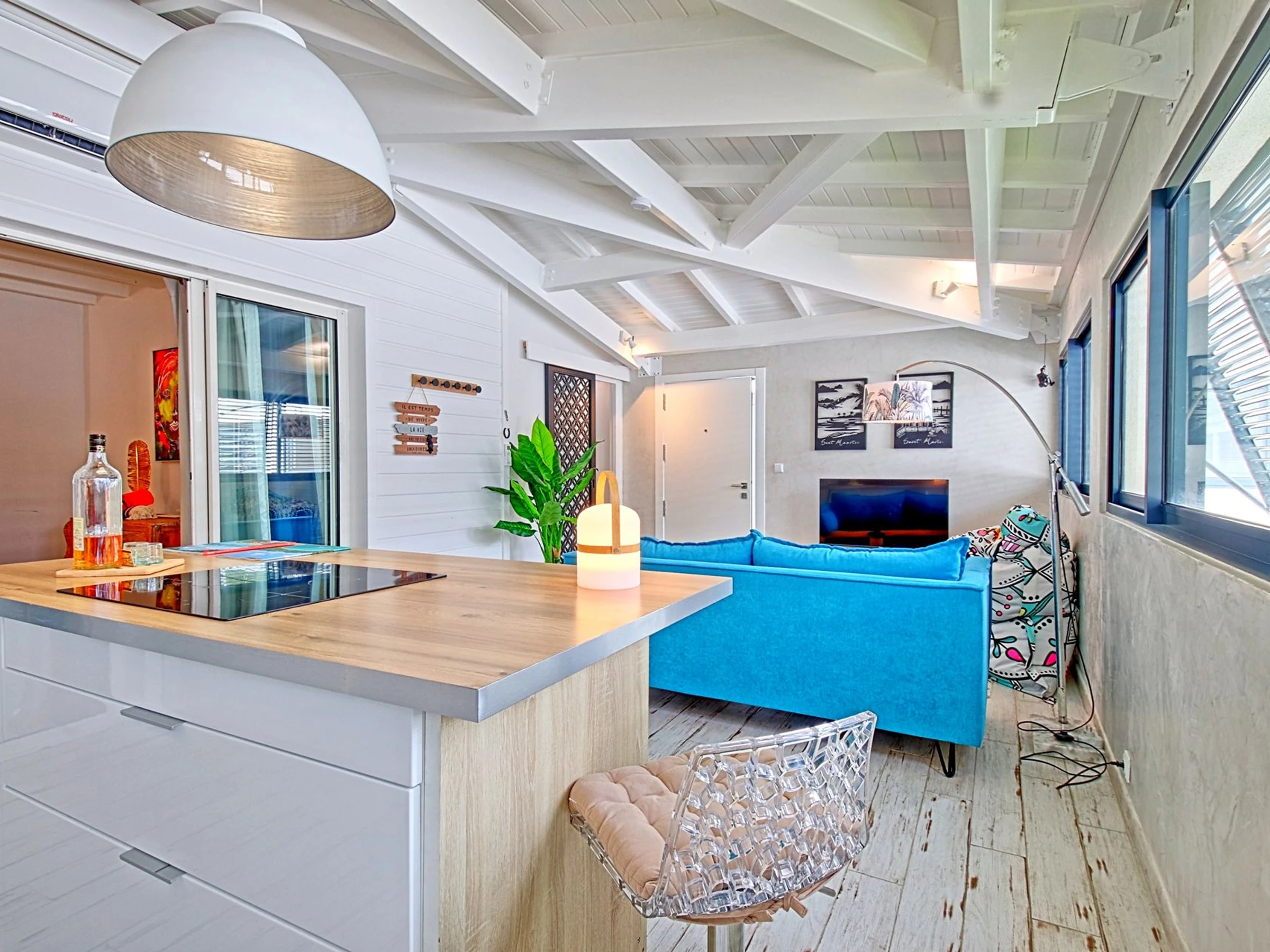 Bienvenido al apartamento Pelican: Ubicado en el corazón de Anse Marcel, en la prestigiosa residencia Acacias, a solo 400 metros de las playas de arena blanca, descubra un verdadero remanso de paz en el corazón de la Marina. Ubicado en la planta superior, este suntuoso apartamento de 2 dormitorios le invita a vivir unas vacaciones excepcionales.