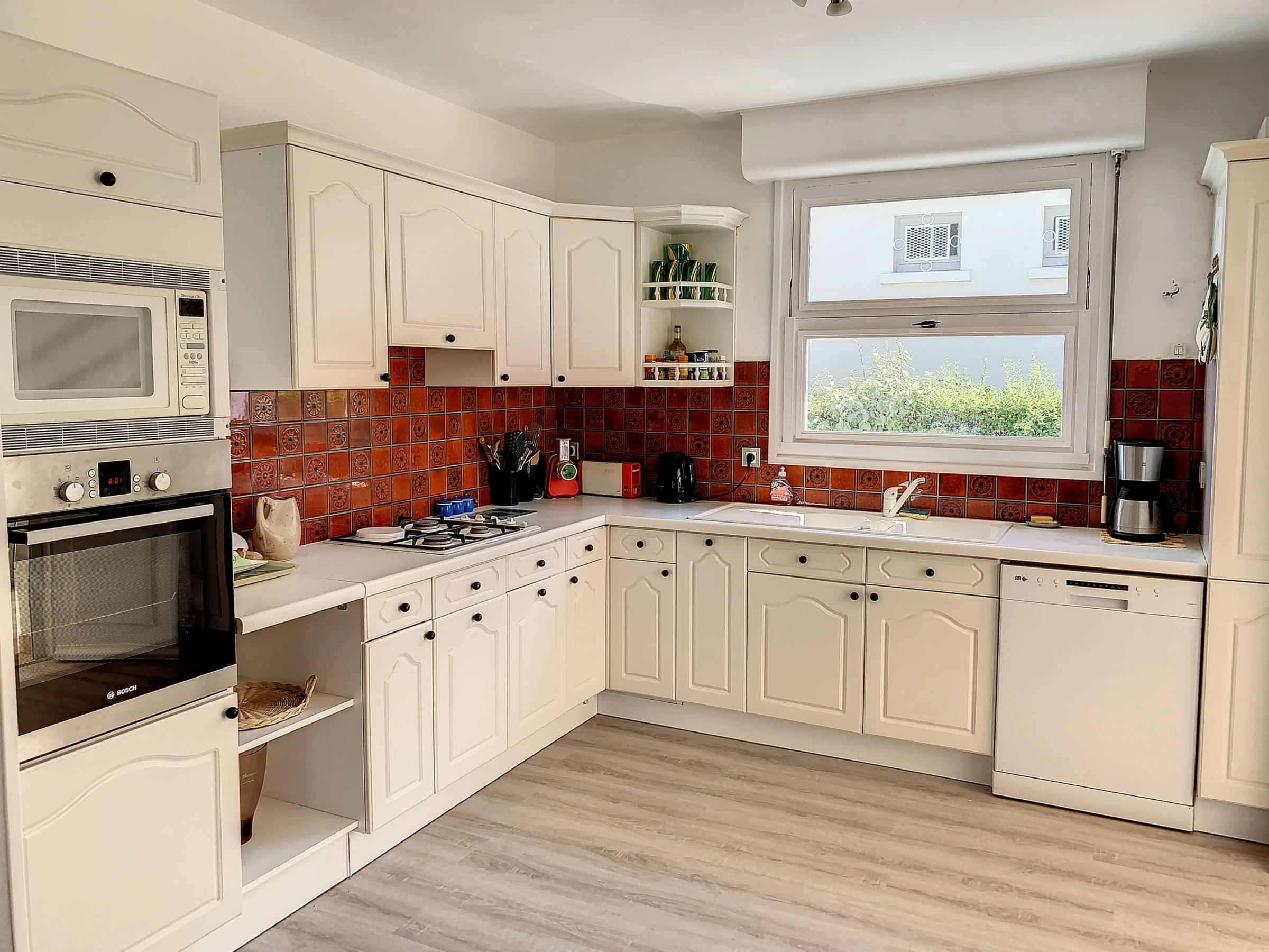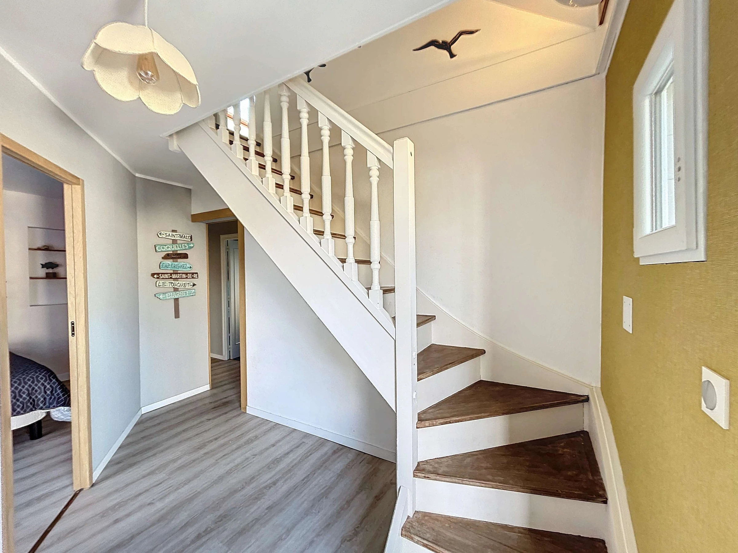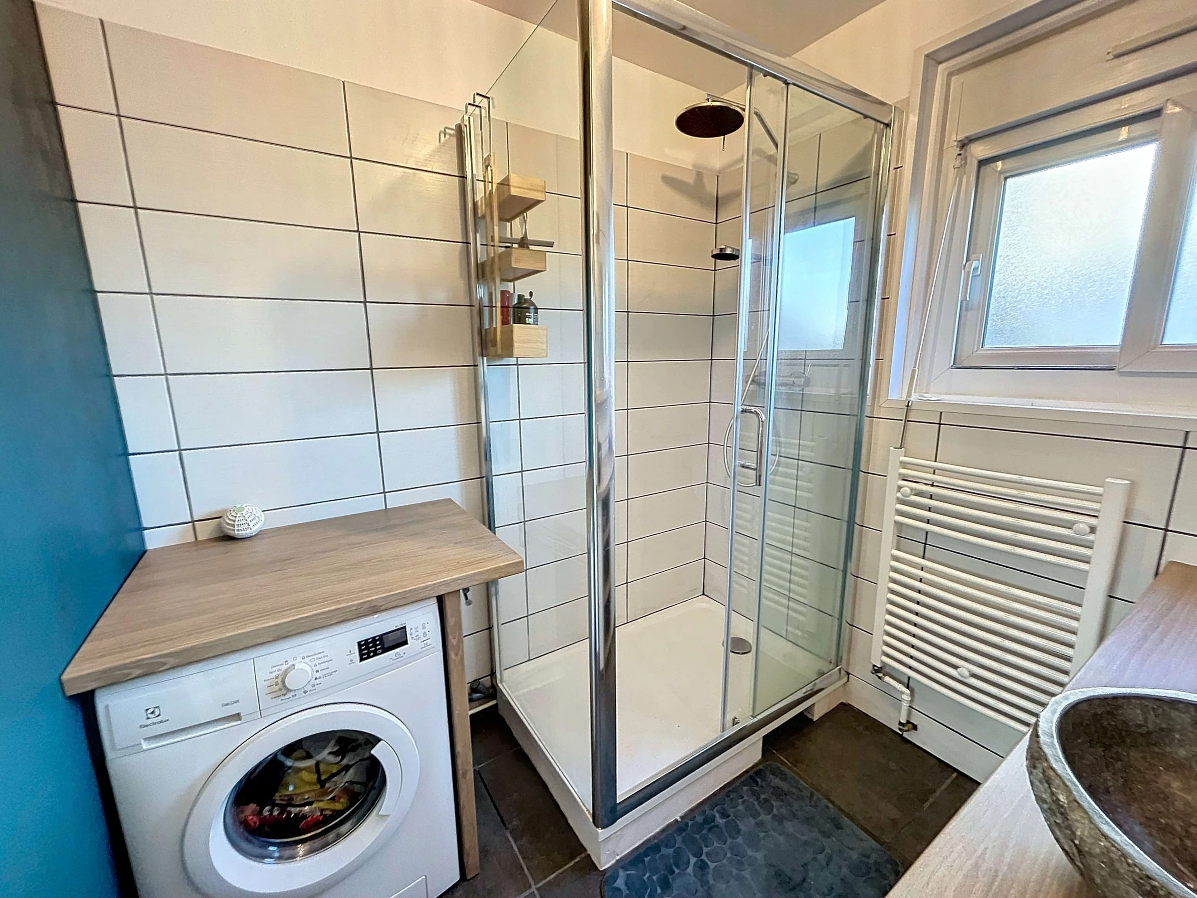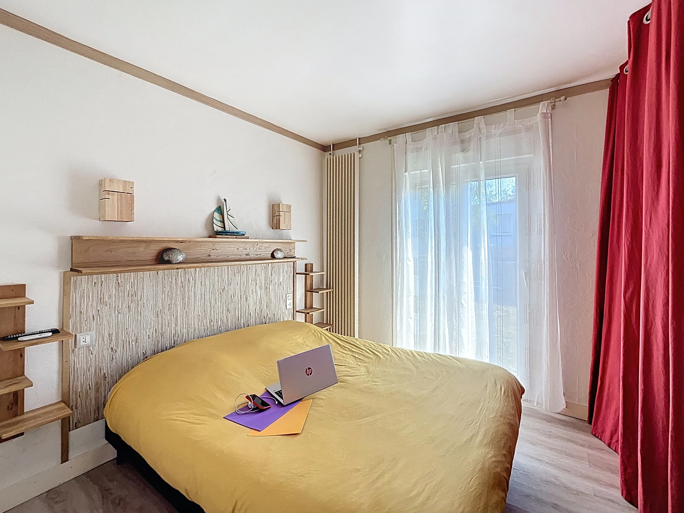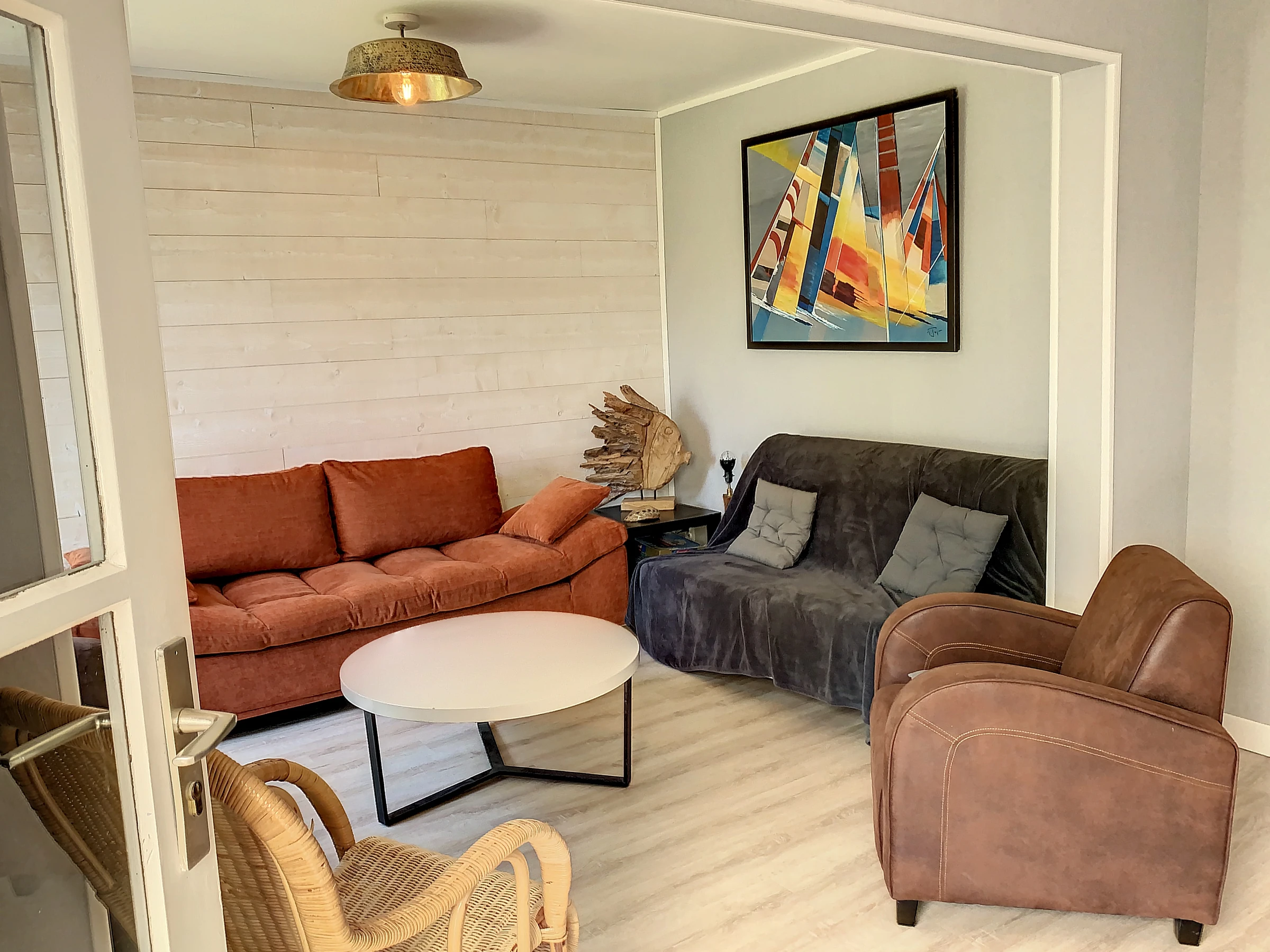 Hay almacenamiento disponible a la entrada. La sala de estar contiene una sala de estar (con TV) que se abre a una cocina totalmente equipada (lavavajillas, horno, microondas, cafetera, hervidor, placa de gas, refrigerador y congelador, freidora de aire y plancha eléctrica). Estas dos habitaciones ofrecen acceso directo a una gran terraza de 26m². En la zona exterior hay una barbacoa y muebles de jardín. Jardín tranquilo, florido y agradable, sin vistas panorámicas.