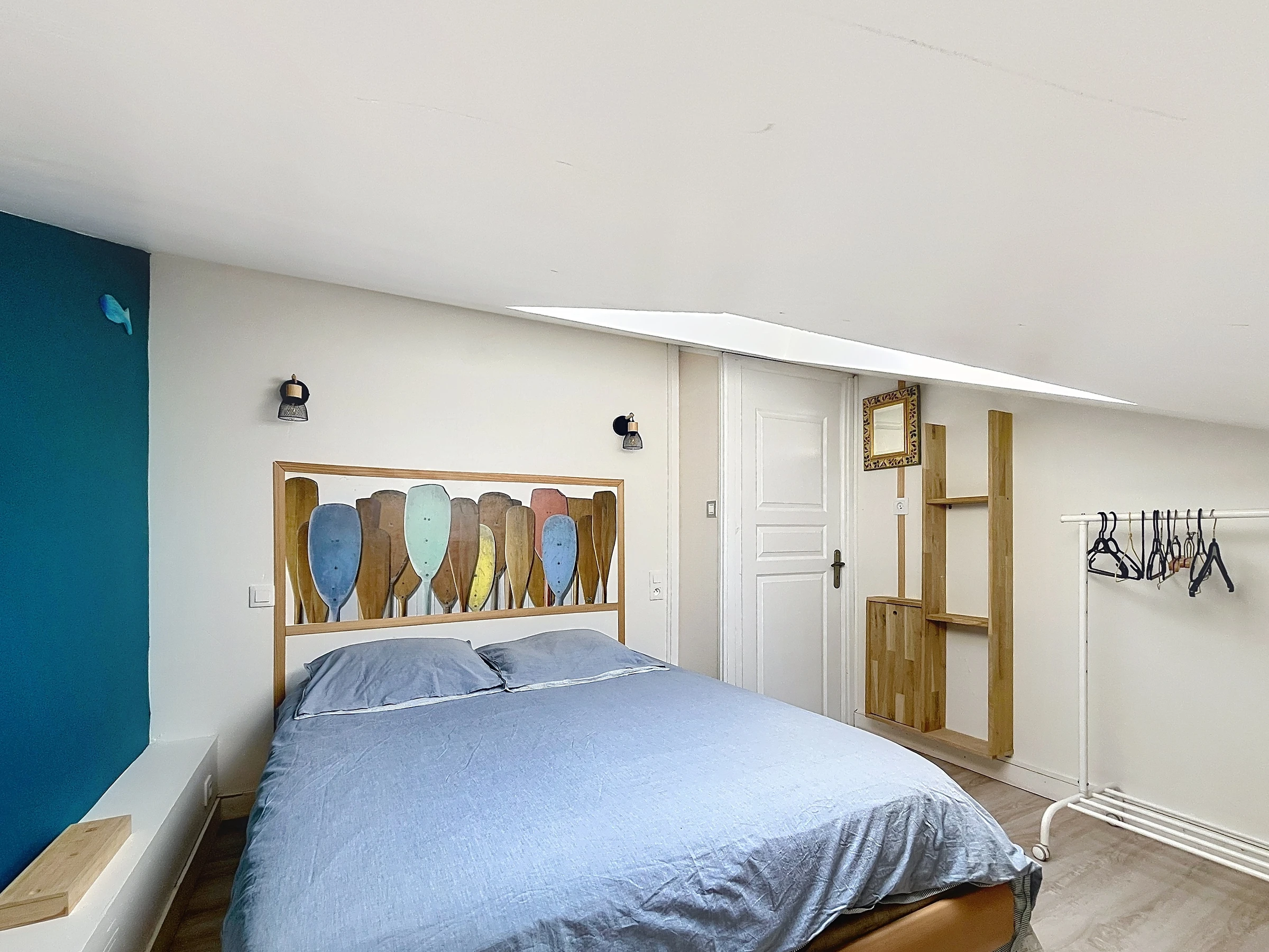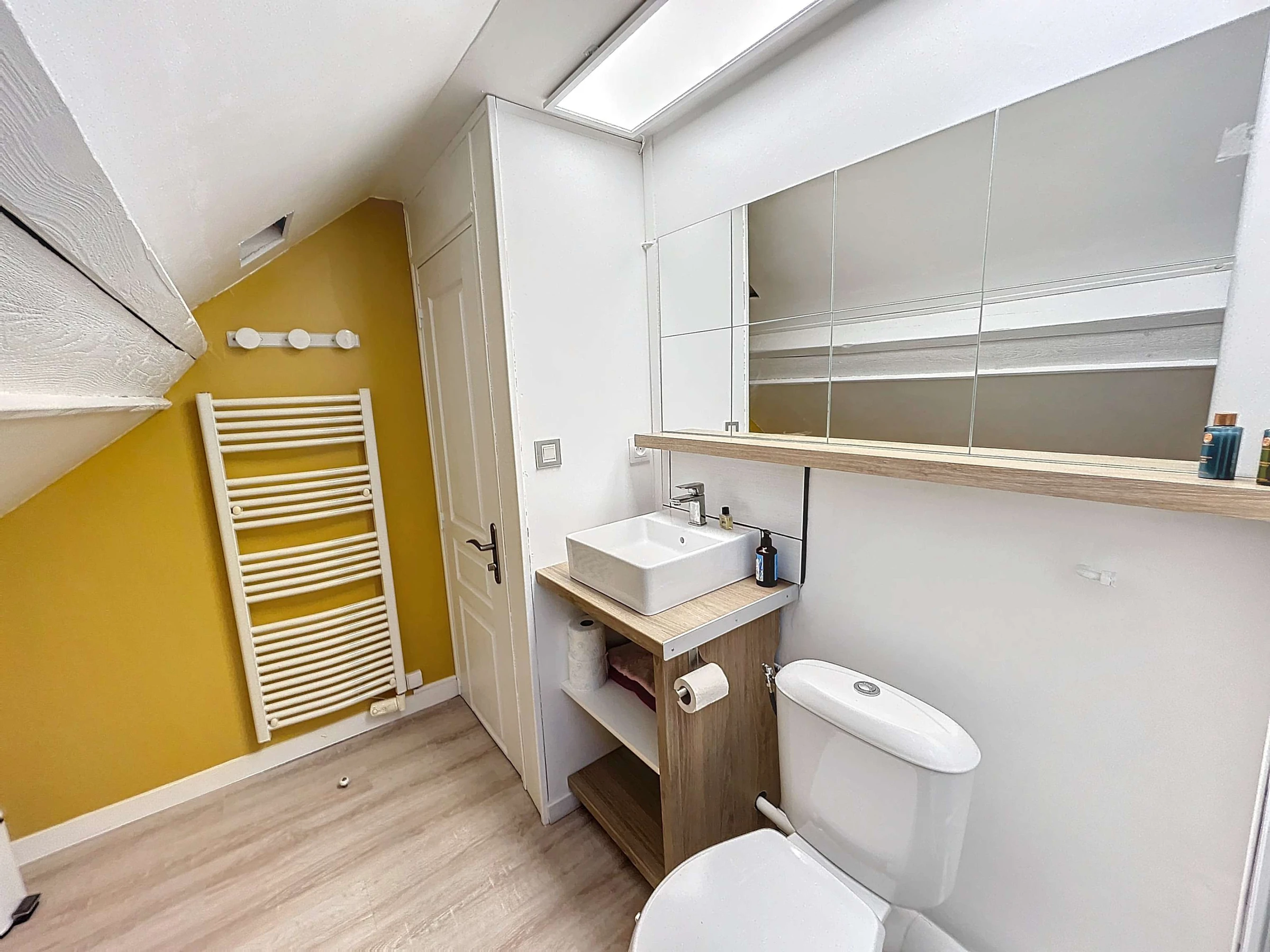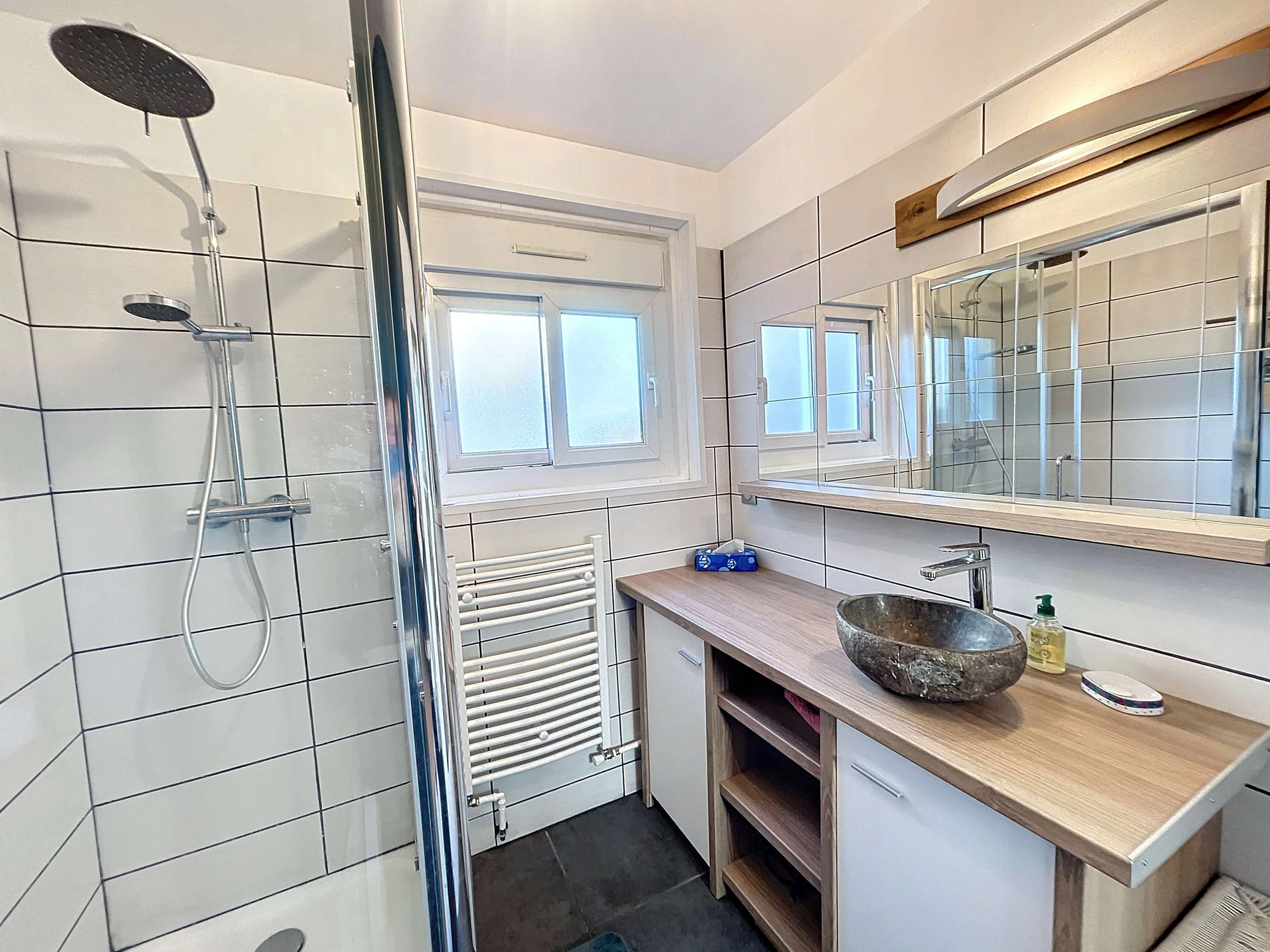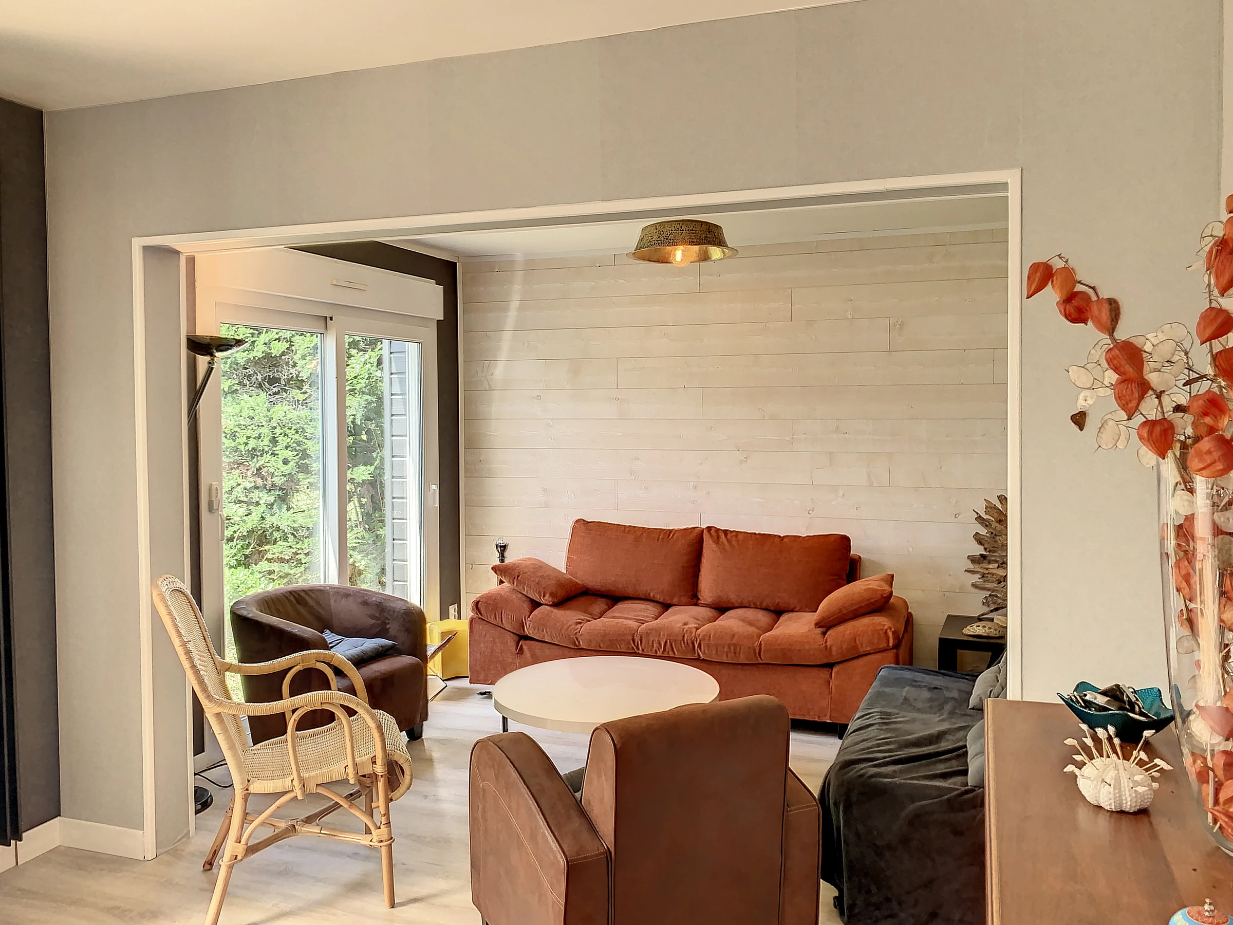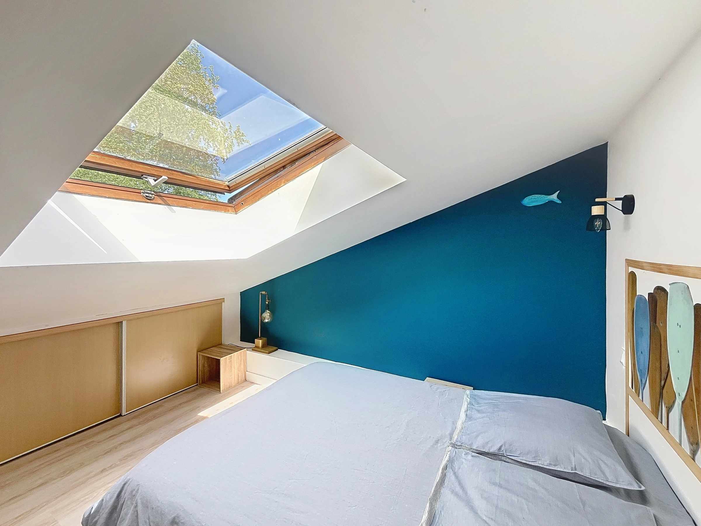 Hay almacenamiento disponible a la entrada. La sala de estar contiene una sala de estar (con TV) que se abre a una cocina totalmente equipada (lavavajillas, horno, microondas, cafetera, hervidor, placa de gas, refrigerador y congelador, freidora de aire y plancha eléctrica). Estas dos habitaciones ofrecen acceso directo a una gran terraza de 26m². En la zona exterior hay una barbacoa y muebles de jardín. Jardín tranquilo, florido y agradable, sin vistas panorámicas.