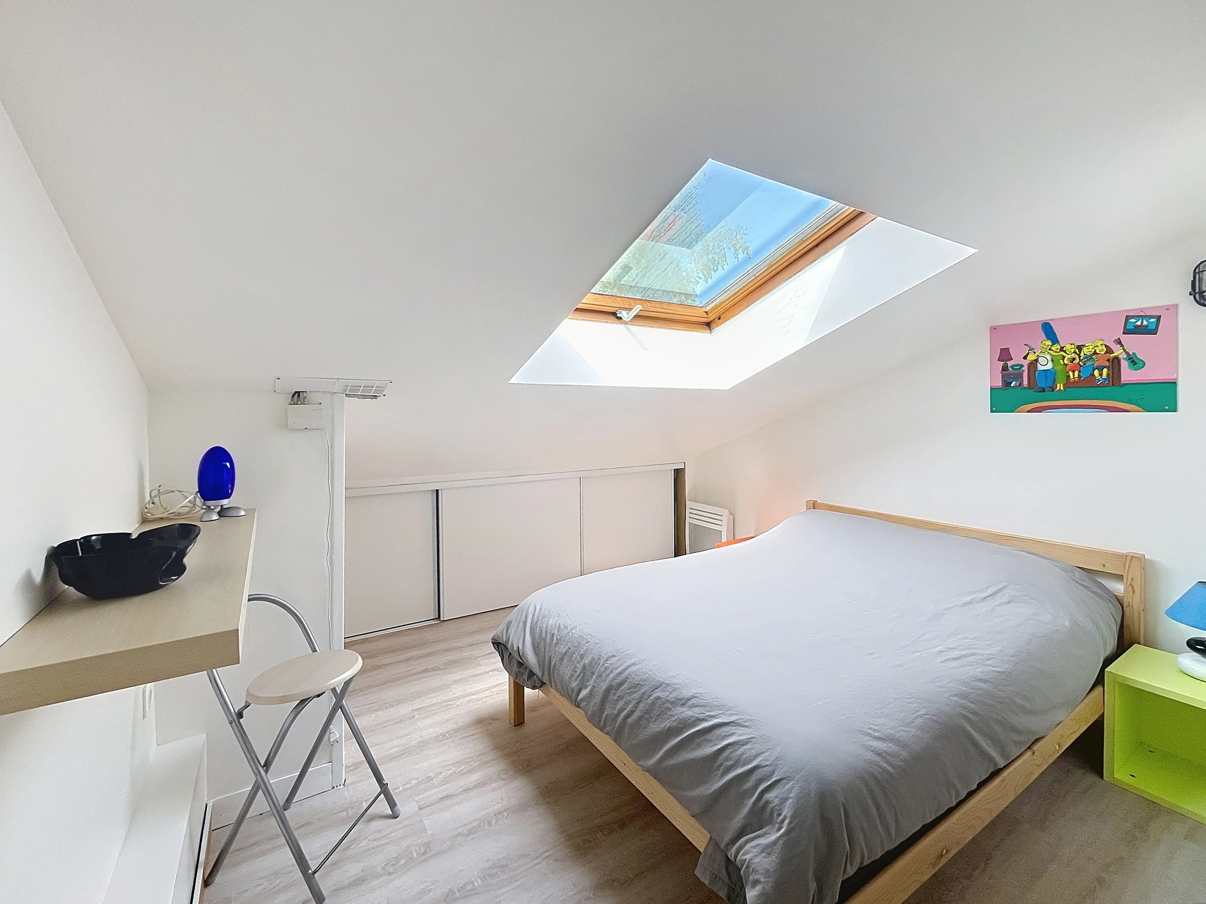 En la planta superior se encuentran dos dormitorios, el primero con cama de matrimonio de 140cm y el segundo con cama de matrimonio de 140cm y cama individual de 90cm (armarios abuhardillados), un segundo baño con lavabo, ducha e inodoro.