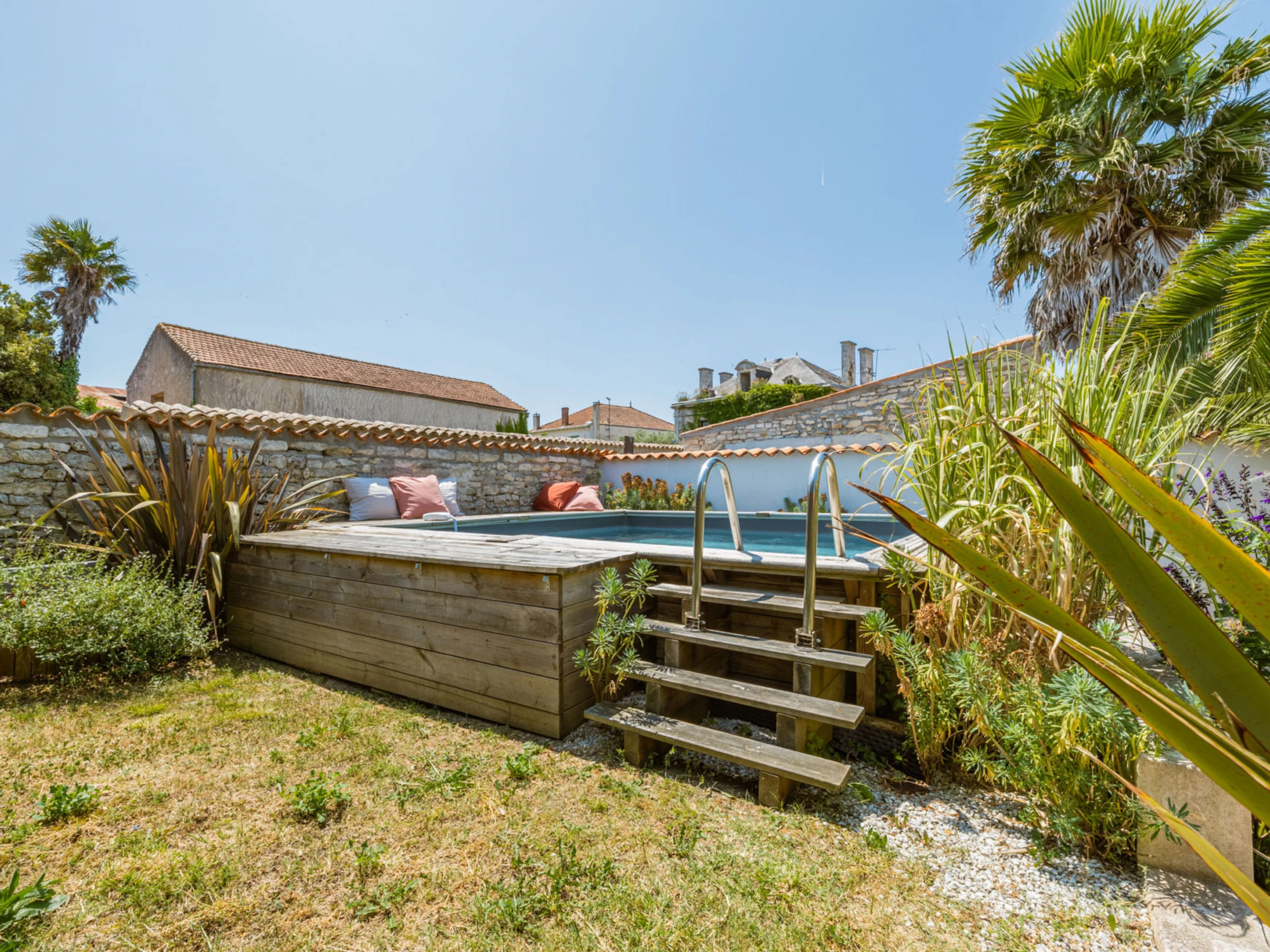 Casa adosada "Le cocon", muy bonita. En el centro de Saint Pierre d'Oléron, lugar céntrico, tranquilo, a 2 km de un bosque, a 5 km del mar, a 5 km de la playa. Privado: jardín pequeño, cuidado (vallado), piscina rectangular (4 x 4 m, 16 m diámetro, Disponible por temporada: [hidden] - [hidden] Aparcamiento junto a la casa. Tienda, tienda de comestibles 50 m, supermercado 1.5 km, restaurante, bar, panadería, café, zona peatonal, alquiler de bicicletas 50 m, parada autobús "Gare routière 17310" 800 m, playa de arena "La Biroire" 5 km. Puerto deportivo 5.8 km, campo de golf (9 hoyos) 10 km, escuela de surf 5 km, escuela de vela 5.8 km. Atracciones en los alrededores: Centre aquatique Iléo 9 km, Phare de Chassiron 16 km, Port de la Cotinière 6 km, Corderie Royale Rochefort 45 km, La Rochelle 77 km.