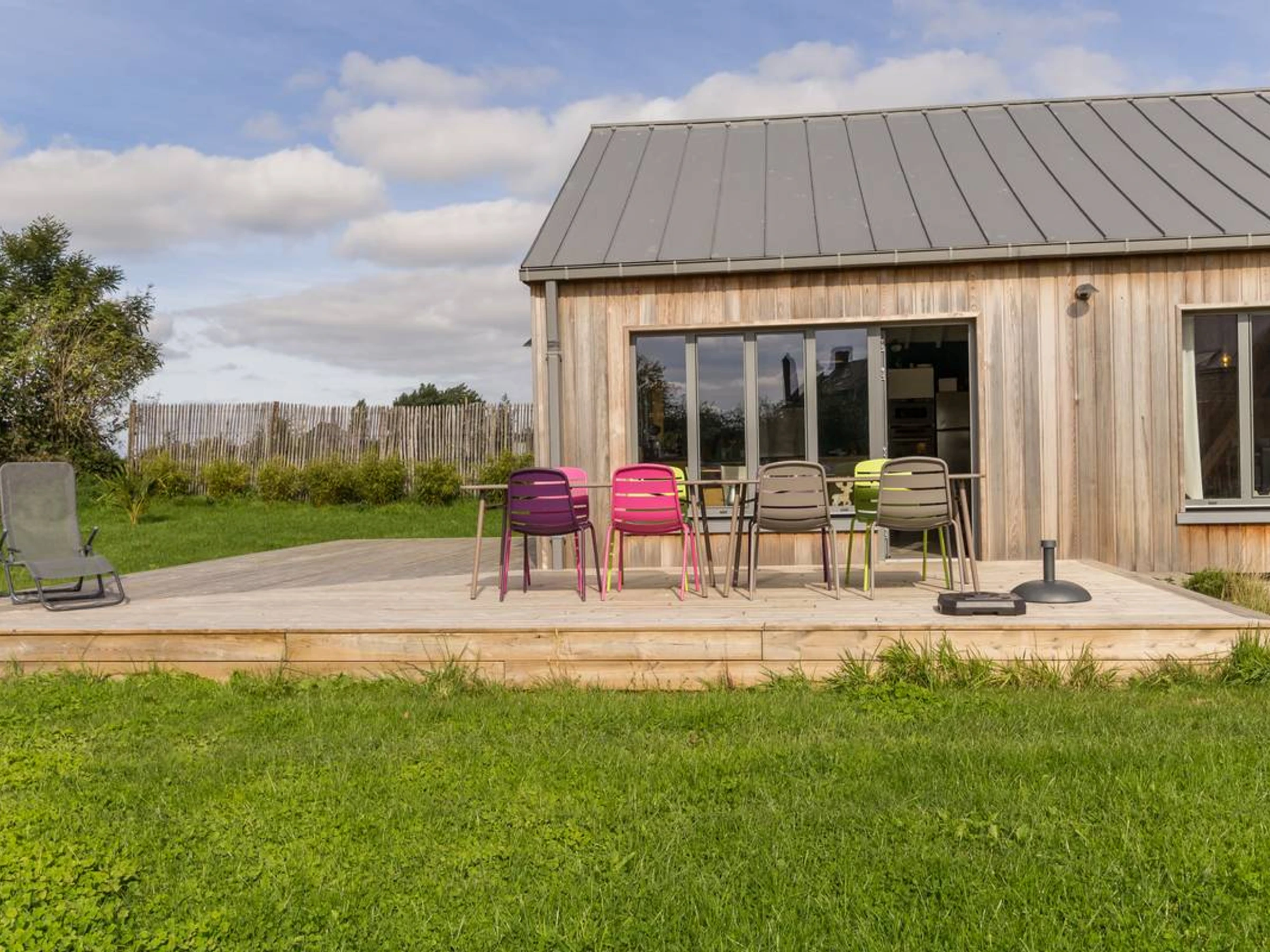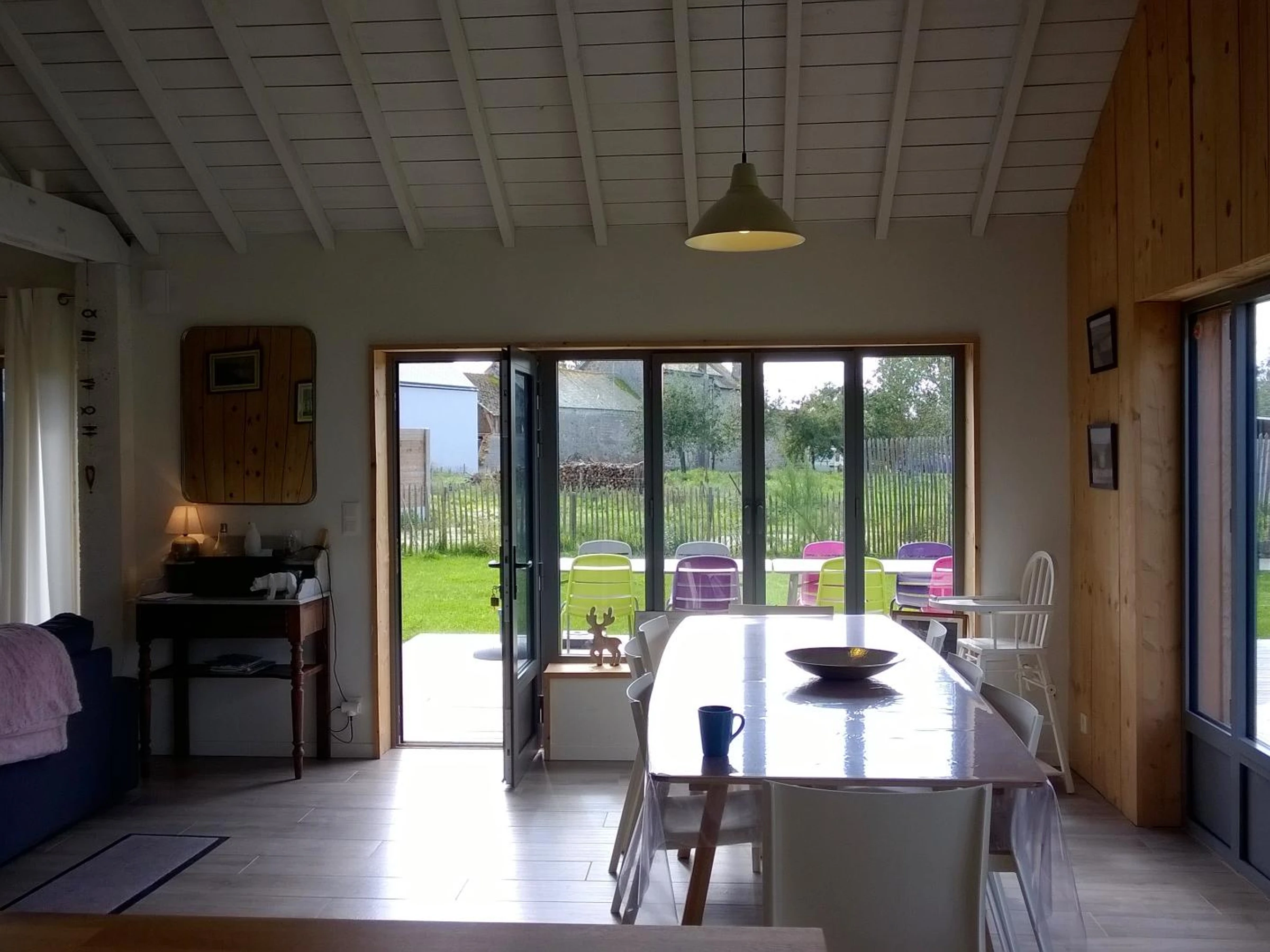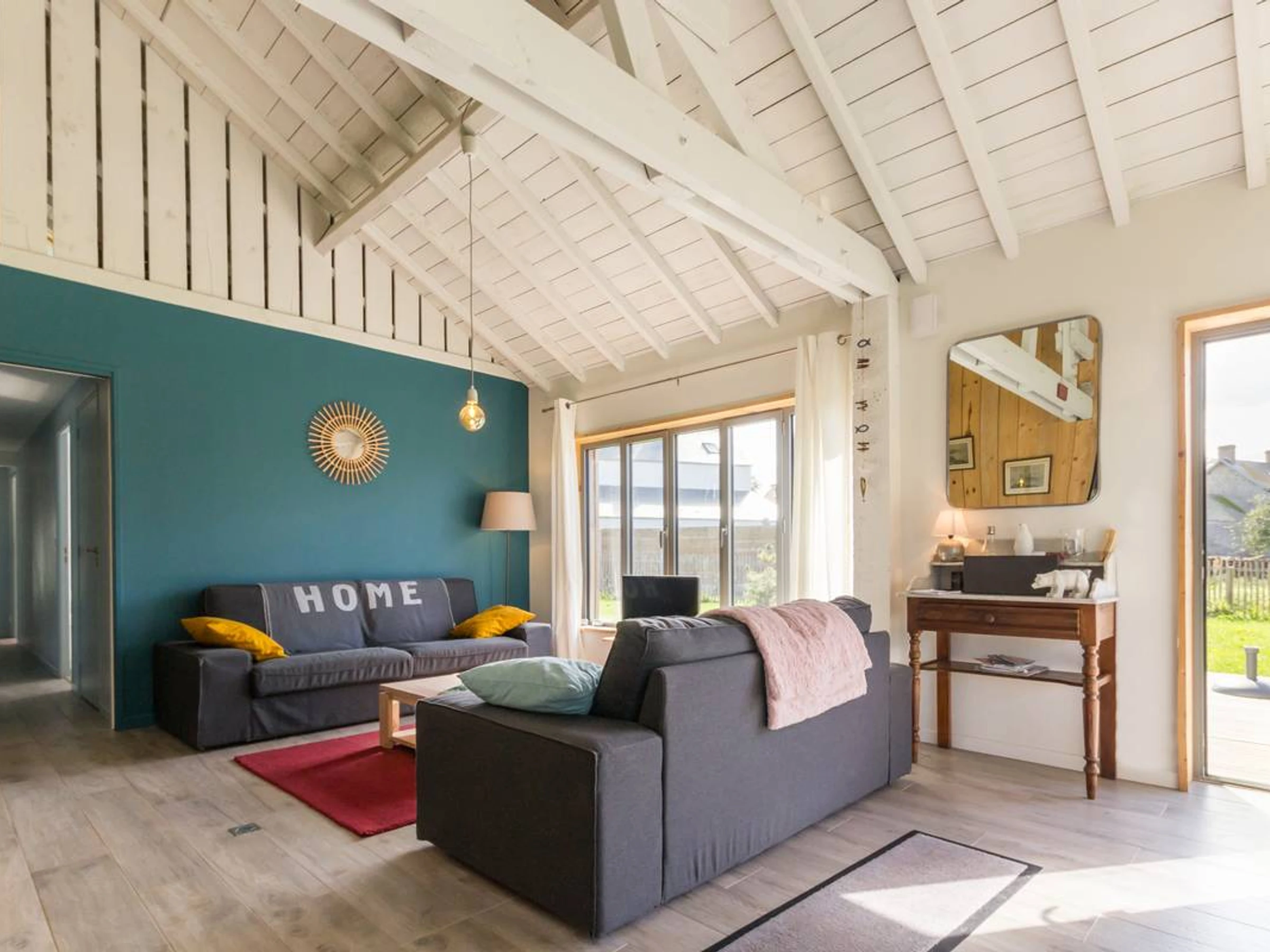 Casa independiente de una sola planta. Salón (TV, wifi, equipo de música) con cocina americana totalmente equipada (horno, placa de inducción, lavavajillas, frigorífico con congelador, microondas, cafetera exprés). Lavadero (lavadora, secadora). Dormitorio 1 (cama de matrimonio) con baño en suite. Dormitorio 2 (cama de matrimonio). Dormitorio 3 (cama doble). Dormitorio 4 (dos camas nido individuales). Baño compartido para los dormitorios 3 y 4. Baño. Dos aseos. Equipamiento para bebés. Ropa de cama y toallas incluidas para estancias de al menos una semana; de lo contrario, se pueden alquilar. Calefacción (bomba de calor) incluida. Todos los suministros incluidos. Servicio de limpieza disponible con suplemento. Jardín privado. Terraza de madera. Mobiliario de jardín. Barbacoa. Tumbonas. Lavadero. Aparcamiento privado. Esta casa, situada a solo 200 metros del mar, ha sido reformada con un estilo contemporáneo y de gran belleza. El luminoso salón diáfano (no menos de 45 m²), con su techo de cristal, es ideal para reuniones con familiares y amigos. La casa es muy funcional, con baños bien distribuidos y todas las habitaciones a nivel del jardín. Rodeada de una agradable zona verde, esta propiedad se encuentra muy cerca del sendero costero, ofreciendo fácil acceso a hermosas rutas de senderismo con impresionantes vistas y la luz siempre cambiante de este rincón de la península de Cotentin.