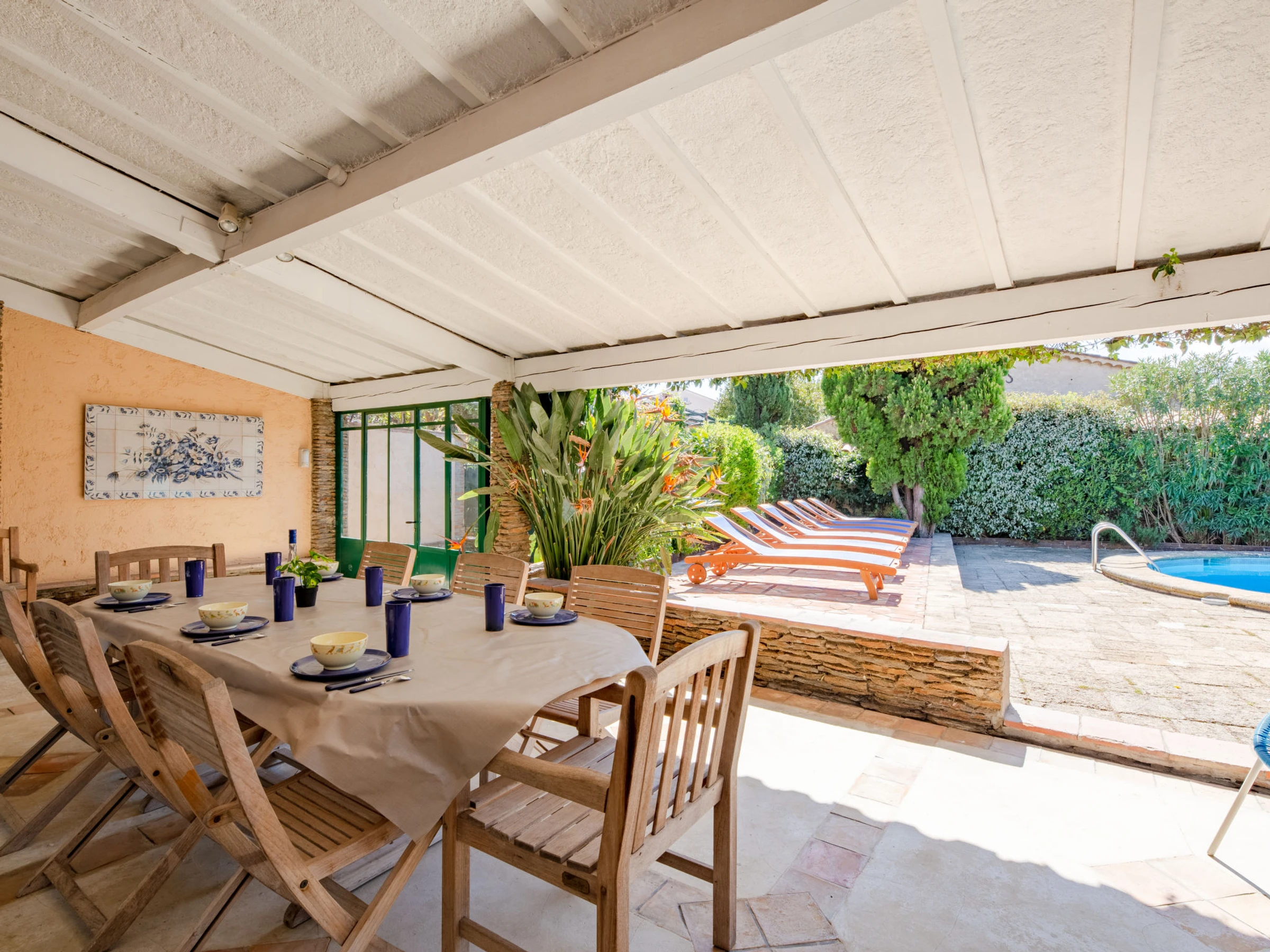 Casa adosada "Villa Cyrnos", bonita, muy confortable. En el centro de Sainte Maxime, excelente situación: muy céntrica pero tranquila, en el corazón de la ciudad, zona con poco tráfico, a 500 m del mar, a 500 m de la playa. Privado: jardín 450 m2 (vallado) plantas, piscina (12 x 6 m, 240 - 260 cm de profundidad, Disponible por temporada: [hidden] - [hidden] Ducha exterior, barbacoa. En el inmueble: gimnasio. Aparcamiento junto a la casa. Tienda, tienda de comestibles, supermercado, panadería 200 m, parada autobús 350 m, playa de arena "Centre Ville" 500 m. Puerto deportivo 500 m, campo de golf (18 hoyos) 4 km, tenis 2 km. Atracciones en los alrededores: Aqualand 2.5 km.