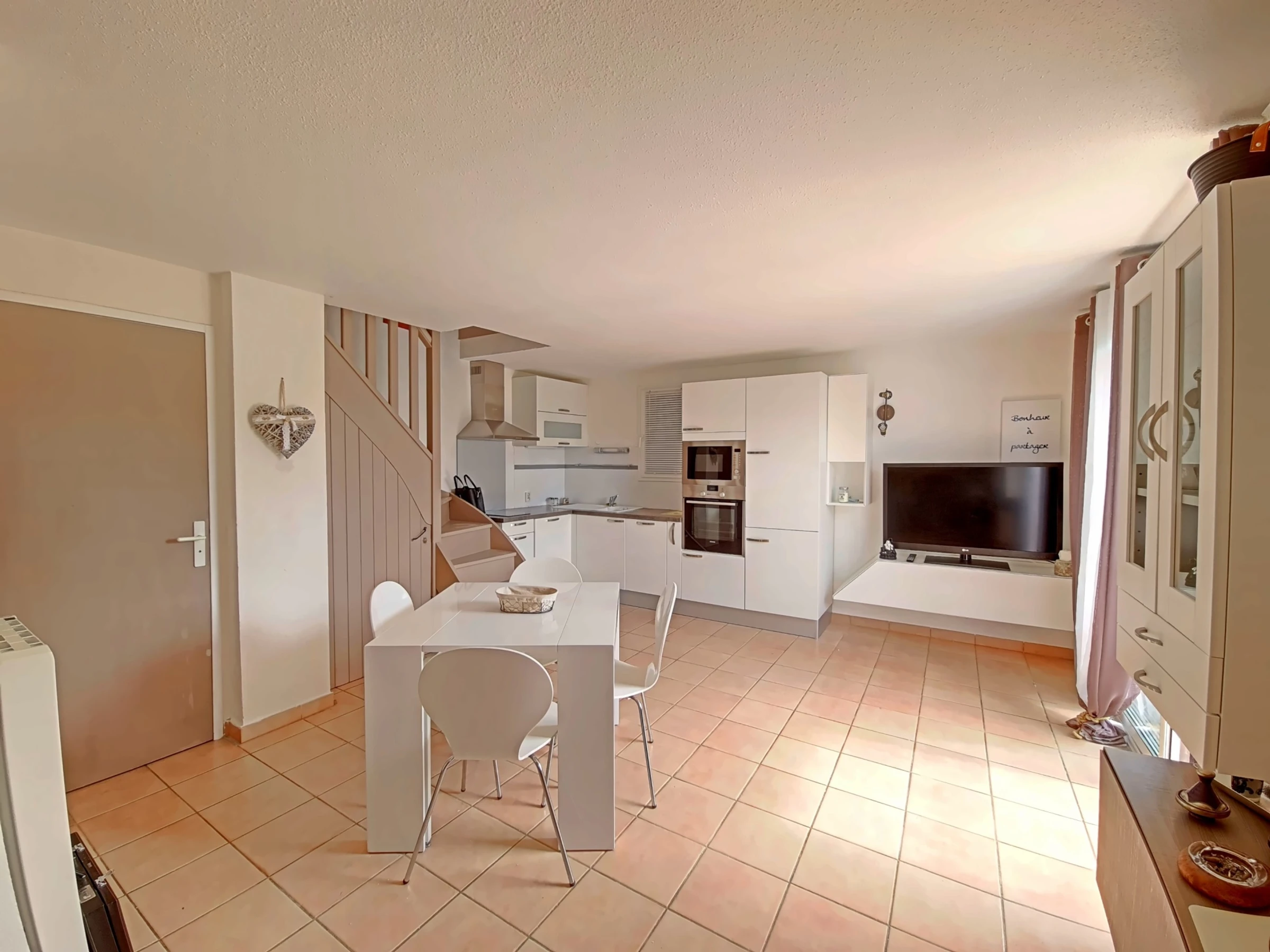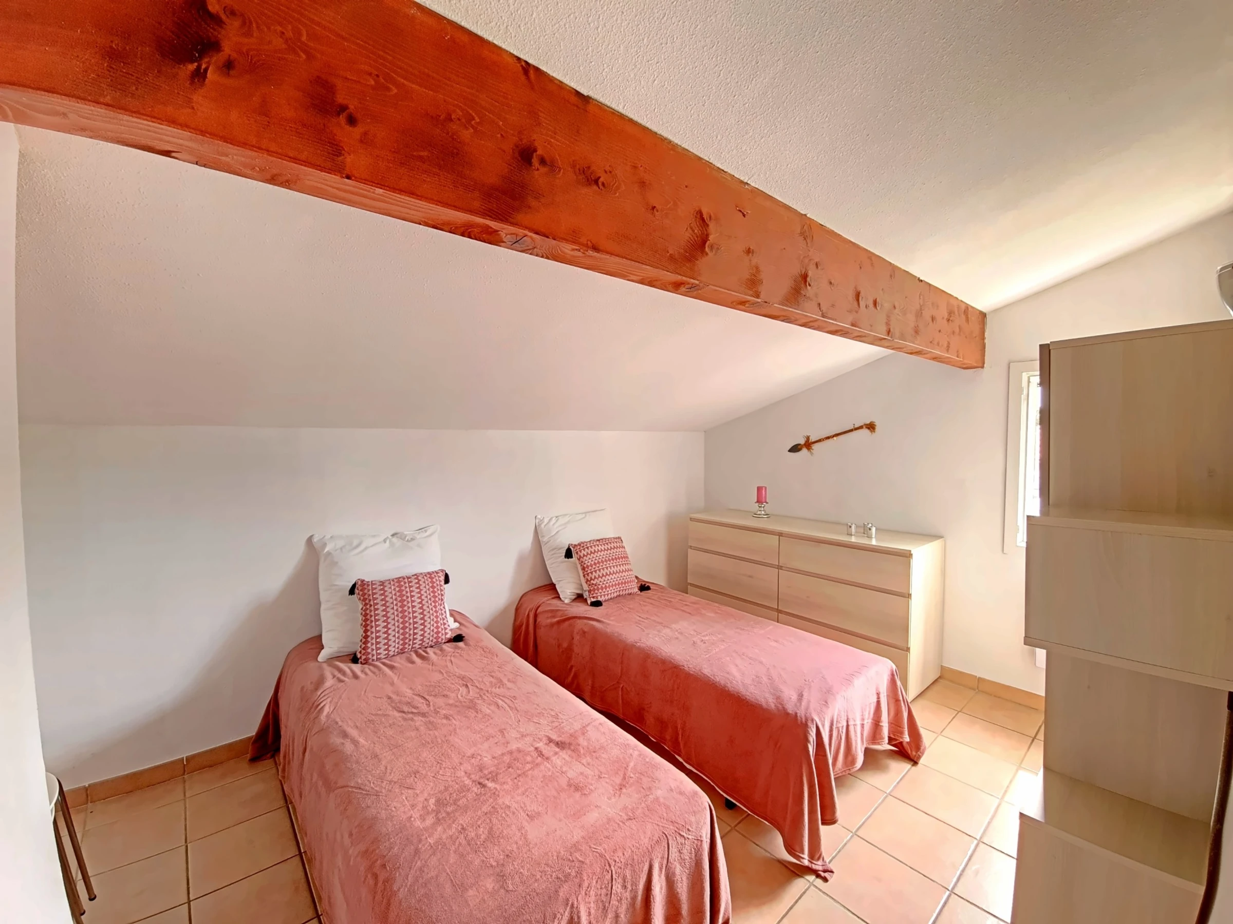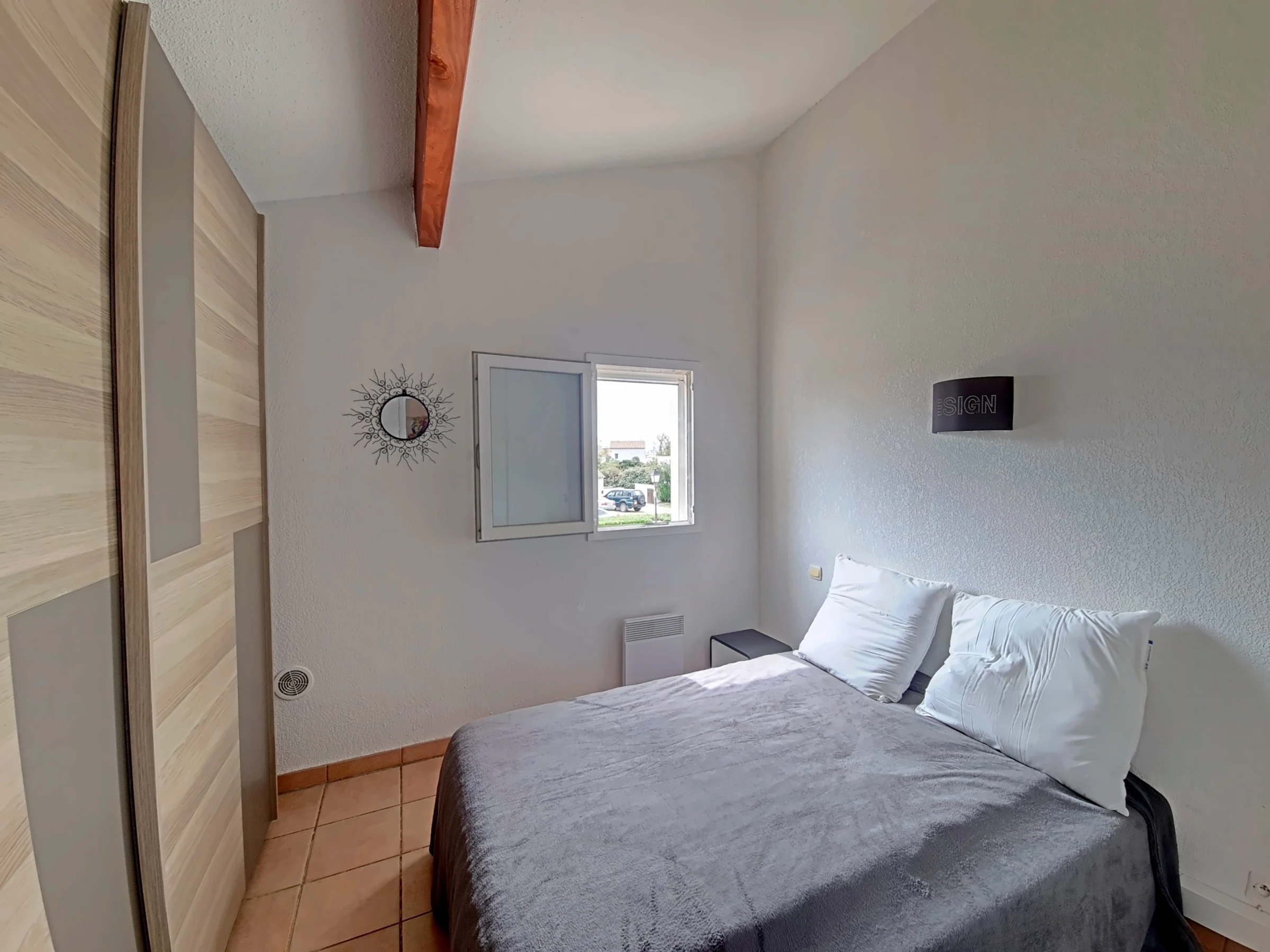 Casa a la entrada del pueblo, route de Cacharel, en la residencia Les Manadiers con piscina colectiva (abierta del 1 de junio al 30 de septiembre). Esta casa de 50 m² de superficie habitable incluye en la planta baja un gran patio privado con muebles de jardín, tumbonas, un salón-comedor con cocina abierta equipada, un baño, un lavadero, arriba un dormitorio con 2 camas, una plaza y un dormitorio con cama de matrimonio, un aseo. La casa tiene aire acondicionado en el salón y dispone de plaza de aparcamiento.