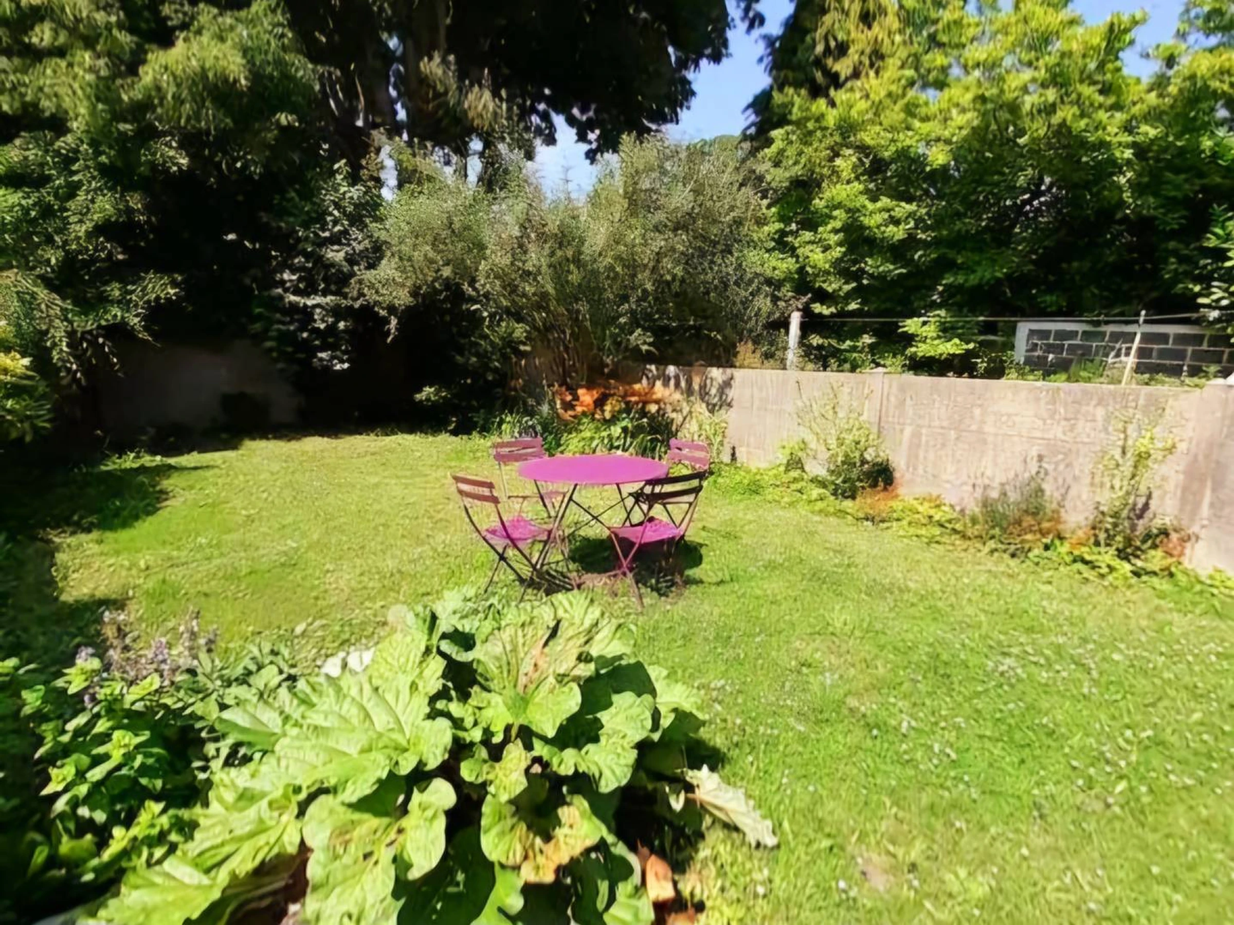 Y luego está esta sorpresa: bajando unos escalones se accede a un jardín situado en la parte trasera de la casa. Oculto a la vista, se convierte en tu remanso de paz. Imagínese sentado cómodamente en el mobiliario de jardín, arrullado por el canto de los pájaros.