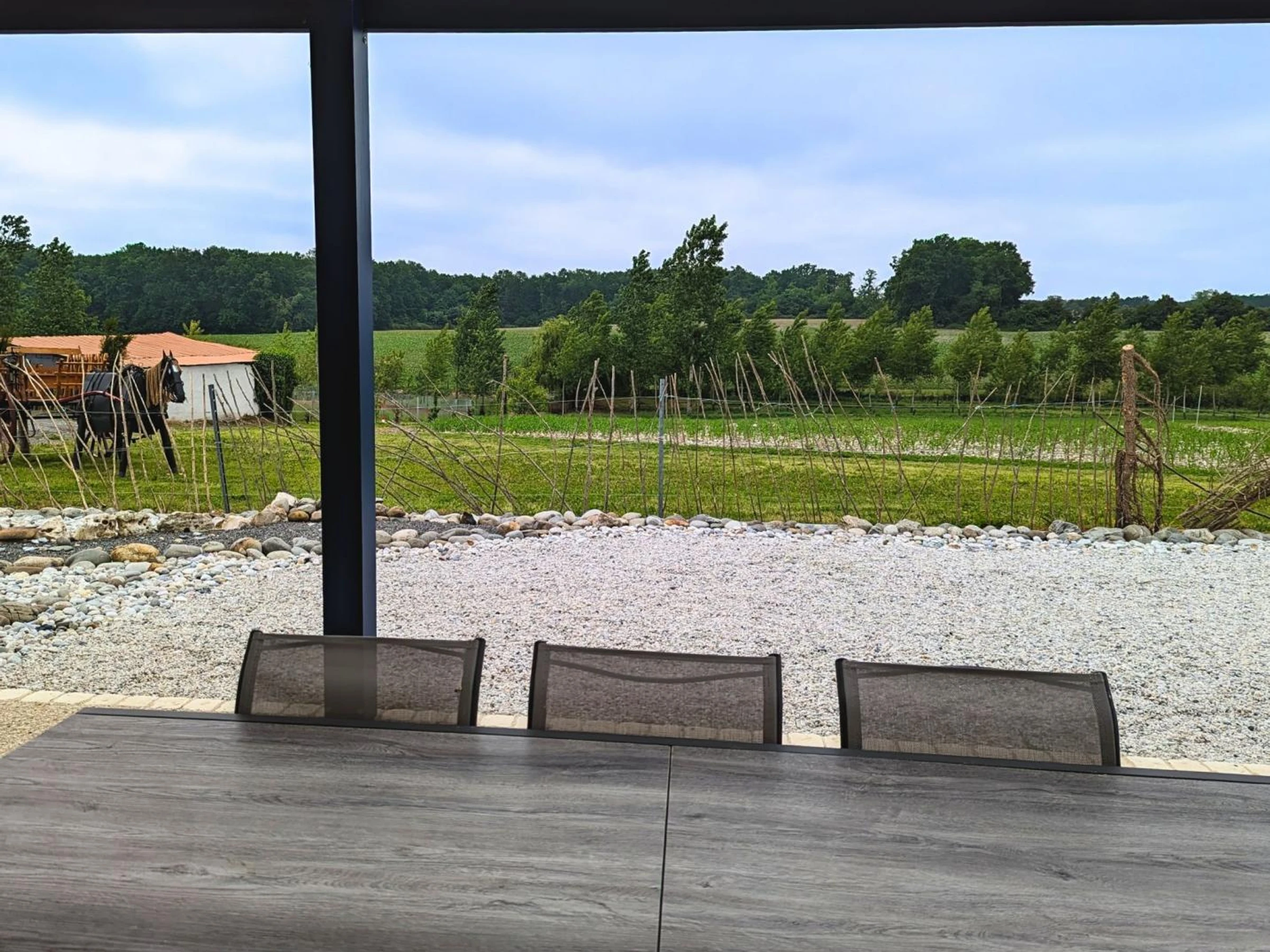 Espacio privado de 500 m², terraza con pérgola bioclimática de 100 m², piscina privada elevada (4x6 m, 30 m³, 1,30 m de profundidad, abierta del 1 de junio al 30 de septiembre). Plancha. Aparcamiento.