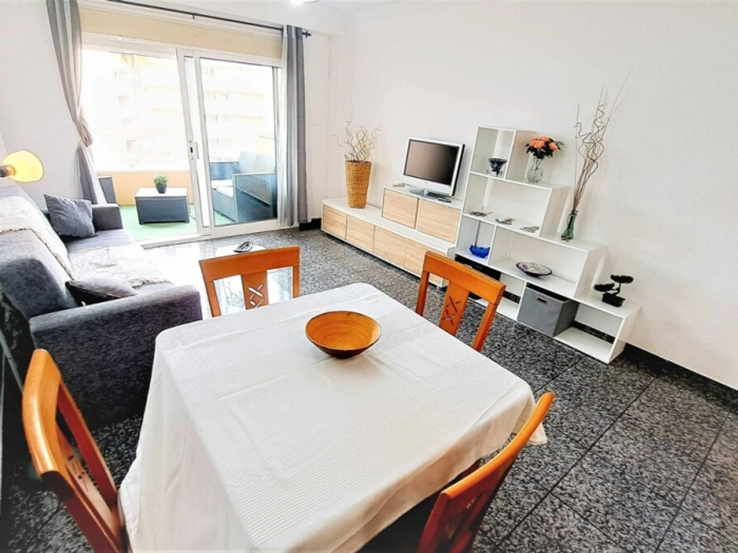 2 dormitorios dobles, salón con cocina americana, 1 baño, terraza. Sin piscina. Situado a pie de calle peatonal y a 350 metros de la playa. 2 dormitorios dobles, con armarios. Salón-comedor, con aire acondicionado. Cocina americana. Lavadero aparte. Cuarto de baño con plato de ducha. Terraza con vistas a espacios verdes. Wi-fi. Ascensor. Zona con transporte público, comercios, tiendas y restaurantes (supermercado cruzando la acera). Ideal para familias. Sábanas, toallas y limpieza final incluidas. Cuna bajo petición: 10 € por día.Mascota, bajo petición: 40 € (toda la estancia).Tasas turísticas: 1,10 €/ noche / persona mayor de 16 años (durante las primeras 7 noches).