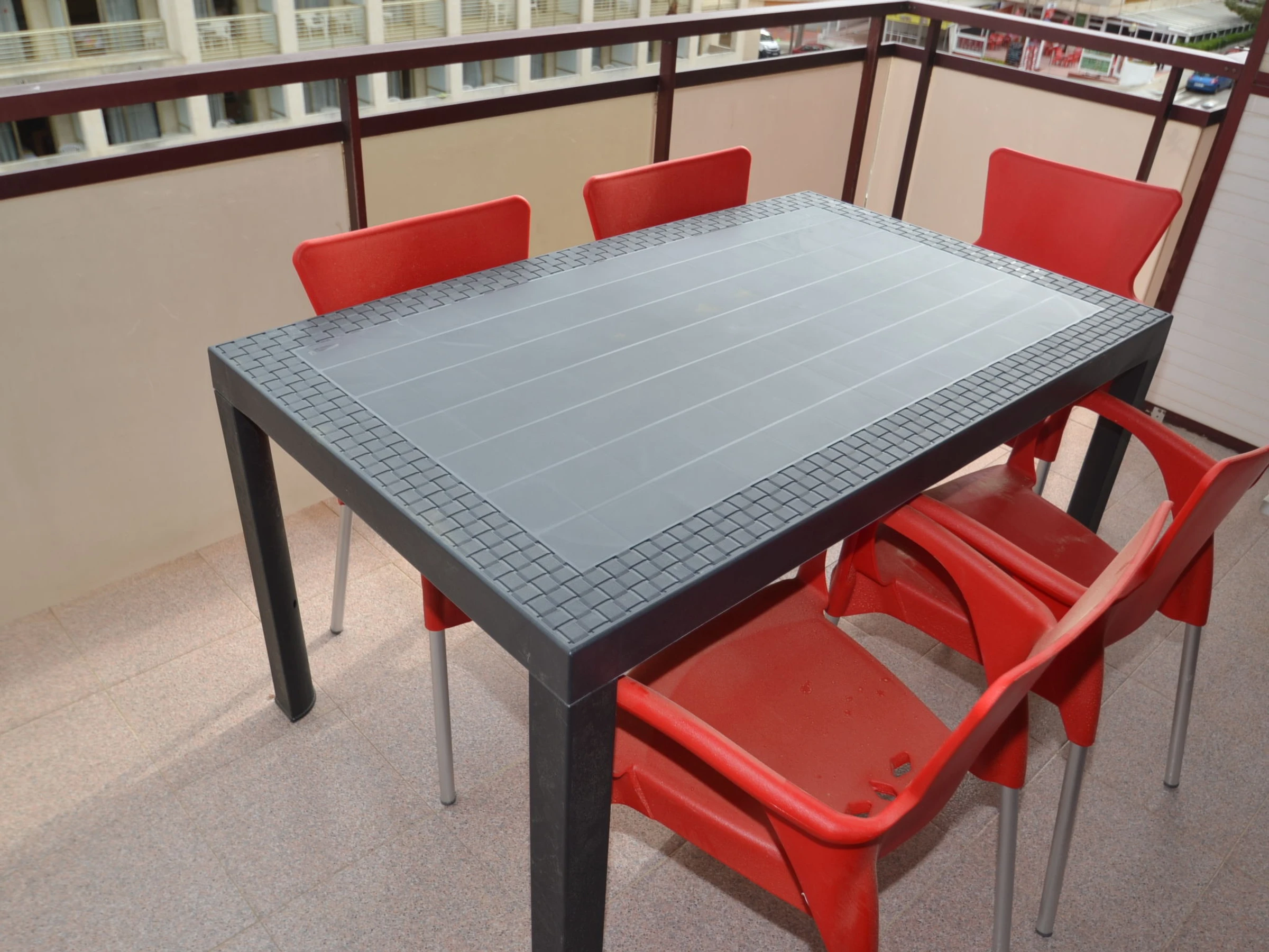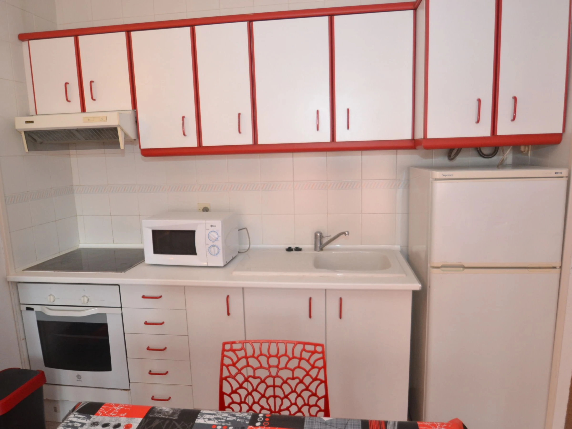 Apartamento de 2 estancias 44 m2 en el 4° piso. Con mobiliario funcional: salón-comedor con 1 sofá-cama (135 cm, 190 cm de longitud), TV satélite (pantalla plana). Salida a la terraza. 1 dorm. con 2 camas (90 cm, 190 cm de longitud). Cocina abierta (horno, 4 placas de vitrocerámica, tostadora, hervidor de agua eléctrico, microondas, cafetera eléctrica). Ducha/WC. Ningún tipo de calefacción. Terraza. Muebles de terraza. El alojamiento dispone de: lavadora, plancha, secador de pelo. Internet (Wifi, gratis). [hidden]
