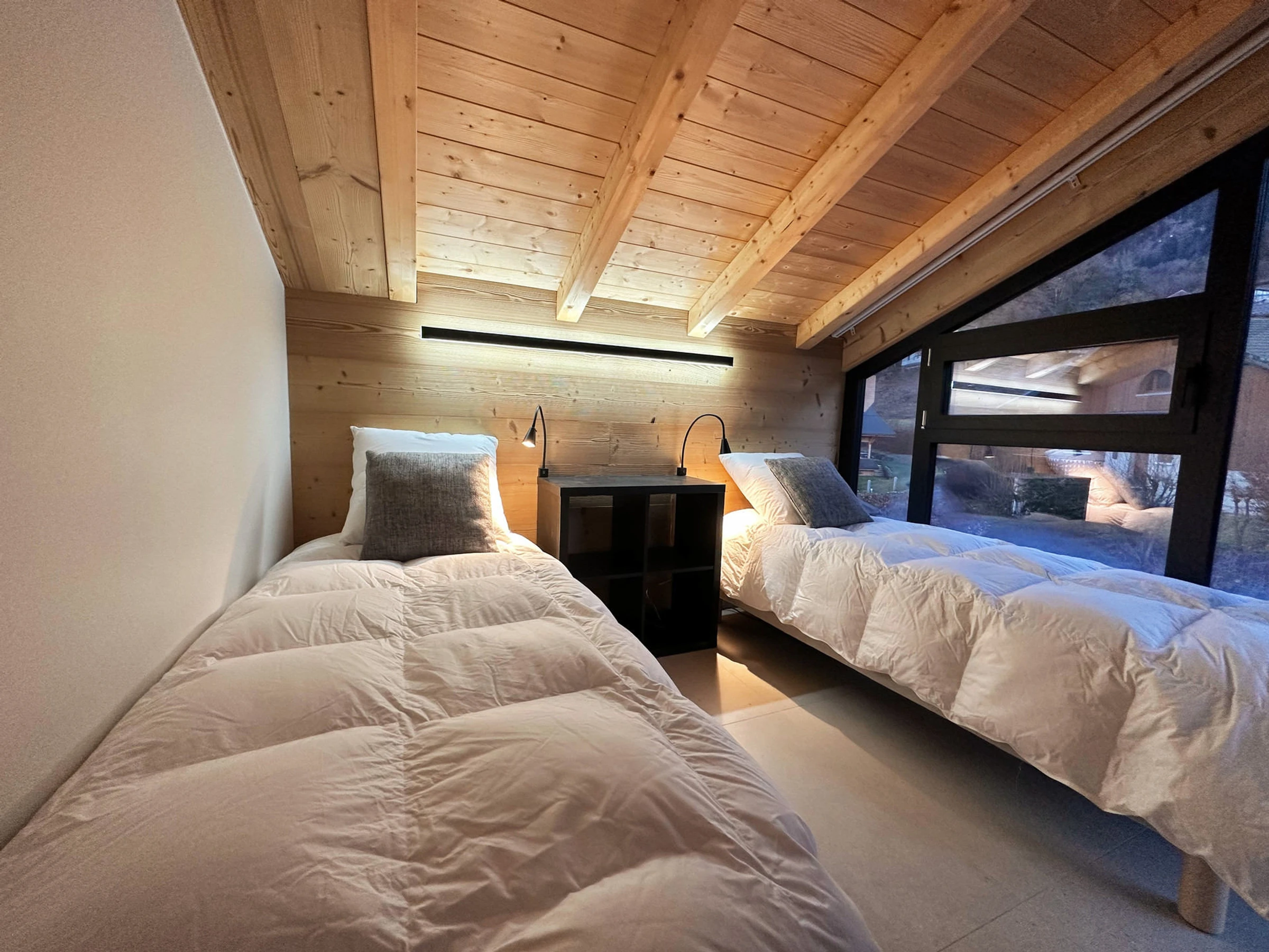 Un dormitorio con dos camas individuales de 80x190 (que se pueden pegar o separar).