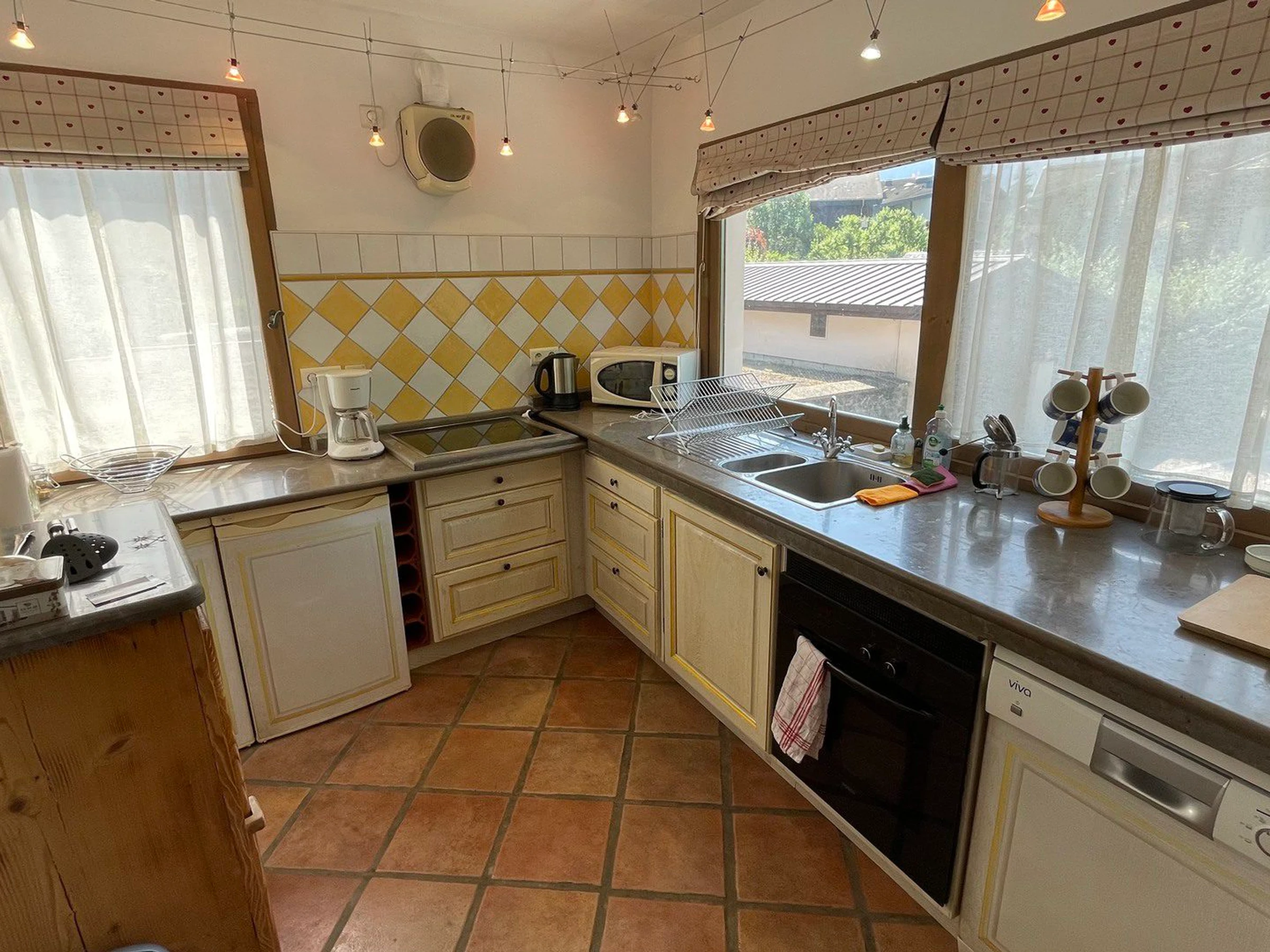 - Una cocina totalmente equipada (orientada al sureste) muy luminosa, con otro frigorífico y congelador, horno, lavavajillas, microondas y vitrocerámica.
