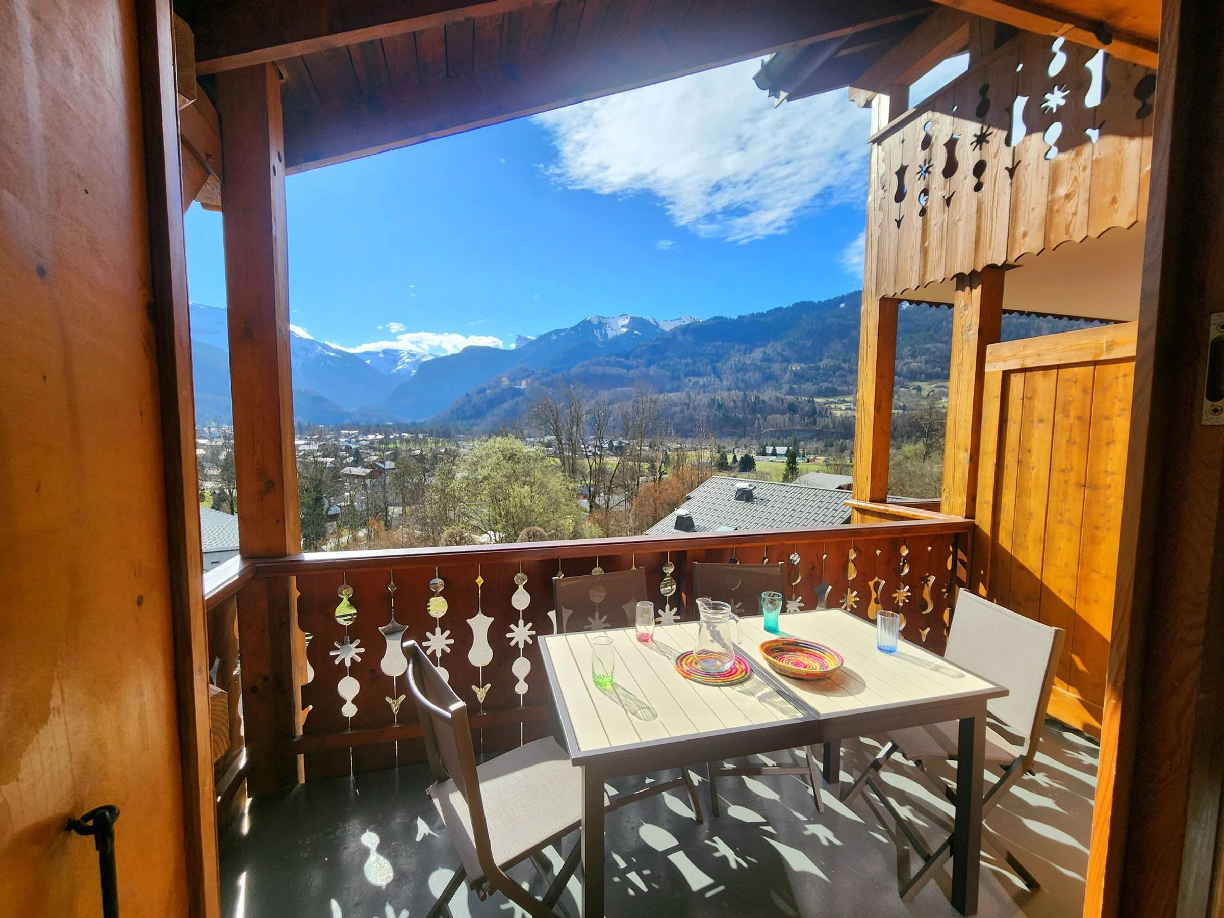 - Balcón orientado al sur con muebles de jardín - vista a la montaña y al pueblo