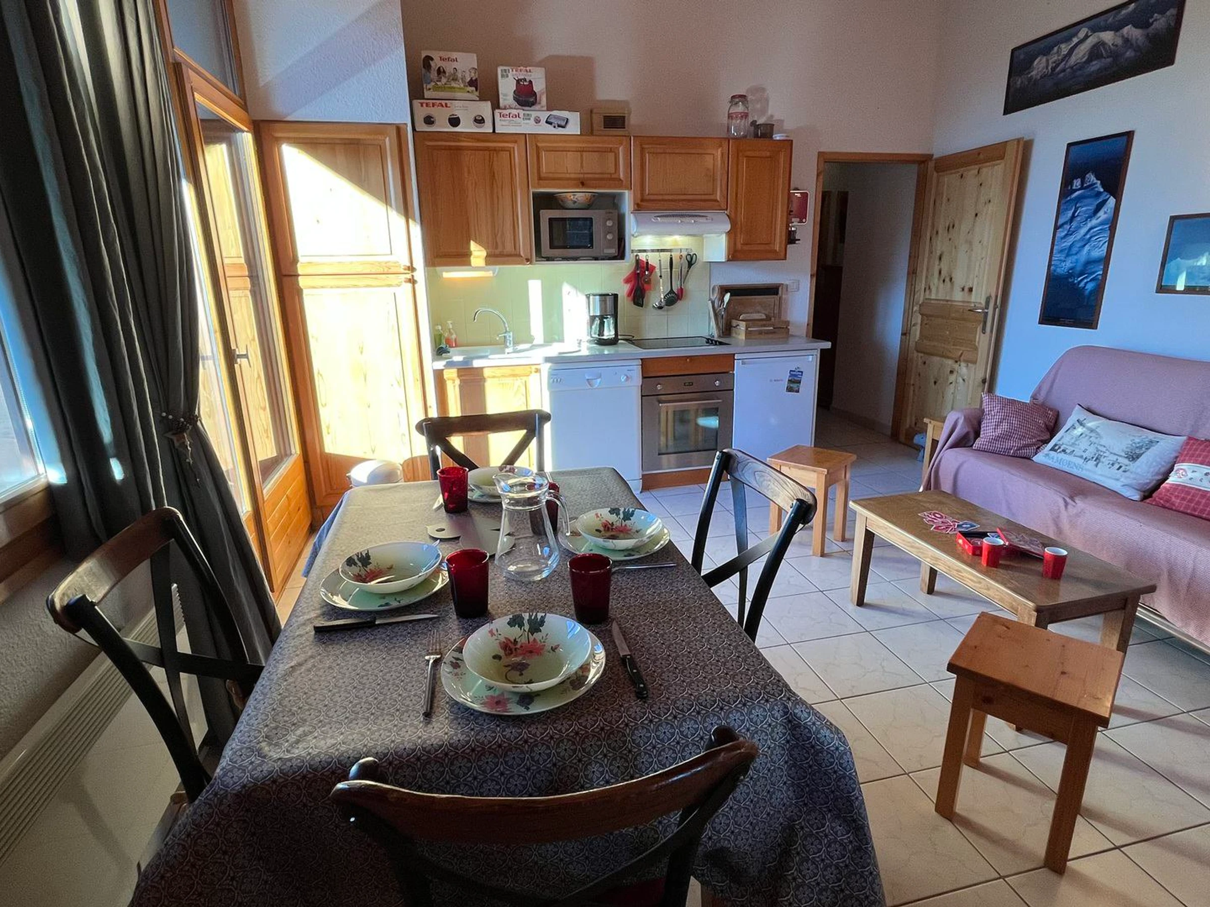 - Salón/cocina totalmente equipada (orientada al suroeste): 1 sofá cama, TV, zona de comedor con internet, horno tradicional, vitrocerámica, microondas, extractor, nevera, lavavajillas, cafetera de filtro, hervidor, tostadora, set de raclette y fondue, barbacoa eléctrica y juegos de mesa