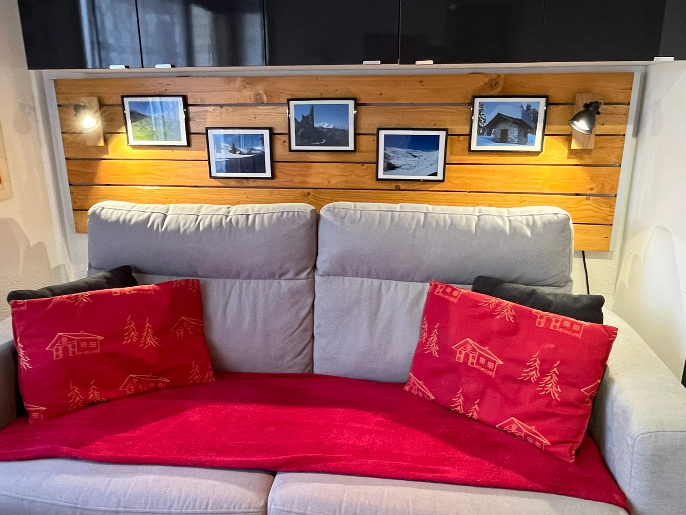 - Un salón (9,80 m², 1 ventanal, orientado al noreste, con vistas a la montaña): Sofá cama, TV TNT;