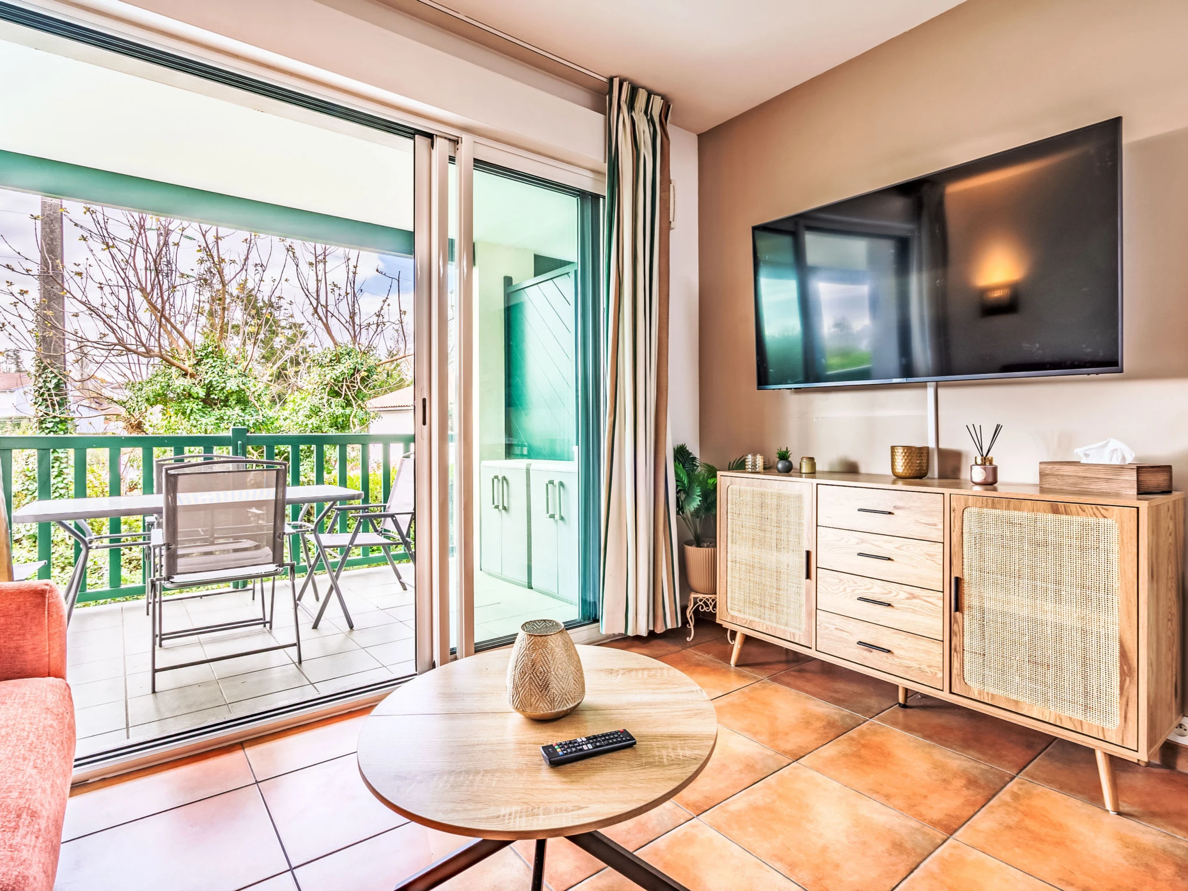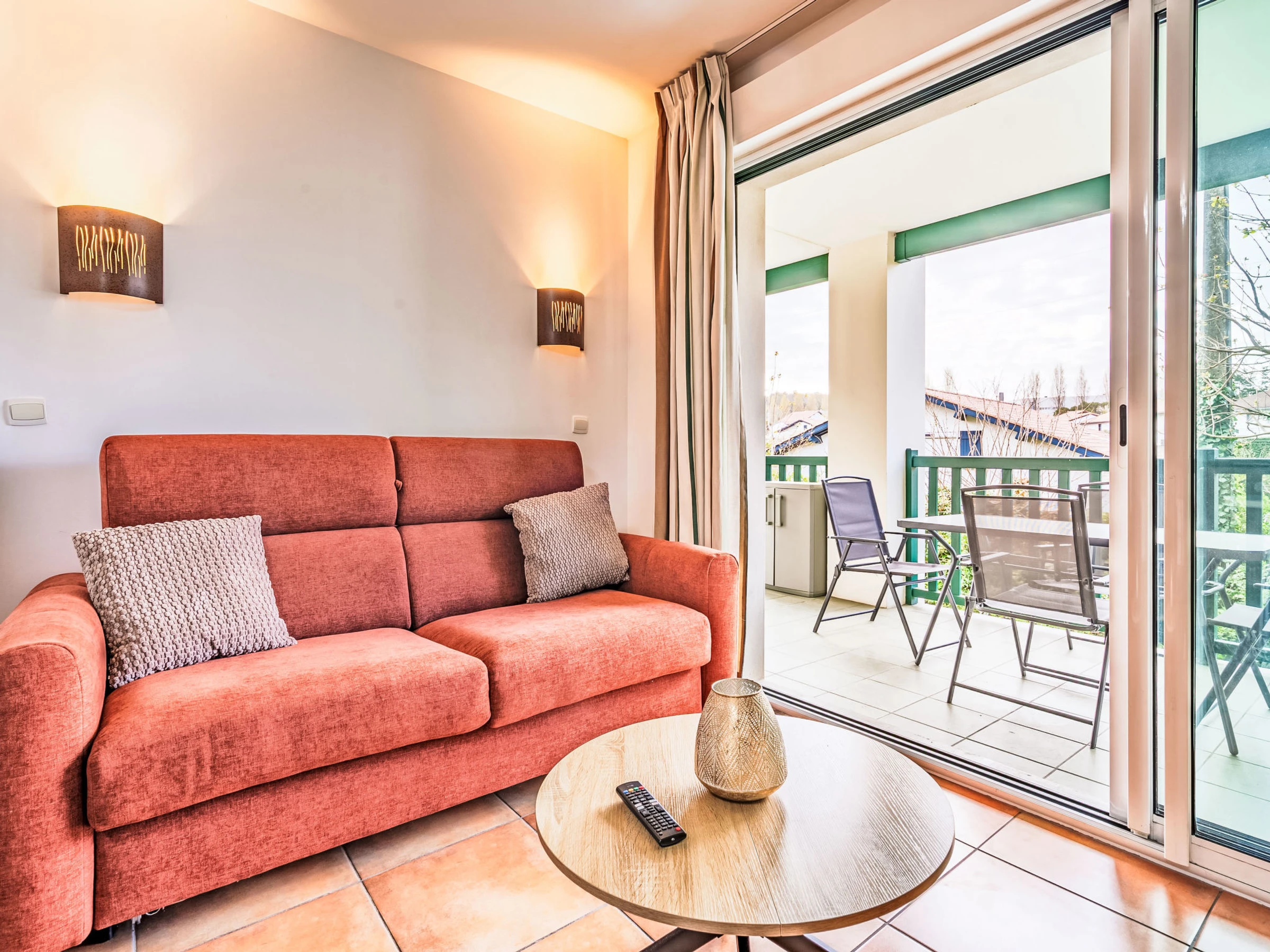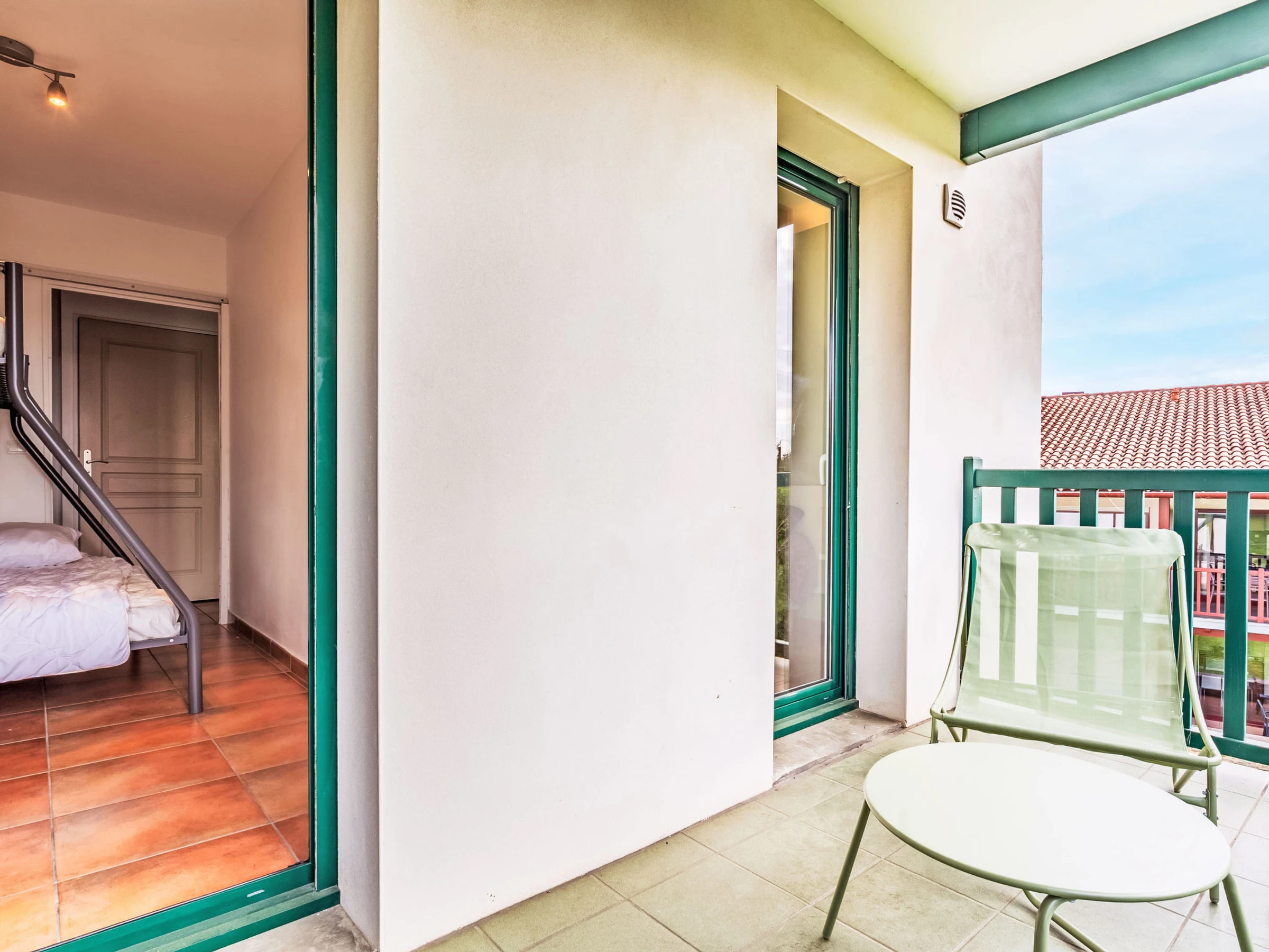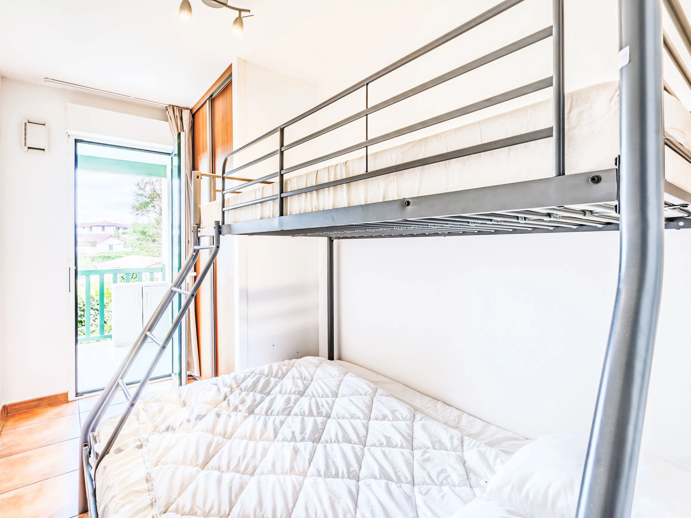 "Domaine Hamaika", apartamento de 3 estancias 45 m2. Con mobiliario confortable y bonito: salón-comedor con 1 sofá-cama doble (140 cm, 190 cm de longitud), TV (pantalla plana). 1 dorm. con 1 cama de matrimonio (1 x 160 cm, 200 cm de longitud). 1 dorm. con 1 cama (140 cm, 200 cm de longitud), 1 x 1 literas (90 cm, 190 cm de longitud). Cocina abierta (lavavajillas, 3 placas de vitrocerámica, tostadora, hervidor de agua eléctrico, microondas, cafetera eléctrica). Baño, WC separado. Calefacción eléctrica. Terraza 17 m2. Muebles de terraza. Vista al jardín. El alojamiento dispone de: lavadora, plancha, secador de pelo. Internet (Wifi, gratis). Plaza de aparcamiento (cubierto). A tener en cuenta: detector de humo. Oferta de un particular según el art. 155, IV del CGI. [hidden]