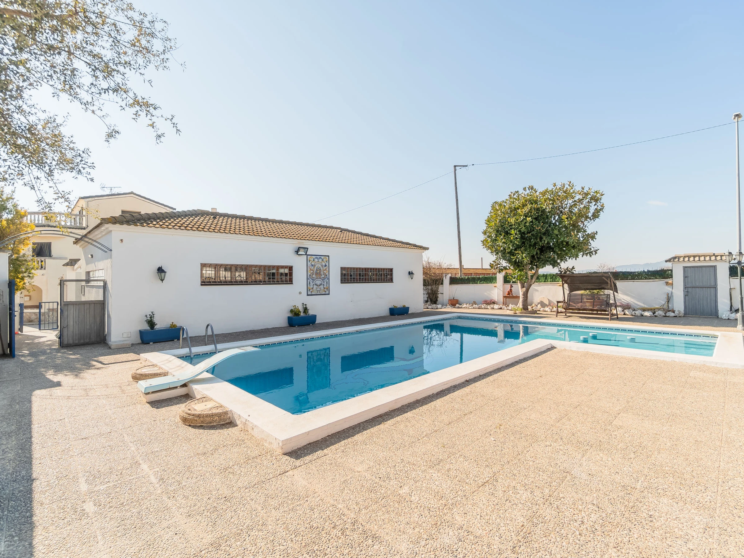 La piscina se encuentra a 50 metros de la casa en una zona separada e independiente. Hay que cruzar una calle. Casa unifamiliar. Lugar tranquilo. Privado: terreno (vallada), piscina (10 x 5 m, 140 - 200 cm de profundidad, Disponible por temporada: [hidden] - [hidden] Ducha/WC en zona de piscina, piscina para niños, terraza, muebles de jardín, barbacoa, posibilidad de aparcamiento en la calle. Supermercado 2.6 km, restaurante 2.5 km, bar 250 m, piscina 15 m. Atracciones en los alrededores: Barcelona 78 km, Sitges 40 km, Tarragona 43 km, Port Aventura 55 km. El propietario no acepta grupos de adolescentes/jóvenes. Vecindario muy sensible a ruidos. Se ruega respetar la tranquilidad y normas de buen comportamiento.