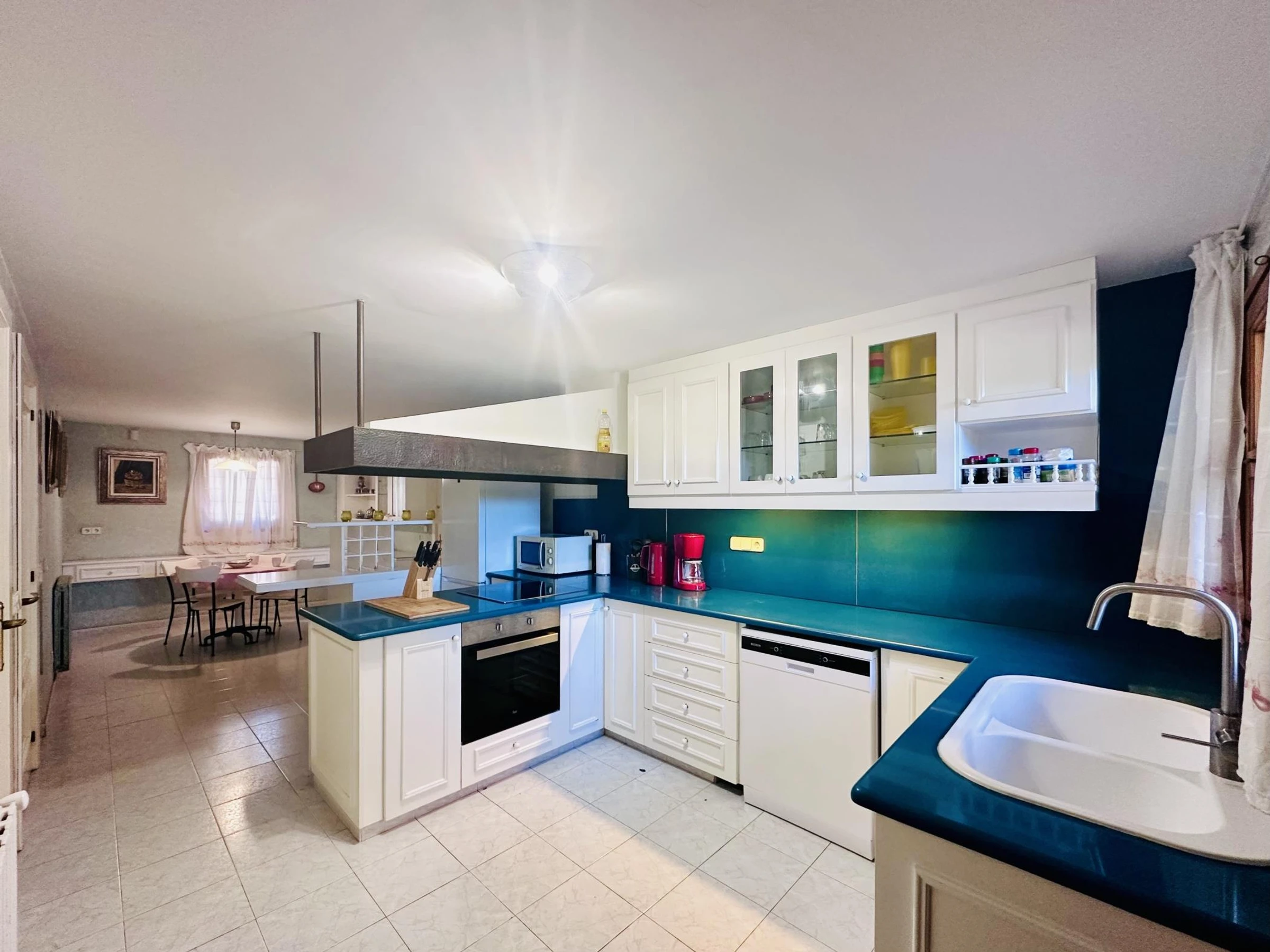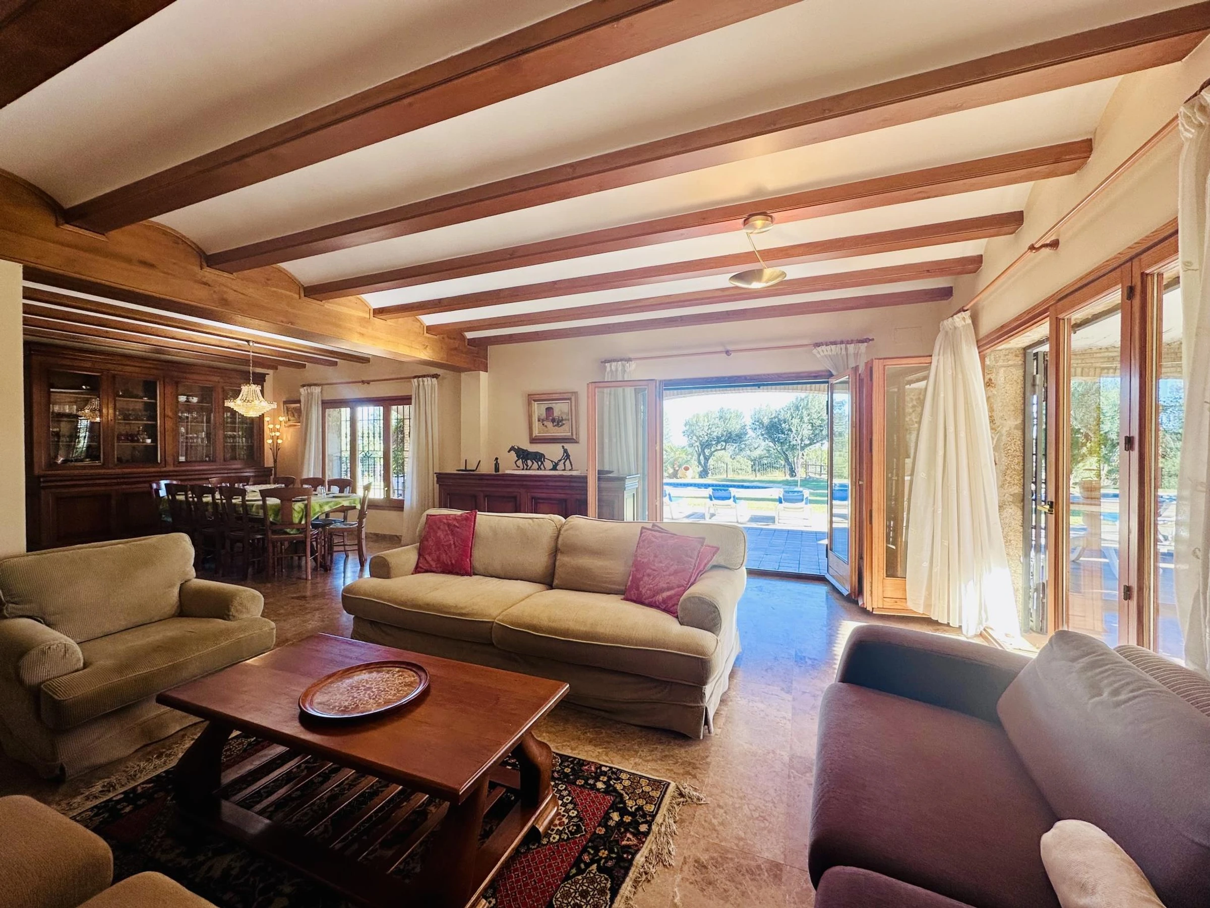 En el interior encontramos un gran comedor sala de estar junto a una espaciosa cocina, bien comunicado con los exteriores.