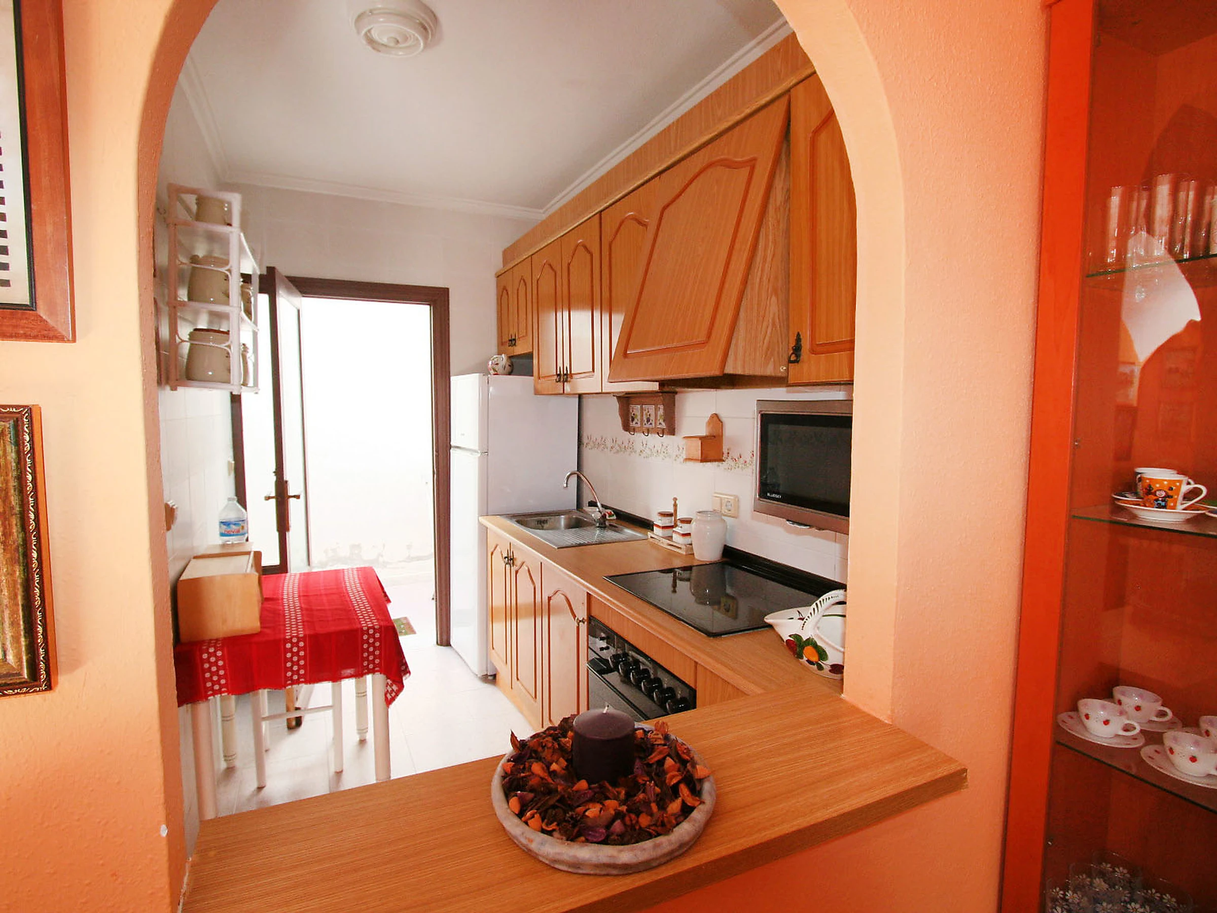 "BRISAMAR II", vivienda adosada 4 habitaciones en 2 plantas. Luminoso, con mobiliario confortable y agradable: salón-comedor con mesa de comedor y TV digital. Salida a la terraza. 1 dorm. con 1 cama (90 cm). Cocina abierta (horno, 1 placas de vitrocerámica, microondas, congelador). Ducha/WC. Planta superior: 1 dorm. con 1 cama de matrimonio. 1 dorm. con 1 x 2 literas (90 cm). Baño/bidet/WC. Terraza grande. Muebles de terraza. Sin vista. El alojamiento dispone de: lavadora, cuna hasta 2 años (extra). Plaza de aparcamiento. A tener en cuenta: adecuado para familias. TV solamente ES. [hidden]