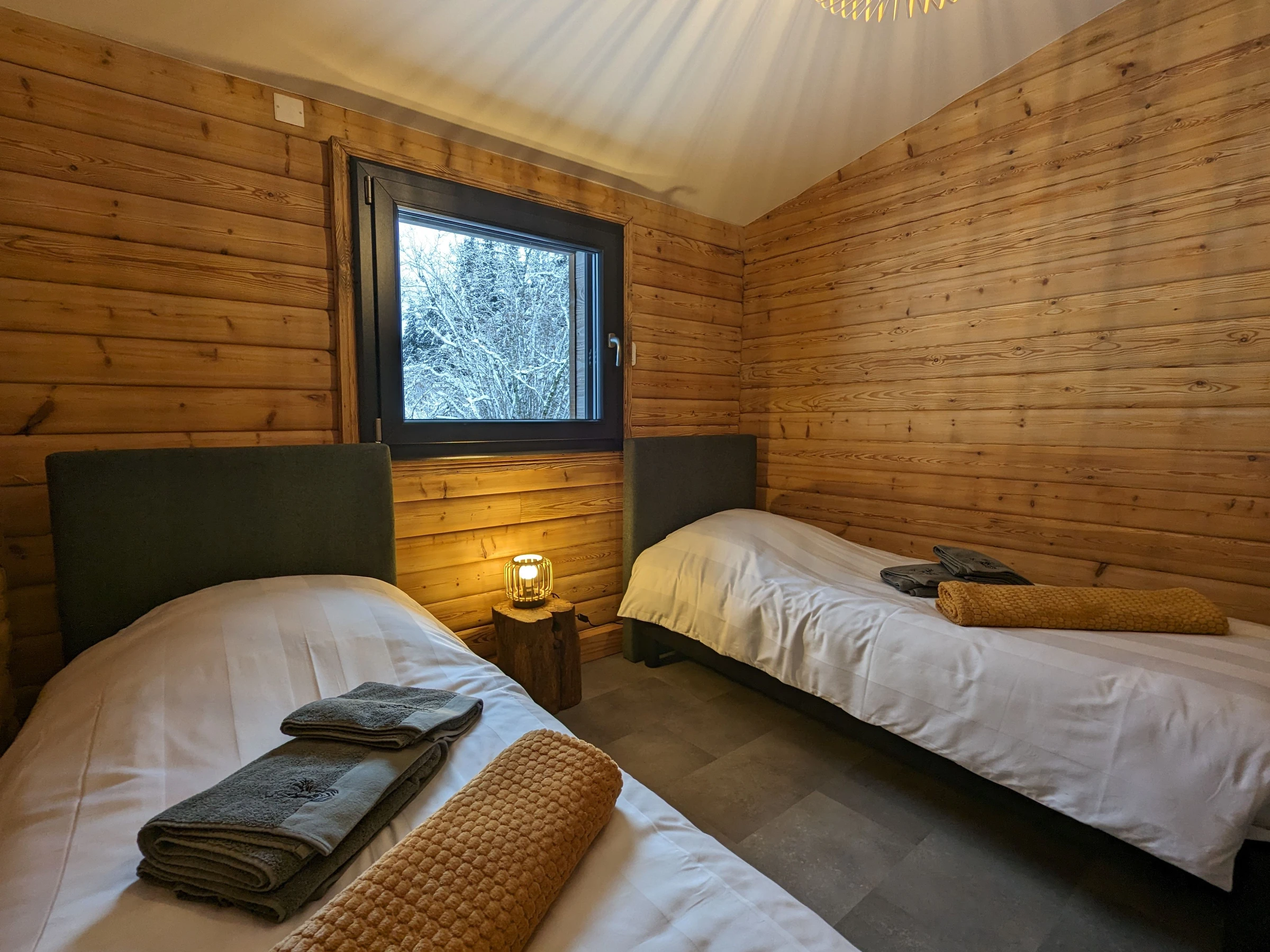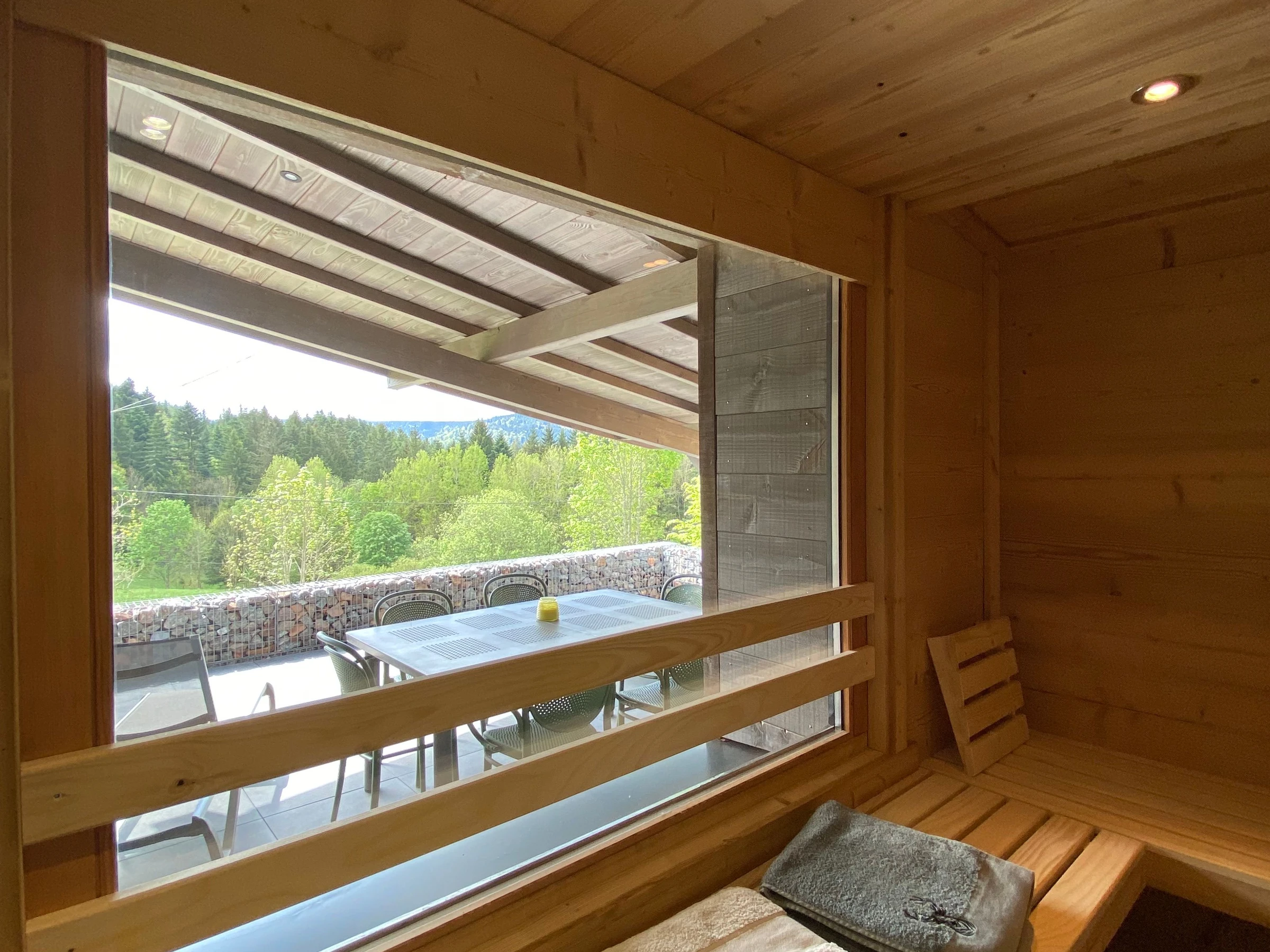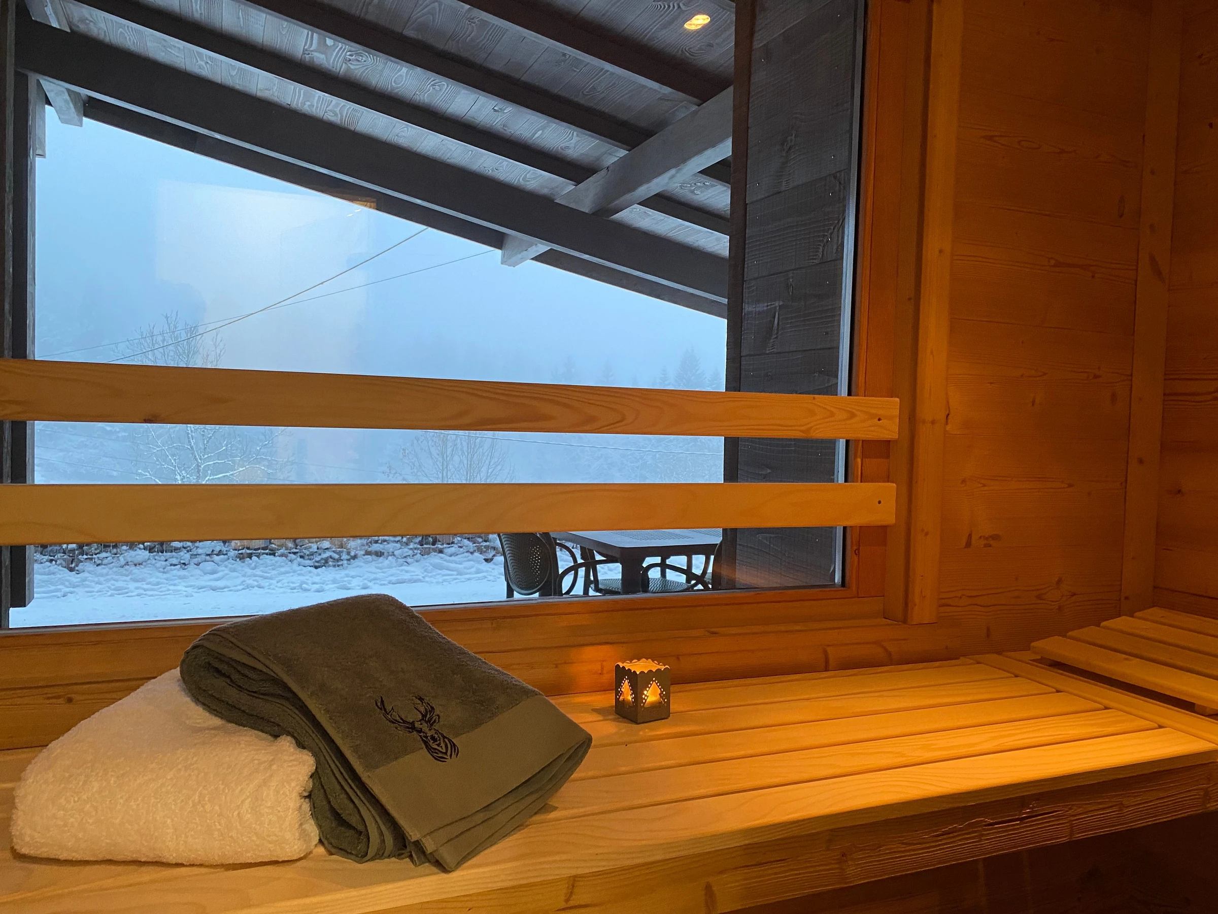 - Una sauna para 4 personas con vistas al bosque.