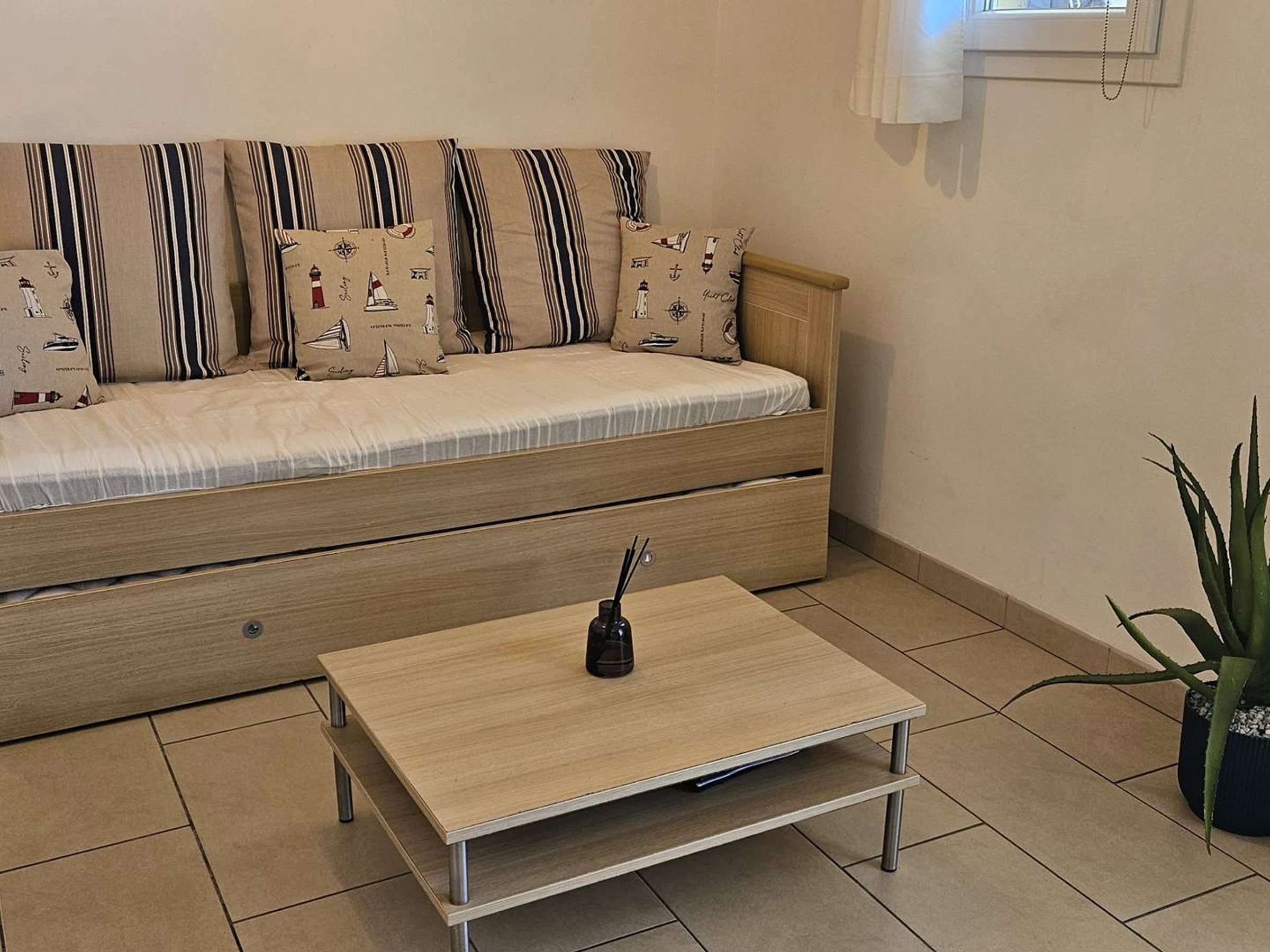 Sala de estar con cocina totalmente equipada (lavadora, frigorífico-congelador, horno y microondas combinados, placa de inducción, campana extractora, cafetera Senseo, tostadora, hervidor de agua), comedor para 4 personas, zona de noche (cerrada) con sofá extraíble con 2 camas individuales (2x80) convertibles en cama doble (160), TV conectada, wifi.