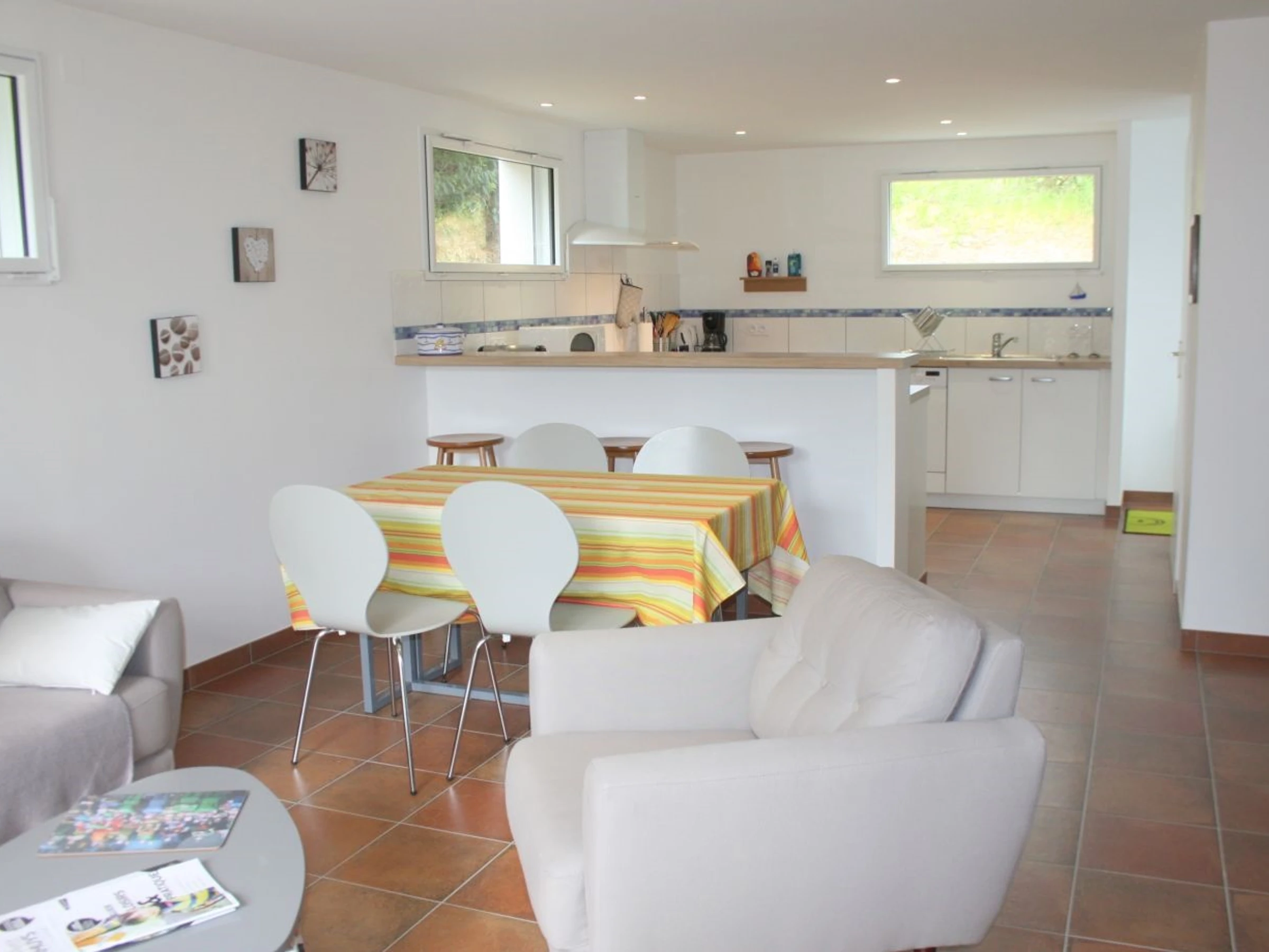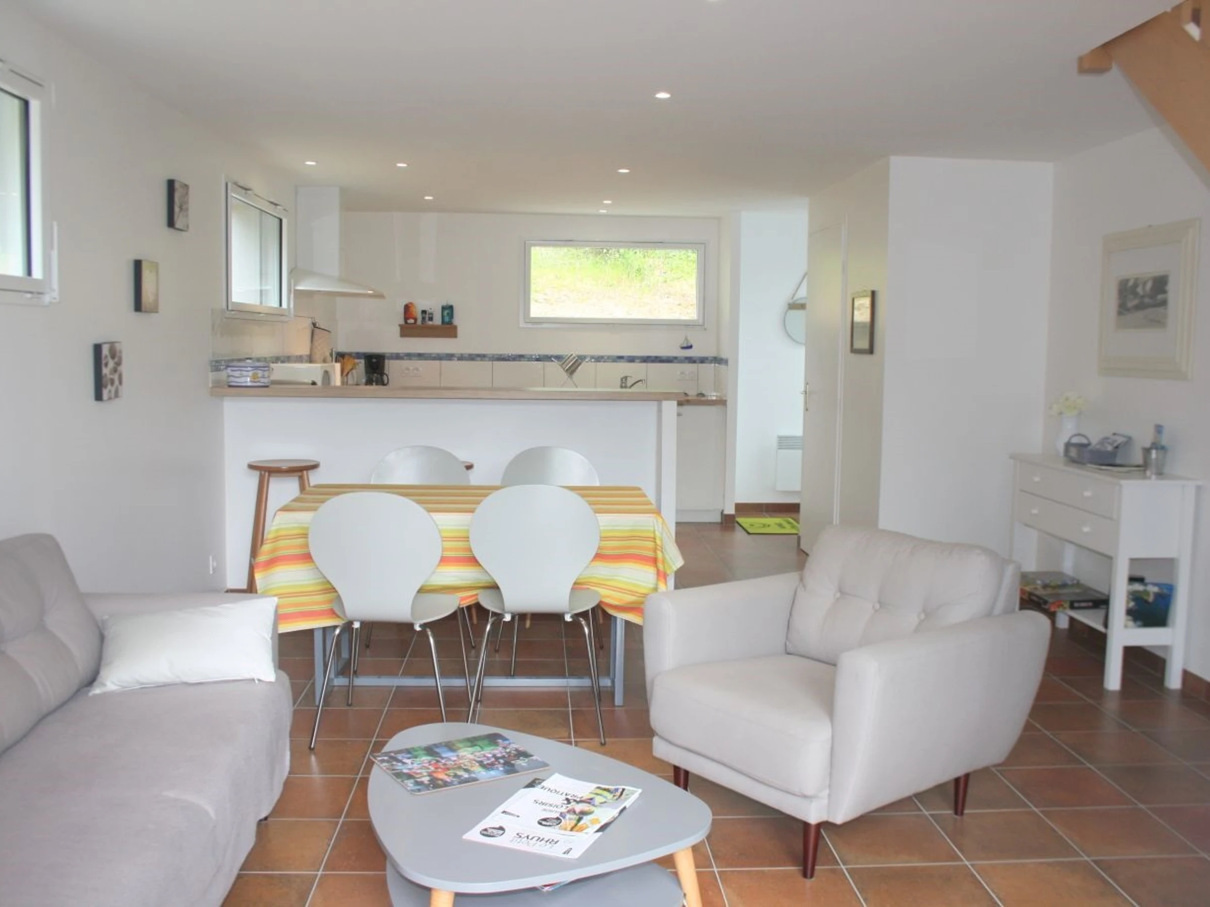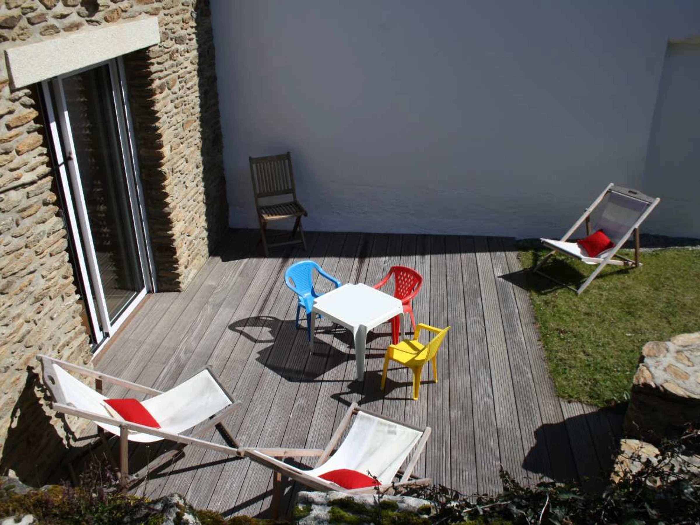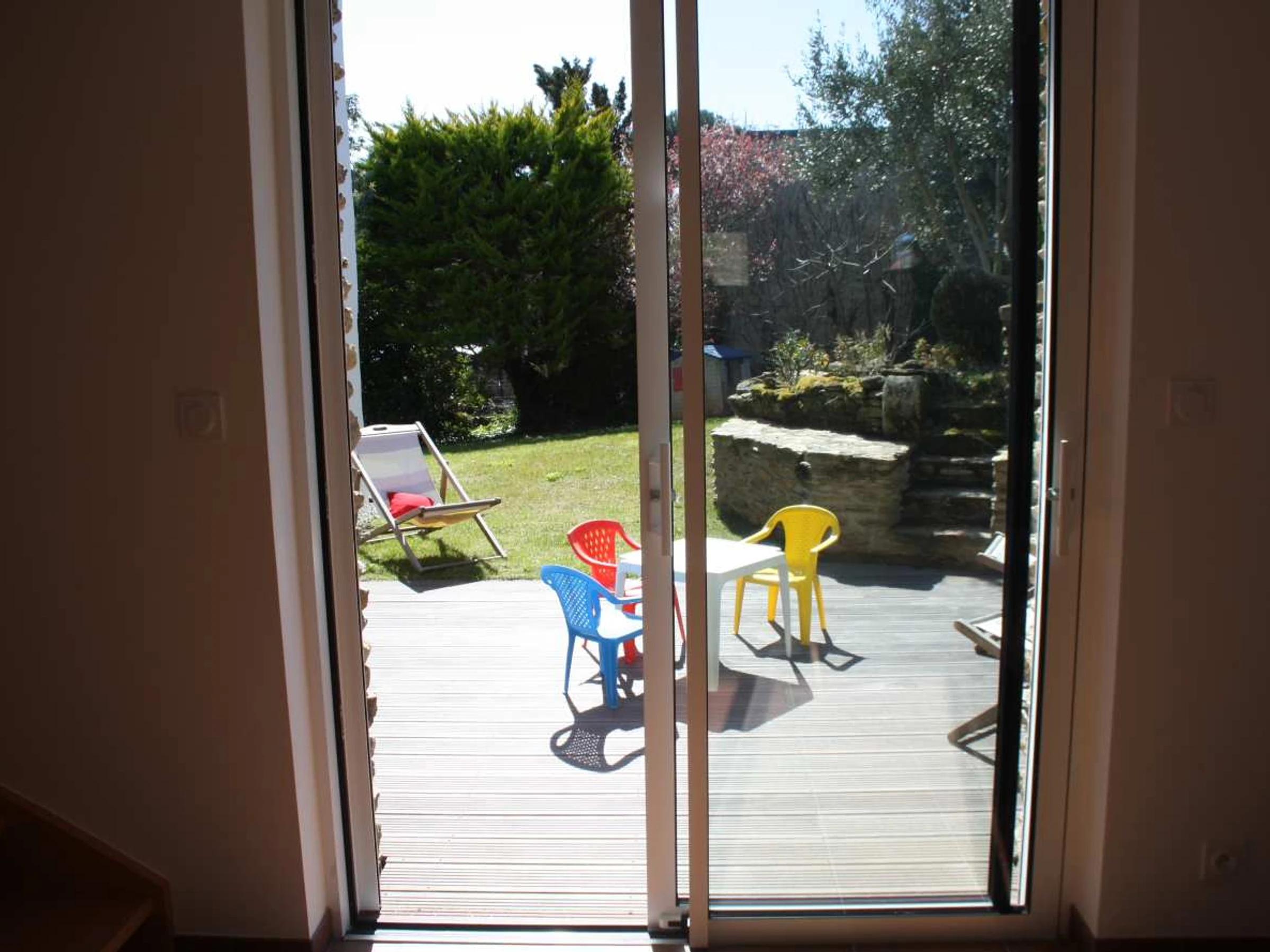 A poca distancia de la playa de Kérignard, esta encantadora casa de piedra de nueva construcción, adosada por un lado, se encuentra en una zona tranquila. La planta baja consta de: una entrada que da acceso a la cocina (nevera pequeña, horno, lavavajillas, microondas, placa de inducción de 3 fuegos, cafetera de filtro), una encimera/bar con taburetes y un salón-comedor diáfano con TV. Un gran ventanal da a la terraza privada y al jardín (no vallado). Hay un aseo independiente con lavabo. Un lavadero con lavadora (compartido con la casa vecina) y un segundo frigorífico con congelador están disponibles para uso exclusivo del inquilino.