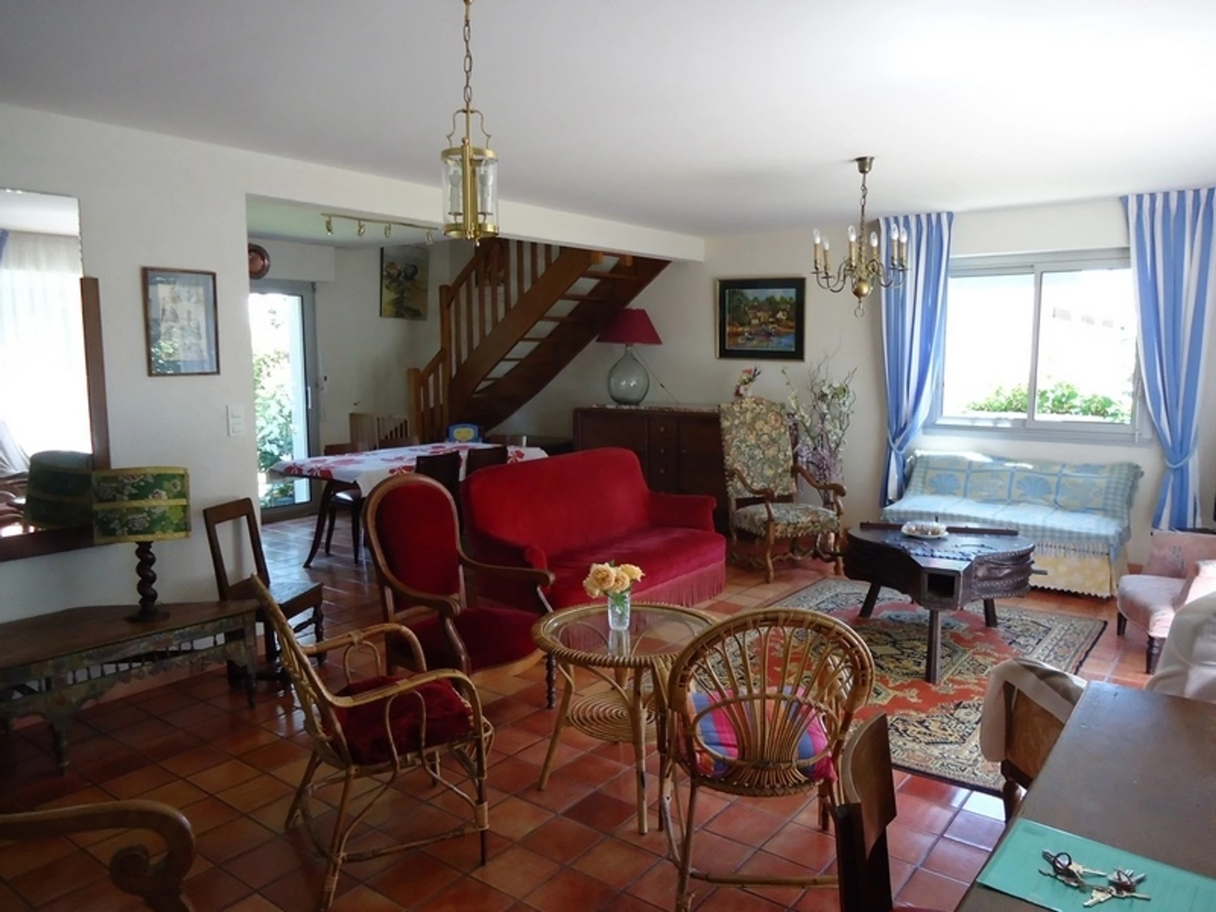 En una tranquila calle sin salida con acceso a la playa, agradable casa en una parcela cerrada de 700 m². En la planta baja se distribuye en amplio salón-comedor, cocina abierta, dos dormitorios y un baño. En la planta superior encontrará tres dormitorios más, todos ellos equipados con dos camas individuales. La casa también dispone de un garaje contiguo (ducha y lavadora). Siéntese en el jardín con su familia o amigos para compartir una comida a la sombra de la pérgola, una partida de bádminton o un momento de relajación. Podrá disfrutar fácilmente de los servicios y actividades de ocio que ofrecen el puerto deportivo y los comercios del barrio de Saint-Jacques, a los que se puede acceder a pie (1200 m).