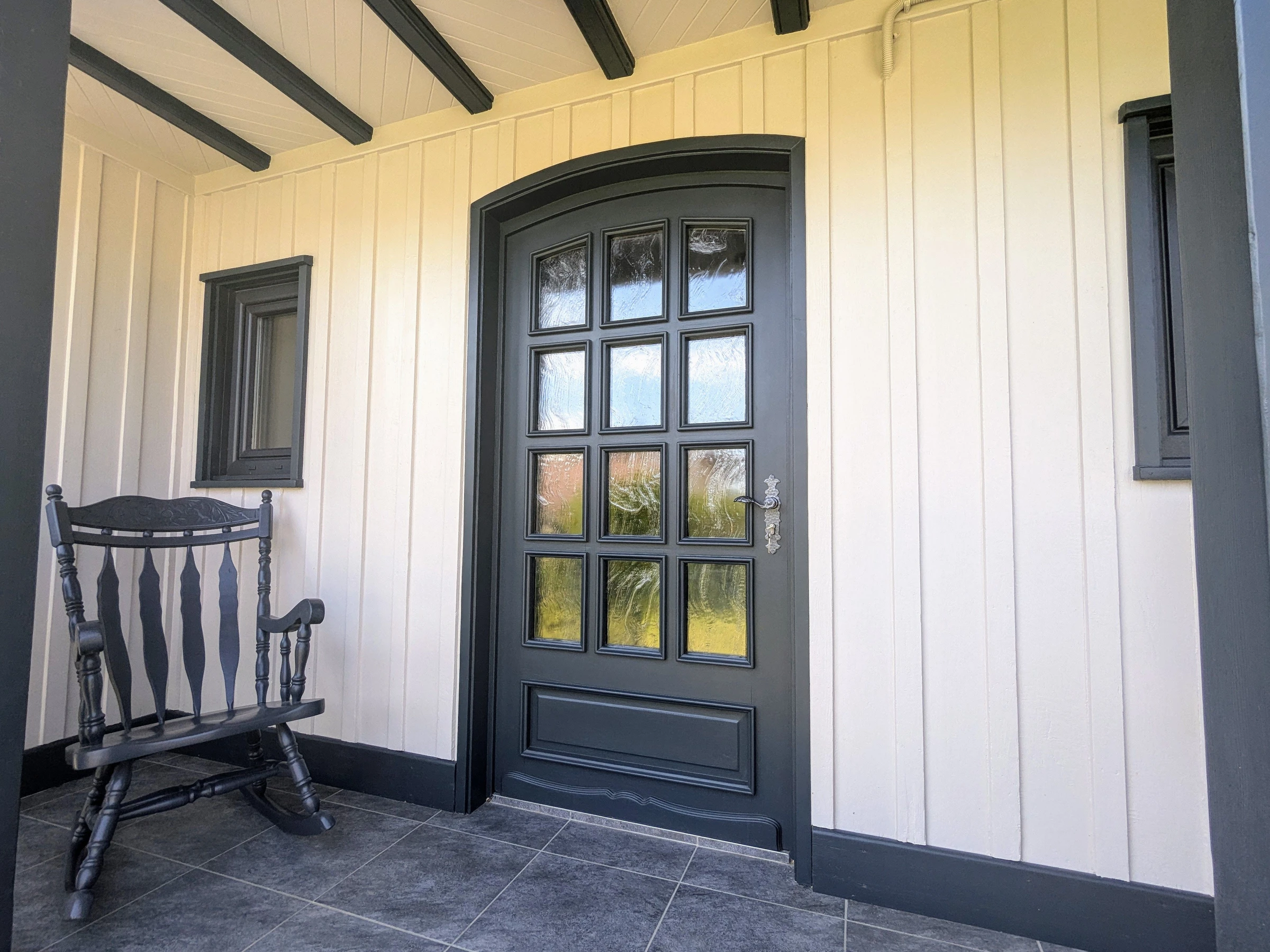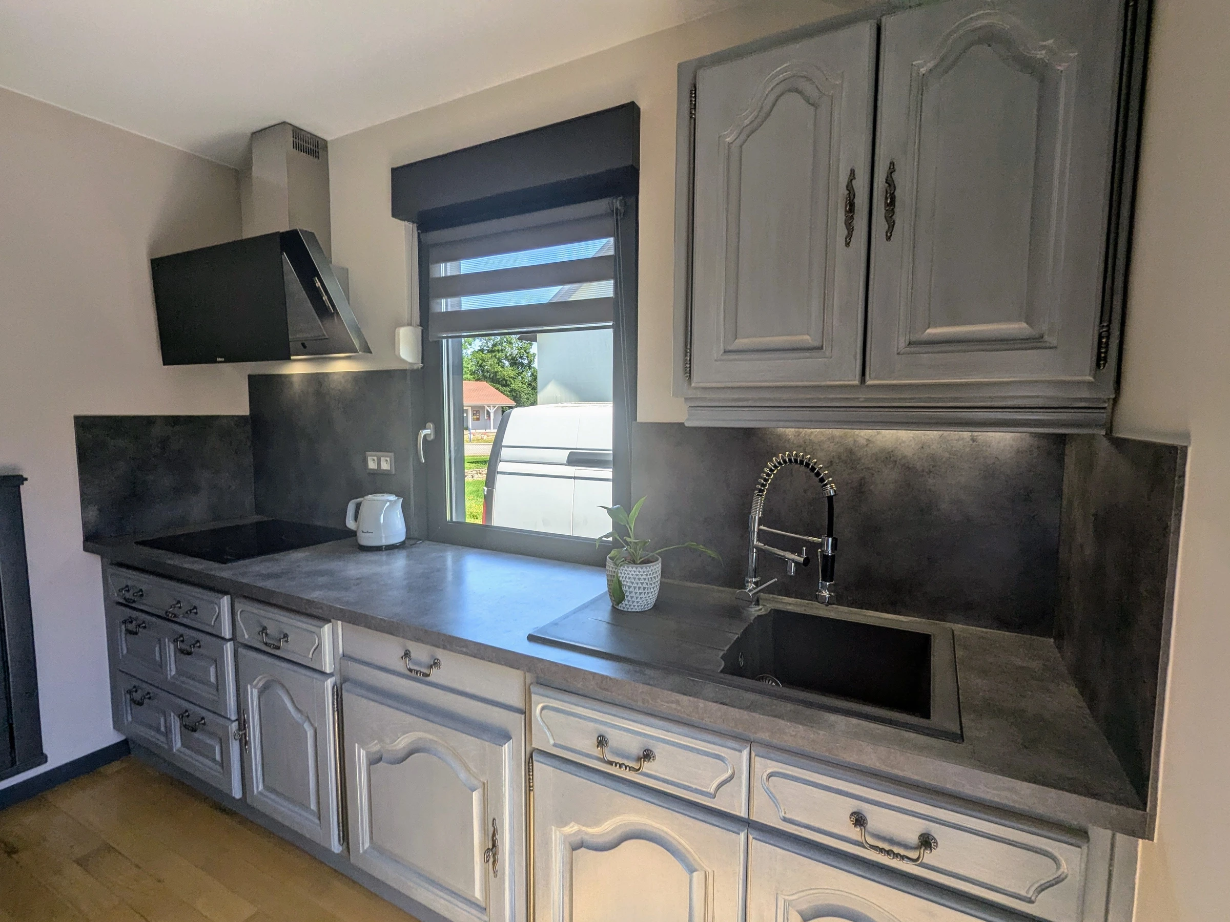 Esta casa rural cuenta con una amplia sala de estar de concepto abierto, que incluye una cocina equipada con electrodomésticos modernos, una cómoda zona de estar y un comedor ideal para compartir momentos de calidad. Las ventanas en las cuatro esquinas de la sala de estar dejan entrar la luz natural y ofrecen una relajante vista al jardín. La casa también incluye cuatro cómodas habitaciones y dos modernos baños con duchas a ras de suelo.