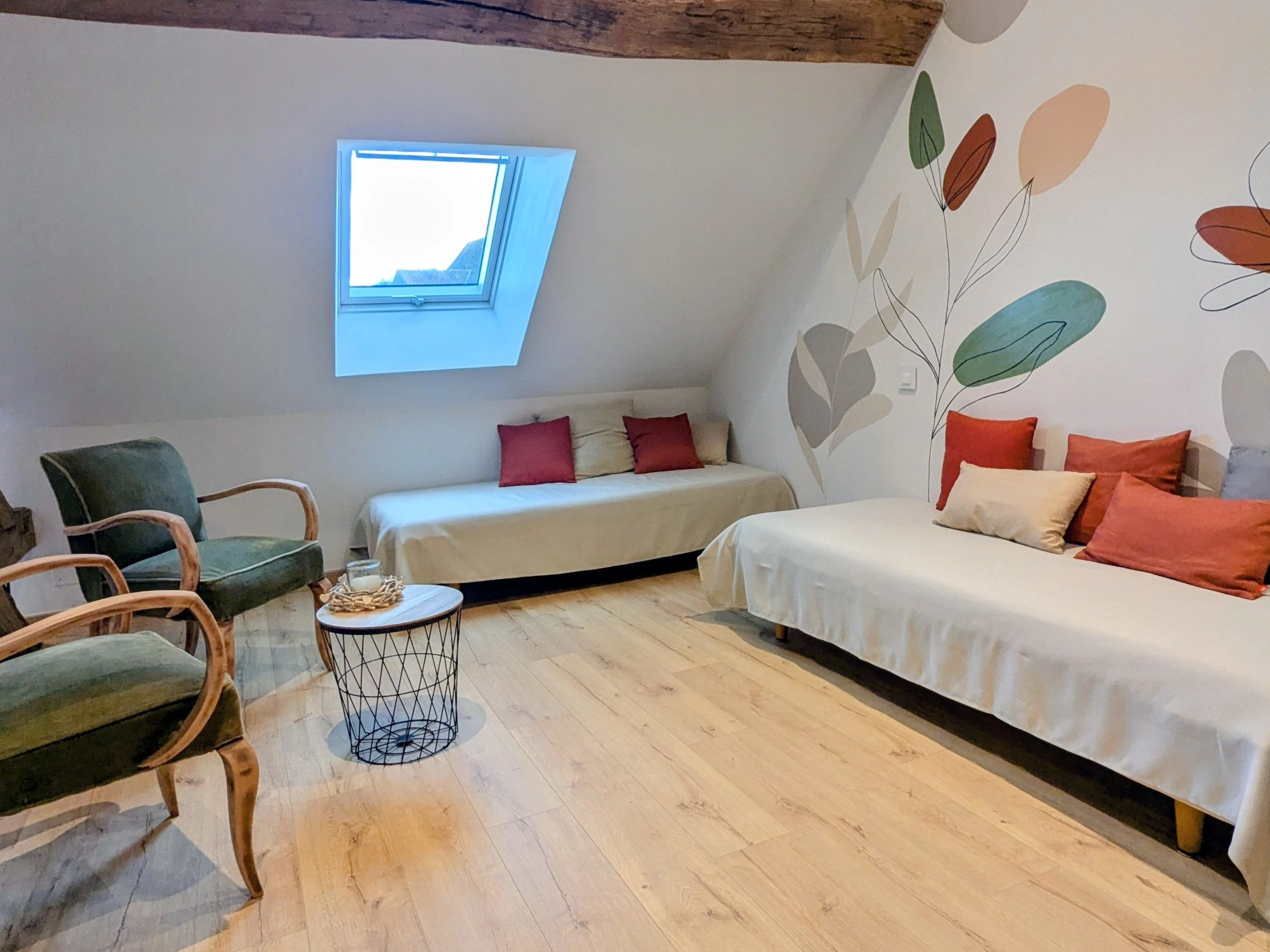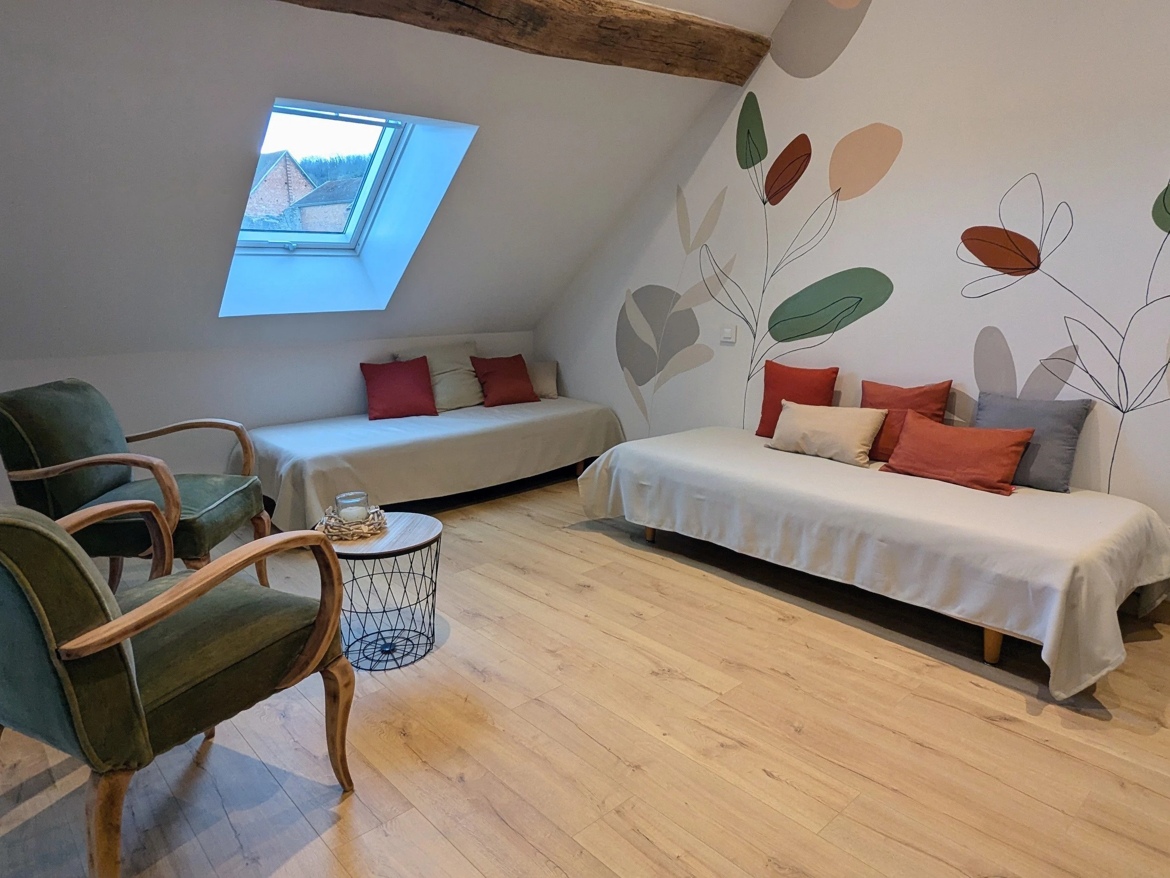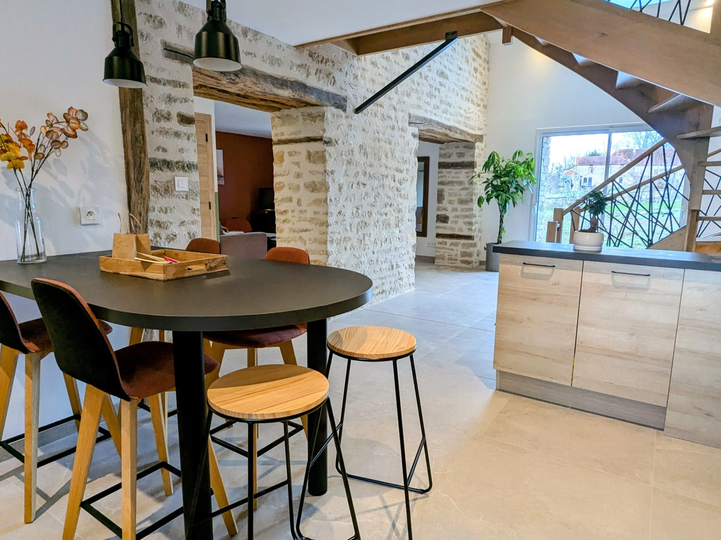 A diez minutos de la ciudad medieval de Semur-en-Auxois, en un tranquilo pueblecito de la región de Auxois, la casa rural "Chez le Paul Jacques", una casa adosada contigua a la casa familiar, ha sido completamente renovada y decorada con buen gusto. En la planta baja (acceso por escalera): recibidor, baño con ducha, aseo independiente, cocina totalmente equipada con acceso a un salón-comedor con acceso directo a la terraza. Wi-Fi.
