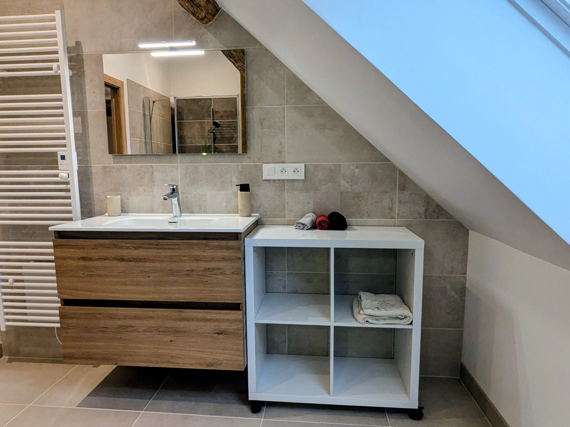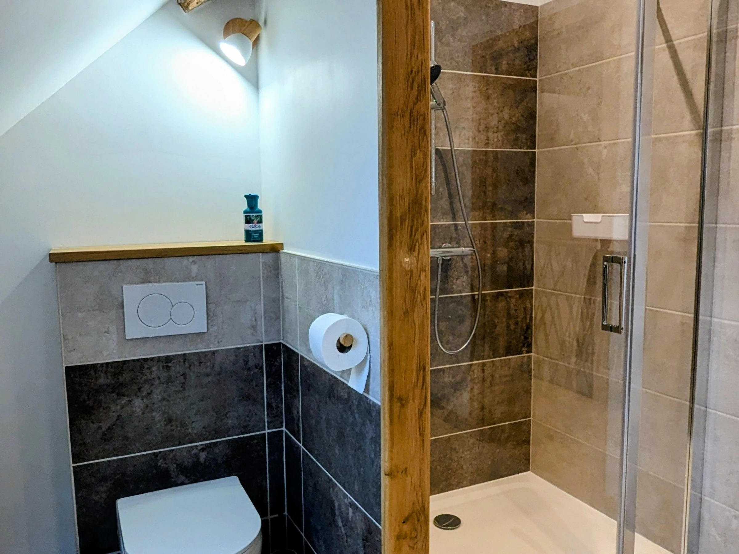 En la planta superior: un altillo con dos camas individuales (90 cm), un dormitorio con una cama doble (140 cm) y dos dormitorios con una cama de matrimonio (160 cm cada uno), un baño con ducha y aseo. Aire acondicionado reversible en la planta superior. Equipamiento para bebés disponible: cuna de viaje, trona, orinal y cambiador.