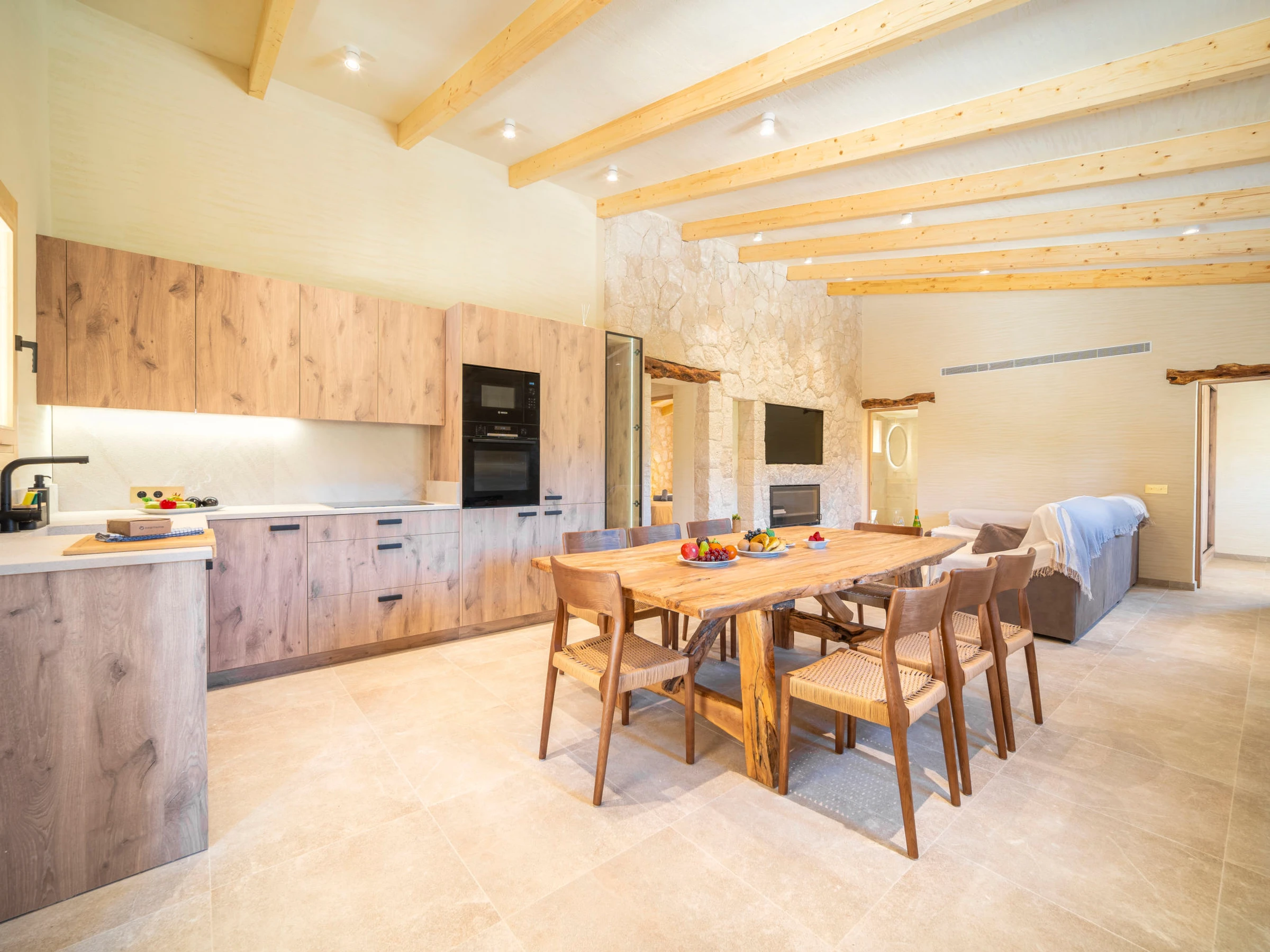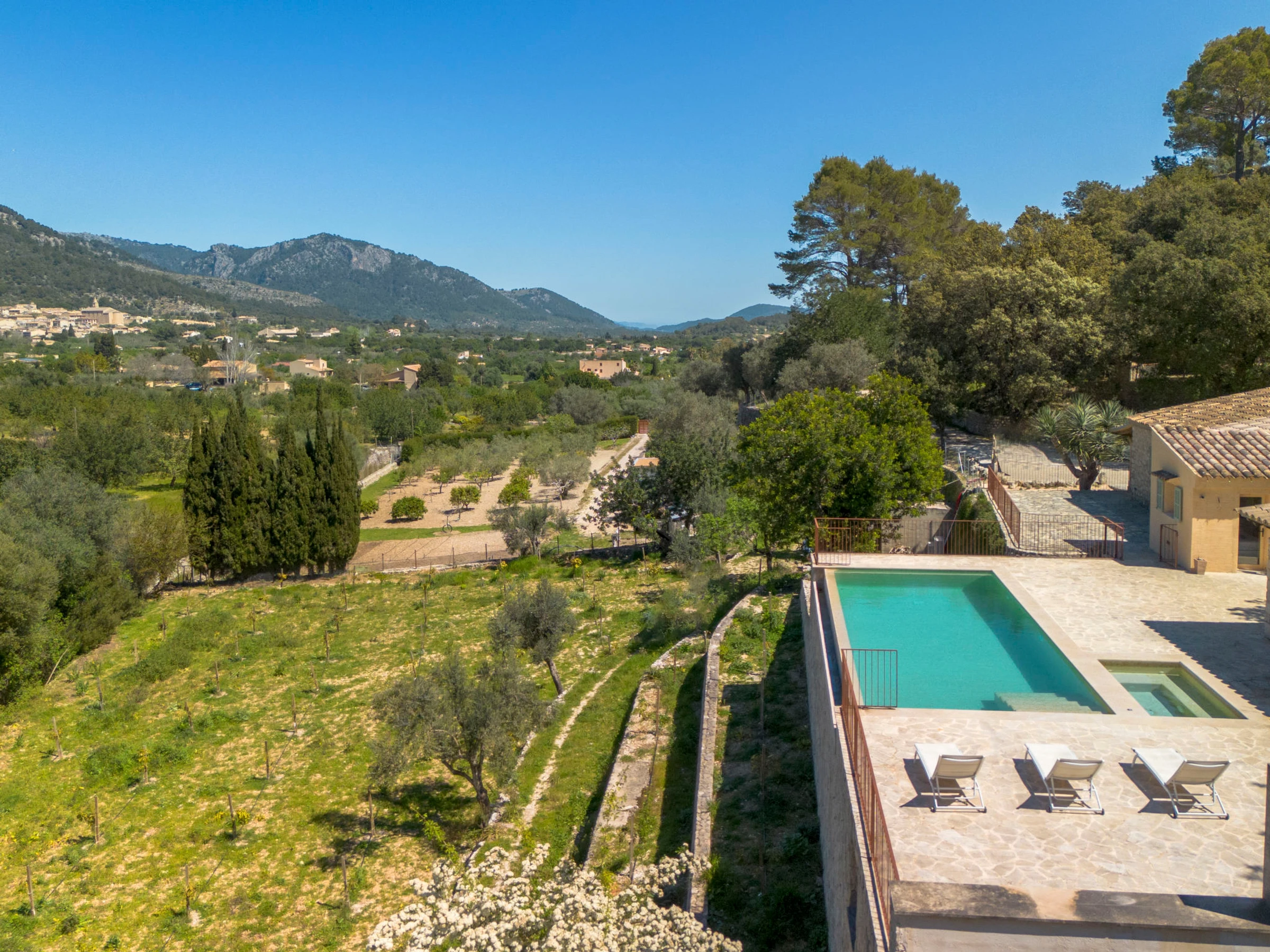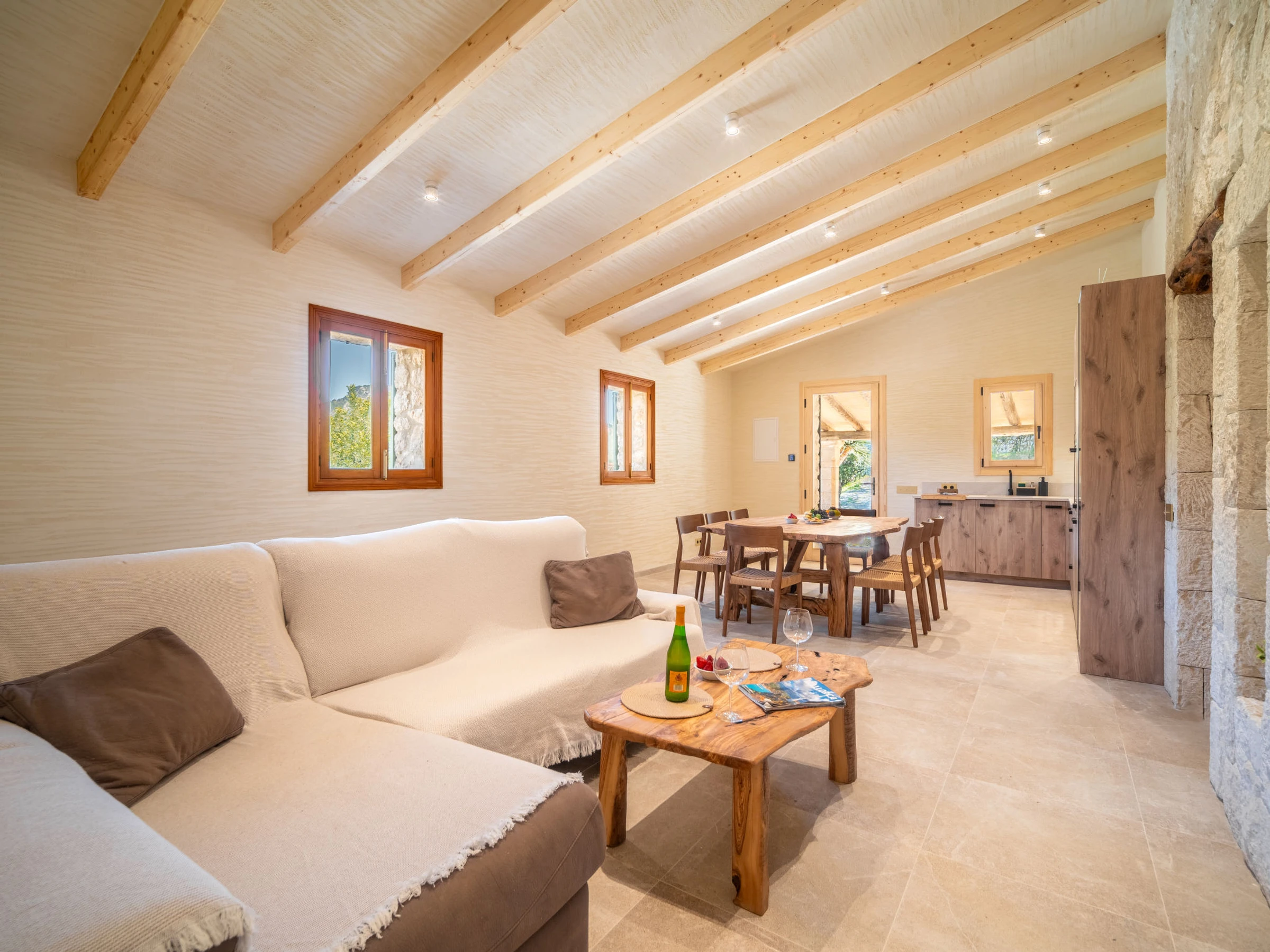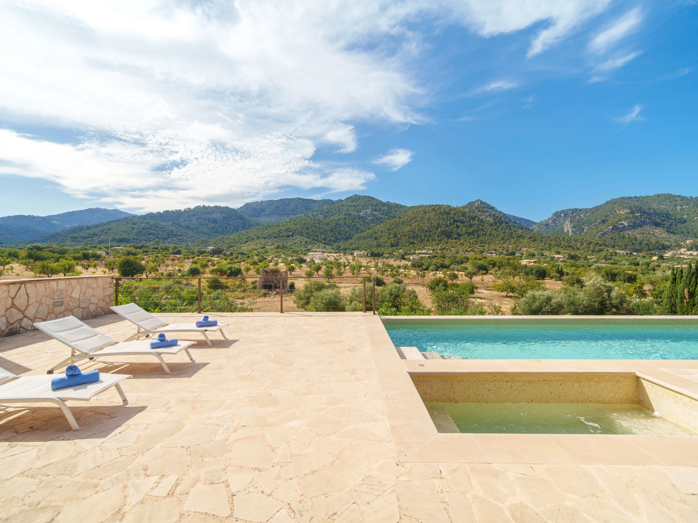 "Can Garcia", villa 4 estancias 100 m2, en planta baja. Vivienda adecuada para 4 adultos. Luminoso, completamente reformada, con mobiliario confortable y moderno: salón-comedor grande con mesa de comedor, TV, pantalla plana y aire acondicionado. Salida a la terraza-jardín. 1 dorm. doble con 1 cama de matrimonio (150 cm, 190 cm de longitud), ducha/WC y aire acondicionado. Salida a la terraza-jardín. 1 dorm. doble con 2 camas (90 cm, 190 cm de longitud), aire acondicionado. 1 dorm. doble con 1 cama de matrimonio (150 cm, 190 cm de longitud), aire acondicionado. Cocina abierta (horno, lavavajillas, 4 Placas de inducción, tostadora, hervidor de agua eléctrico, microondas, congelador, cafetera eléctrica) con mesa de comedor, chimenea (sólo con función decorativa), aire acondicionado. Salida a la terraza, a la piscina. 2 ducha/WC. Calefacción por suelo. Suelo de piedra natural. Mobiliario confortable de estilo rural. Terraza grande. Muebles de terraza, barbacoa, tumbonas, porche. Vista panorámica a las montañas, al paisaje y al pueblo. El alojamiento dispone de: lavadora. Internet (Wifi, gratis). Junto a la casa. A tener en cuenta: adecuado para familias. Casa para no fumadores. La piscina descrita es de uso privado. [hidden] // Reg. Nr.: ESFCTU0000070220000220140000000000000000000[hidden]9