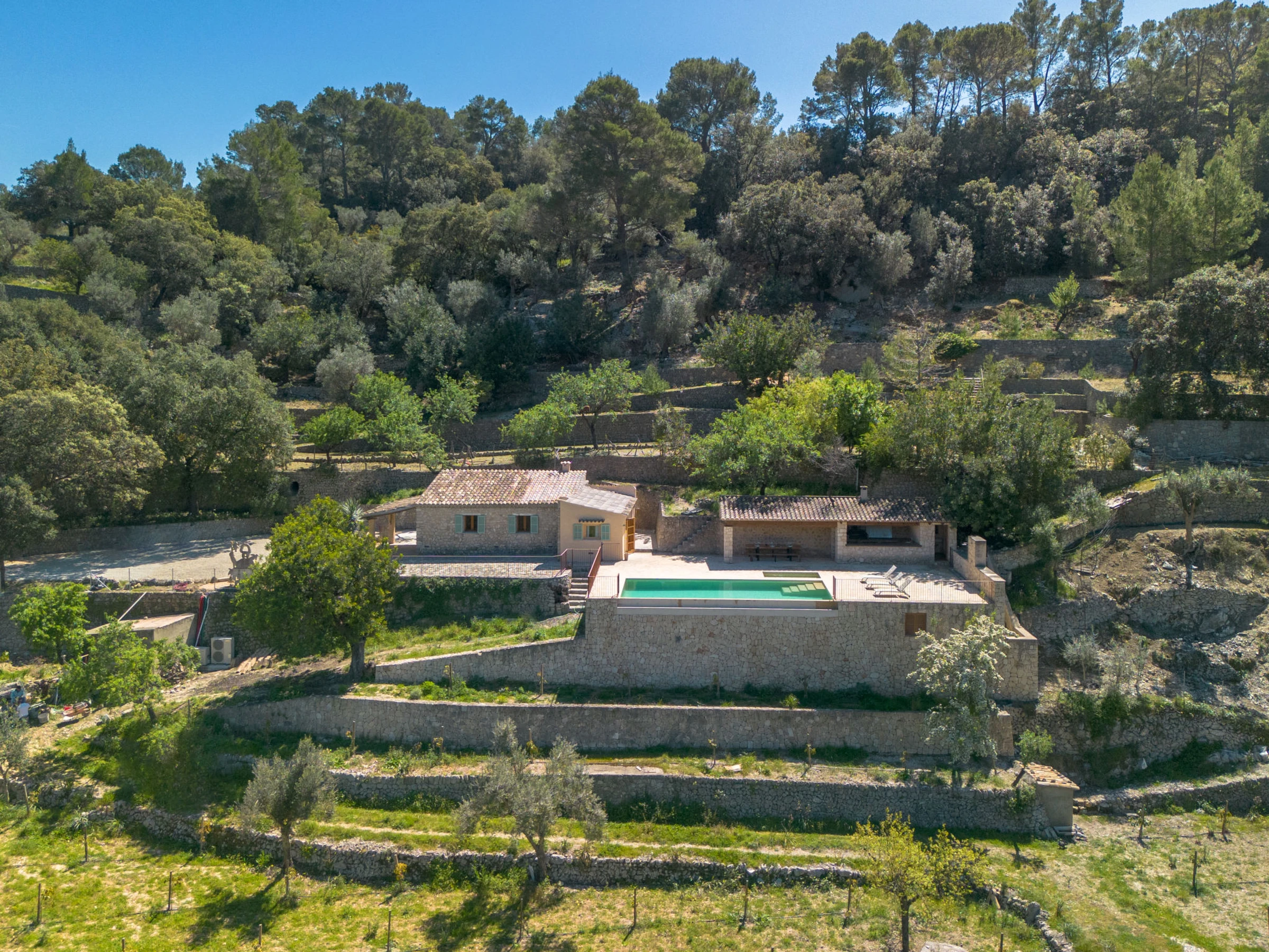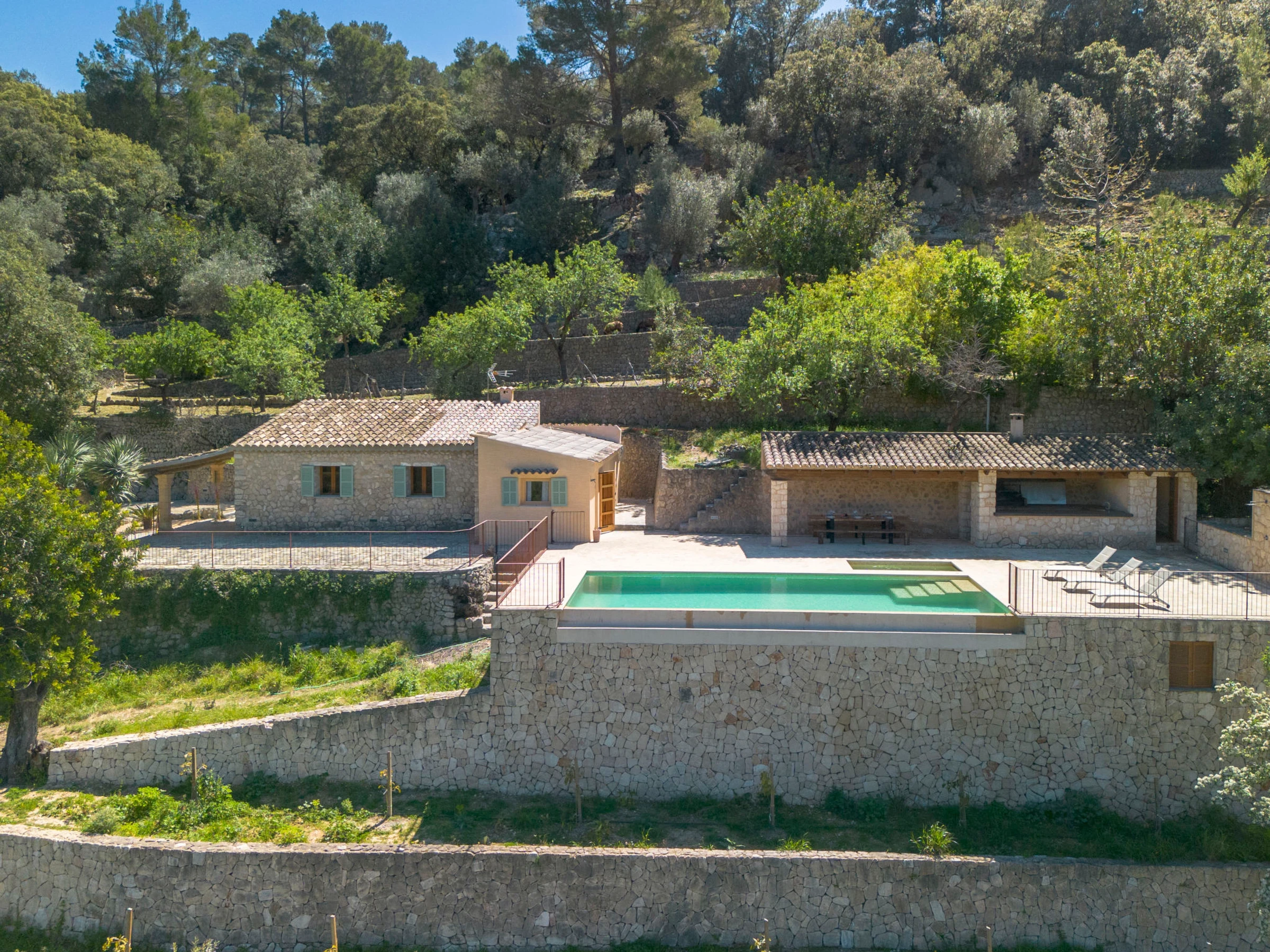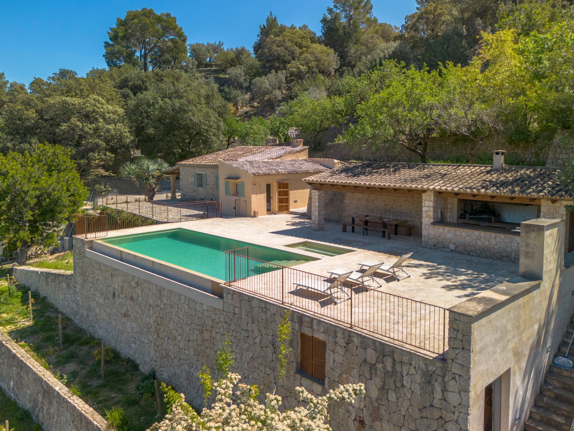 Selva: Finca "Can Garcia", muy bonita, confortable, reformada en 2026, rodeada de árboles, prados y campos. En las afueras de la localidad Selva, lugar tranquilo, soleado en una colina, a 50 m de un bosque, a 25 km del mar, a 25 km de la playa, en un bosque. Privado: terreno en estado natural (vallada) con árboles, pradera, piscina rectangular (10 x 4 m, 150 - 160 cm de profundidad, Disponible por temporada: [hidden] - [hidden] con sistema de limpieza por electrolysis de sal. Ducha exterior, cenador, porche, terraza, muebles de jardín, caseta de barbacoa, mantenimiento de la piscina a través del propietario/jardinero. En el inmueble: acceso a internet, Wifi, calefacción central, aire acondicionado, lavadora. Acceso (camino de tierra). Aparcamiento junto a la casa. Tienda de comestibles, supermercado, restaurante 700 m, bar, panadería, café, bar al aire libre 900 m, a 7 minutos del centro andando, parada autobús 1 km, playa de arena 27 km playa de gravilla 27 km, playa de piedras 27 km, playa rocosa 27 km. Puerto deportivo 27 km, puerto para yates 27 km, campo de golf (18 hoyos) 28 km, escuela de surf 27 m, escuela de vela 33 km, tenis 1 km, centro ecuestre 4 km, polideportivo 1 km, caminos para bicicletas 200 m. A tener en cuenta: coche recomendable. Adecuado para familias, adecuado para la tercera edad. Vivienda adecuada para 4 adultos. El propietario no acepta grupos de adolescentes/jóvenes.