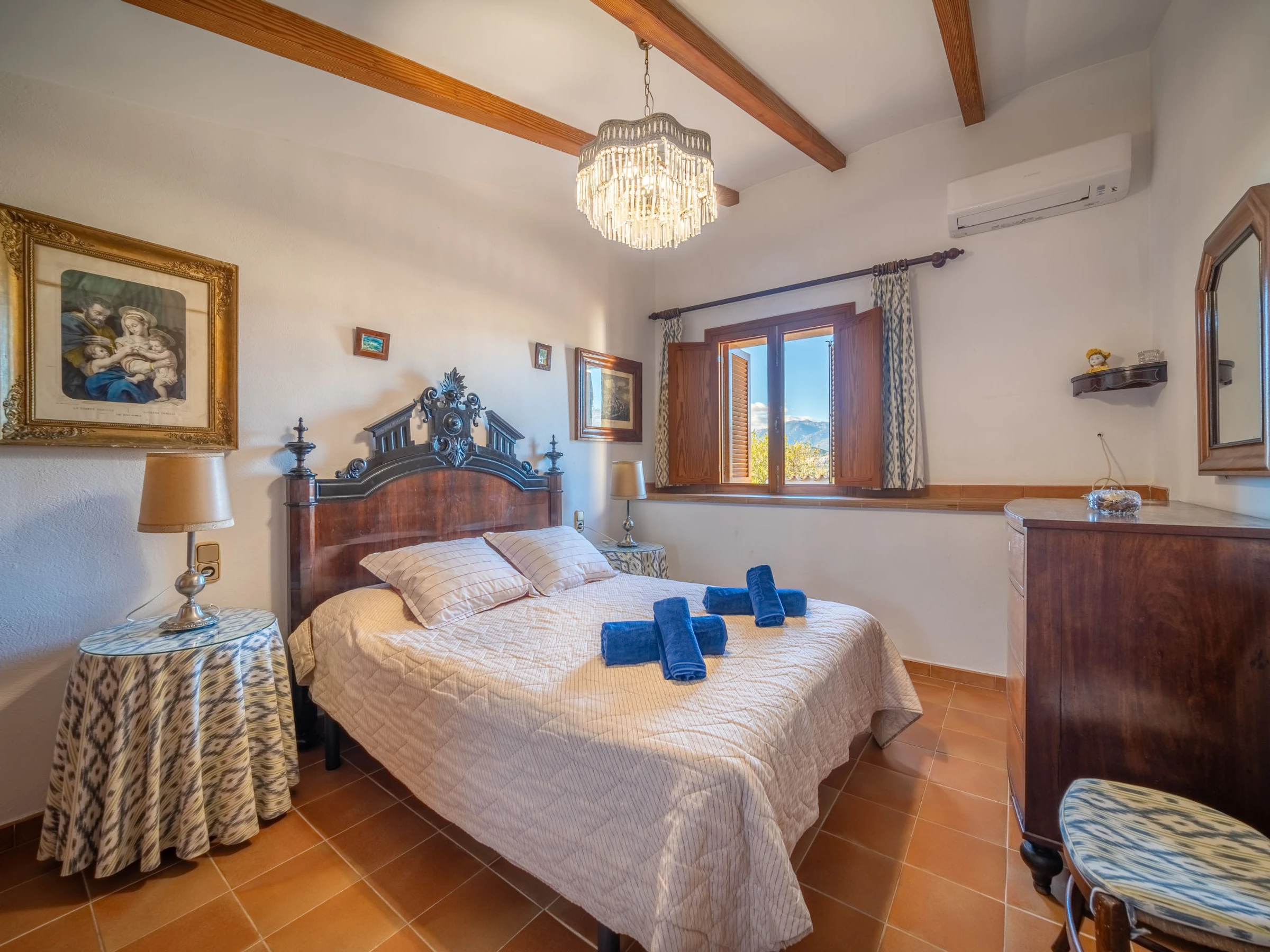 "Son Estaras II", apartamento de 3 estancias 90 m2 en el 1° piso. Vivienda adecuada para 2 adultos. Espacioso y luminoso, completamente reformado, con mobiliario funcional y confortable: salón-comedor grande con ventanal con mesa de comedor, TV digital, aire acondicionado y bomba de calor, caliente. Salida a la terraza. Sala de estar. 1 dorm. doble con 1 cama de matrimonio (150 cm, 190 cm de longitud), aire acondicionado y bomba de calor, caliente. Cocina abierta (3 fogones, horno, tostadora, hervidor de agua eléctrico, microondas, congelador, cafetera eléctrica) con mesa de comedor. Ducha/bidet/WC. 2 terrazas grandes. Muebles de terraza, barbacoa, tumbonas (2). Vista panorámica espléndida a las montañas y al paisaje. El alojamiento dispone de: plancha, trona, cuna hasta 2 años, secador de pelo. Internet (Wifi, gratis). Plaza de aparcamiento junto a la casa. A tener en cuenta: apartamento para no fumadores. Extintores, sin ascensor. [hidden] // Reg. Nr.: ESFCTU00000702200032246600000000000000000000[hidden]6