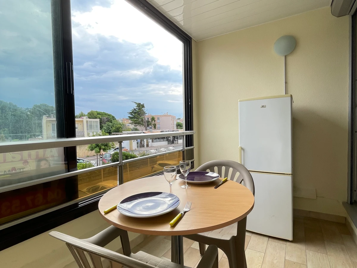 Alquiler de vacaciones en Sète: Se trata de un estudio-cabaña de aproximadamente 18 m2 de superficie habitable con una logia acristalada de 5 m2. Este apartamento tiene vistas al Mont Saint-Clair. Se encuentra en una primera planta con ascensor. Las playas están a 450 m y las tiendas cercanas. Está orientada al este.